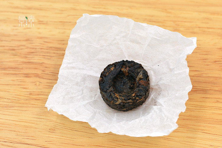 轻轻把纸打开,完整的一粒功夫熟沱就出现了