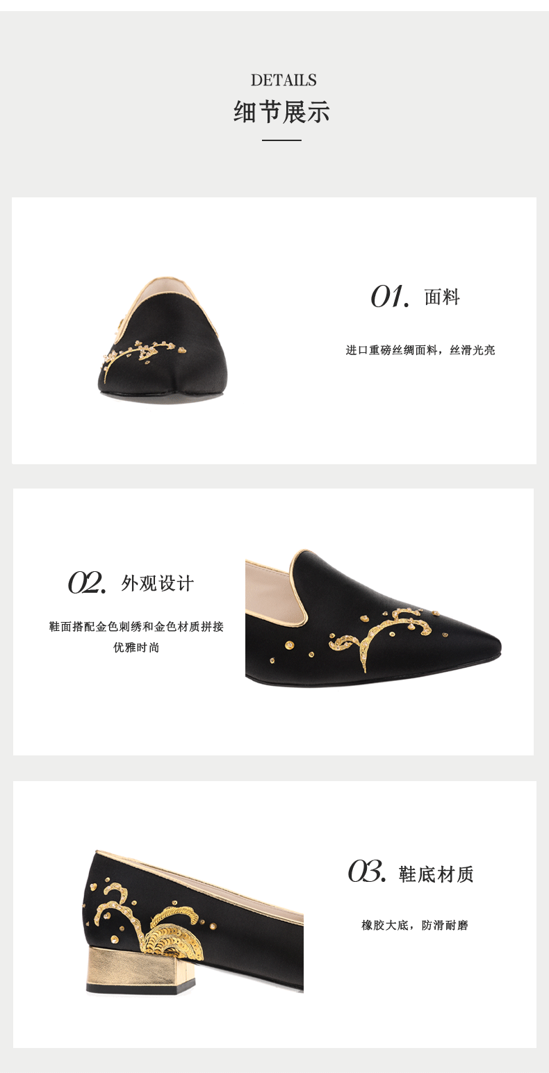 sheme 鹤鸣 丝绸 刺绣 细跟 单鞋