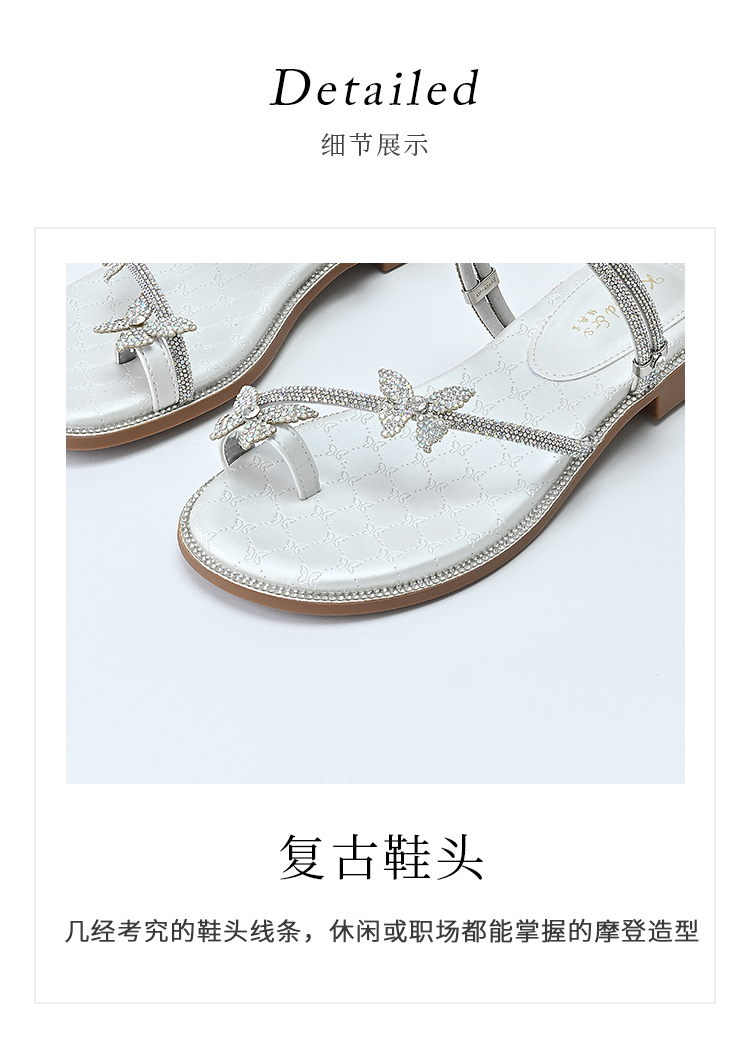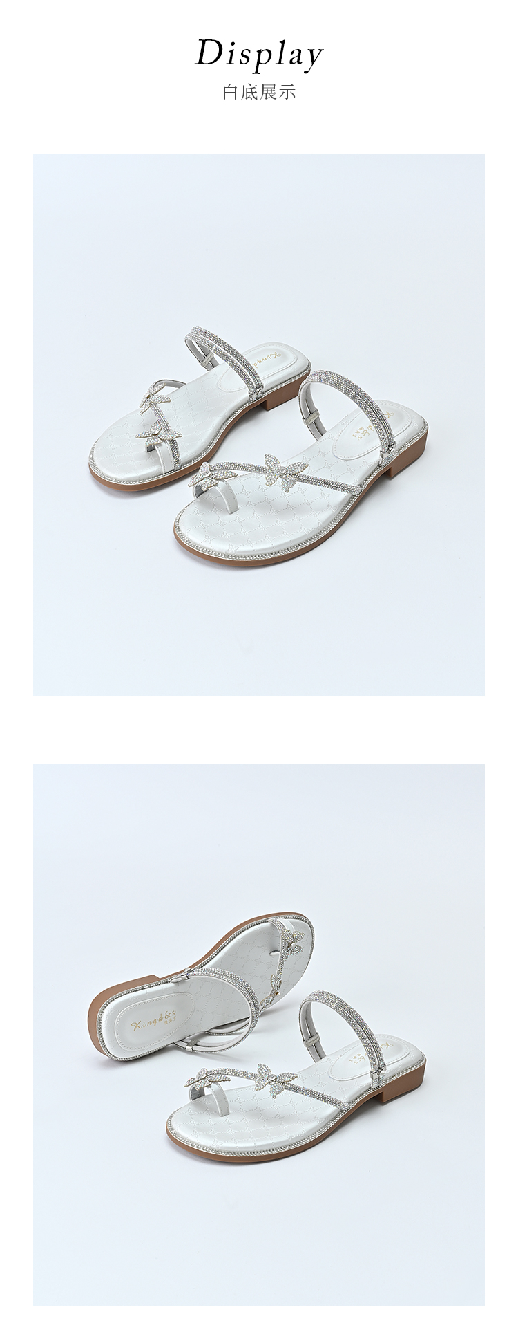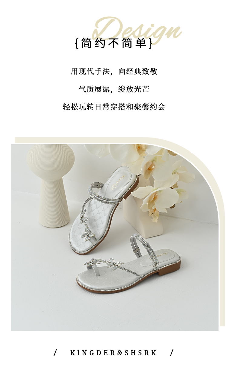 经典鲨2025夏季新品时尚立体蝴蝶结套指气质水钻两穿凉鞋女KW119-529101