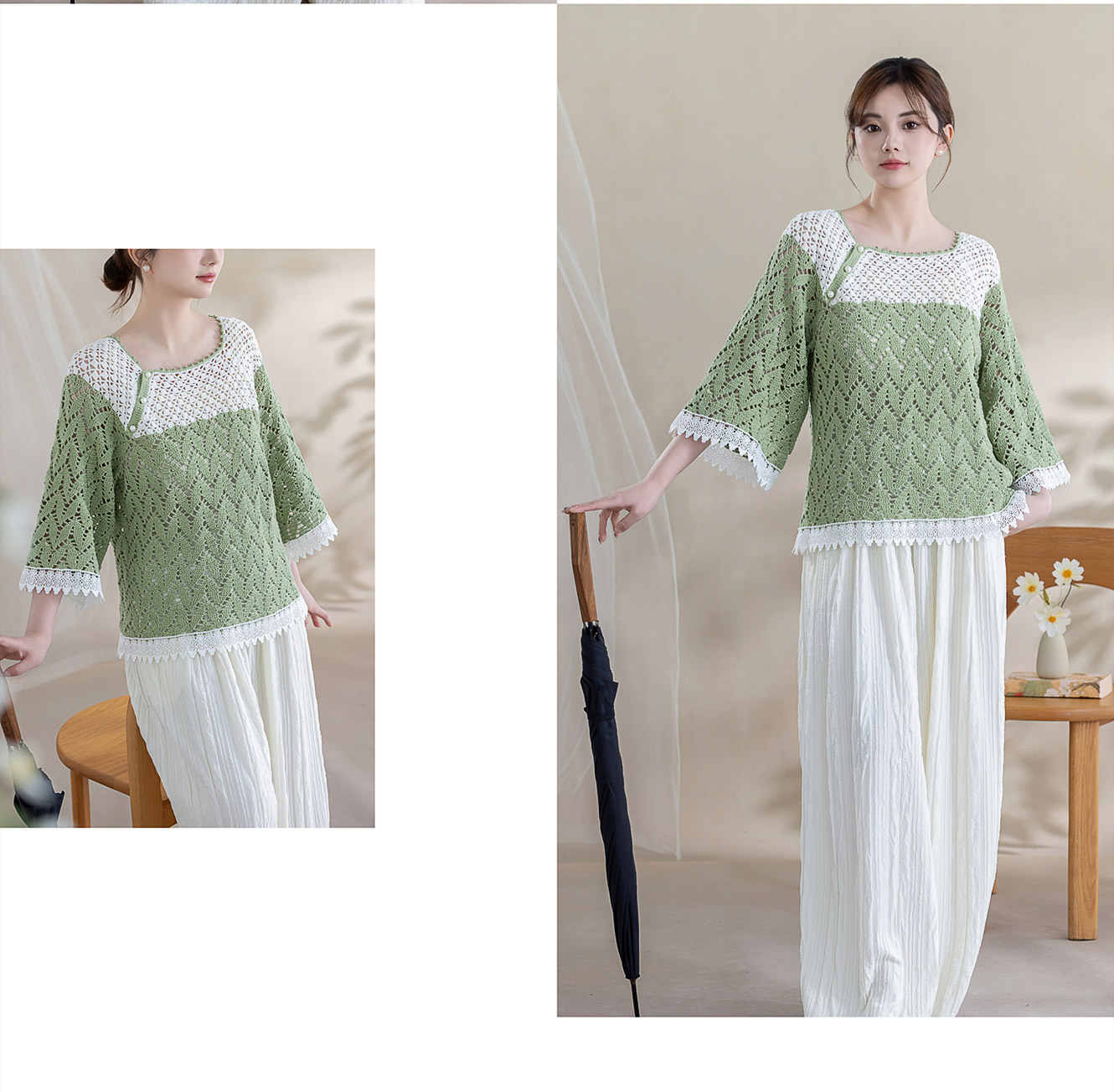 苏苏姐家映柳方领上衣手工DIY编织钩针棉麻毛线团自制材料包