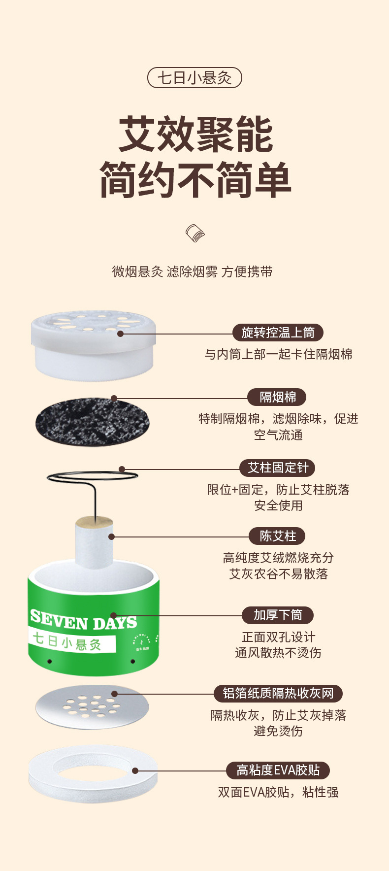 【19.9抢❗七日小悬灸套装】养身黑科技随身灸 ,清淡艾香,微烟一次一抛,可调节温度防烫,小悬炙伏湿罐艾灸随身灸微烟便携艾灸盒QQ