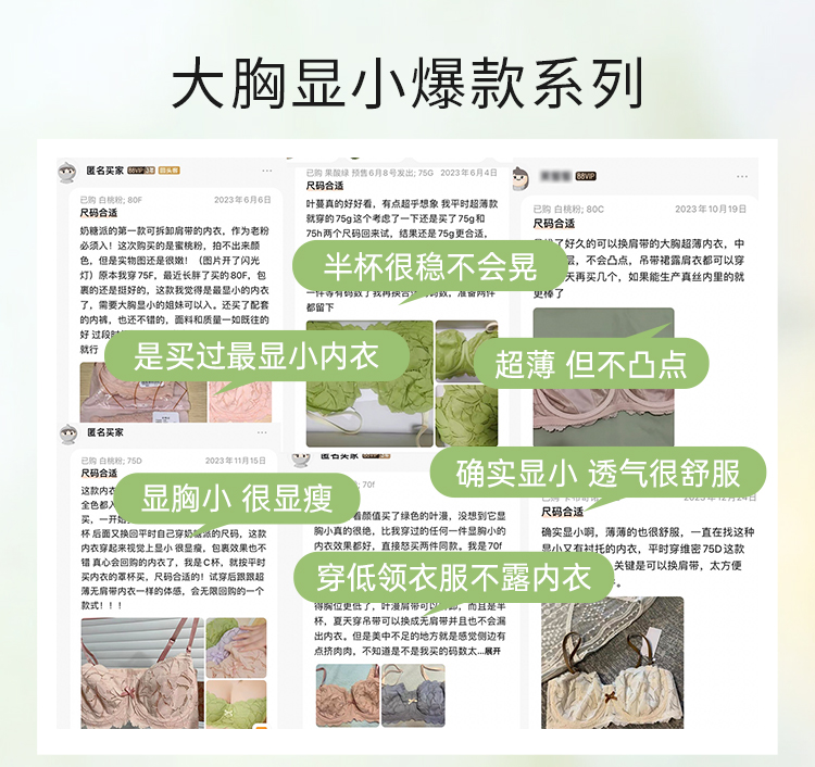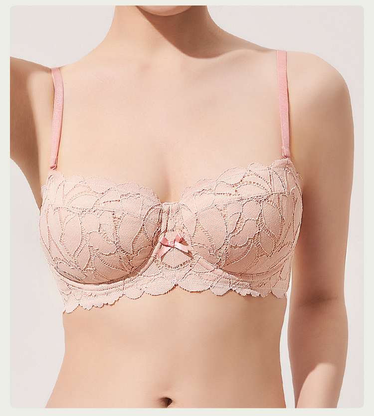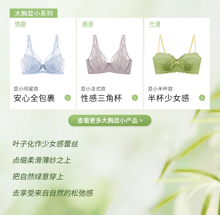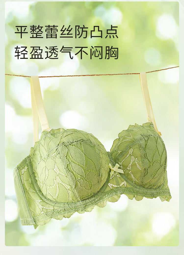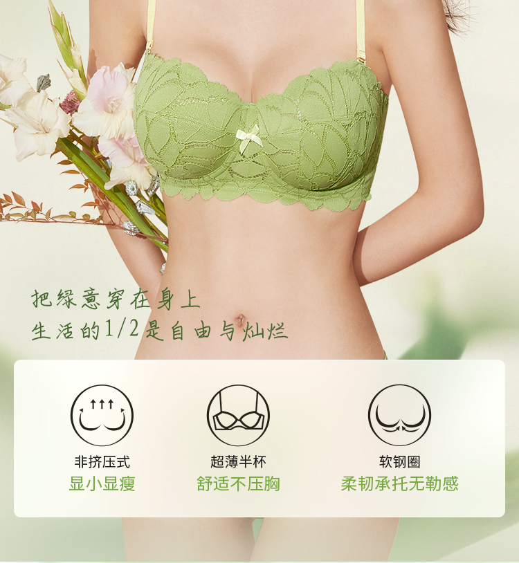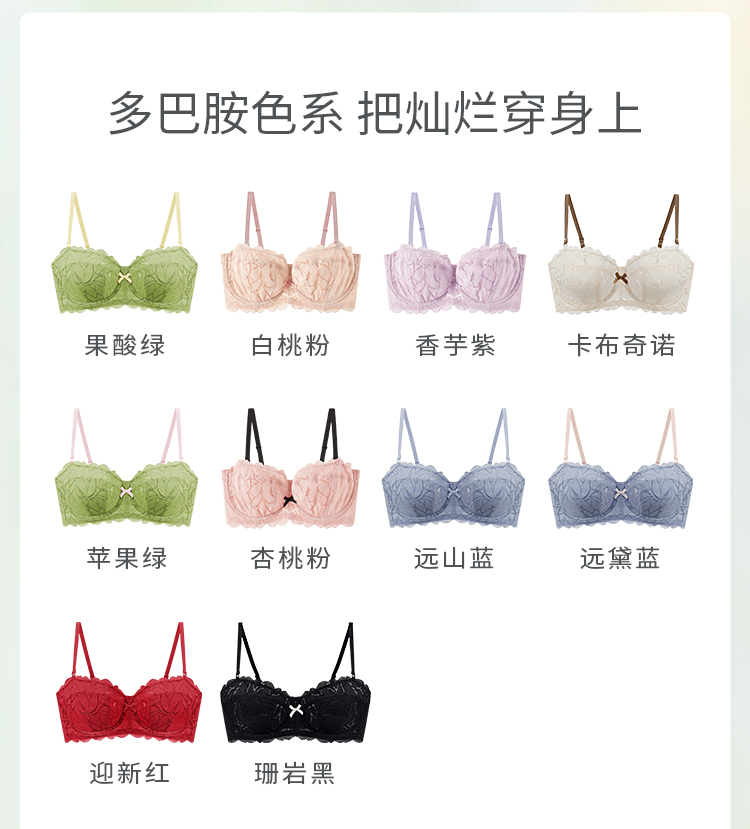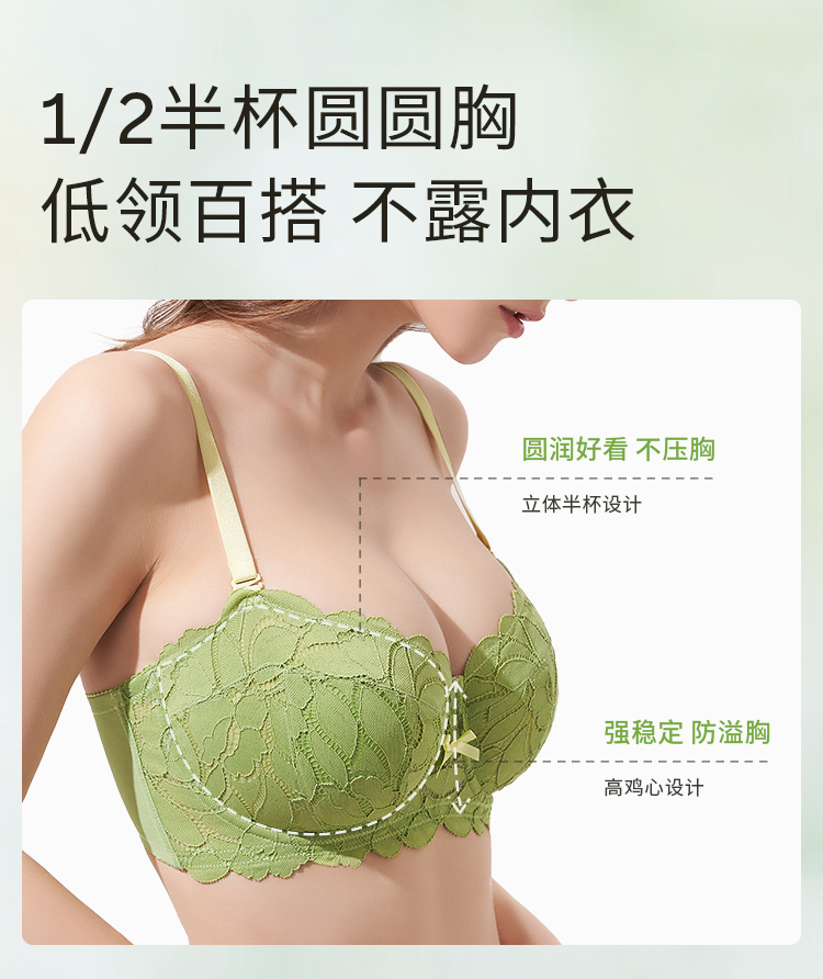 [叶漫]大胸显小半杯圆圆杯超薄半杯撞色防凸点蕾丝内衣