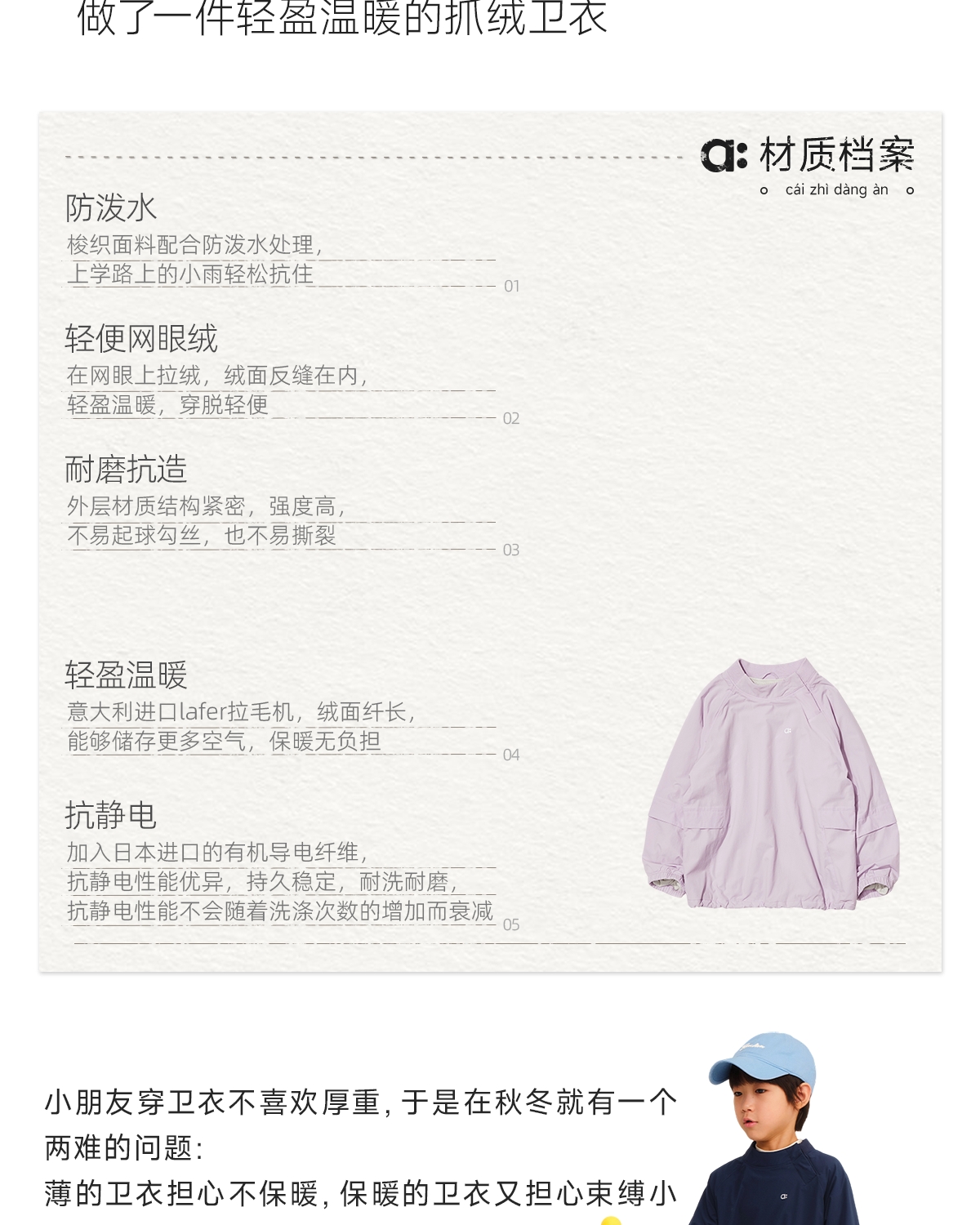 【秋Vol.2】allblu幼岚【轻便抓绒卫衣】儿童卫衣A类25秋新款男童女童抗静电ZY