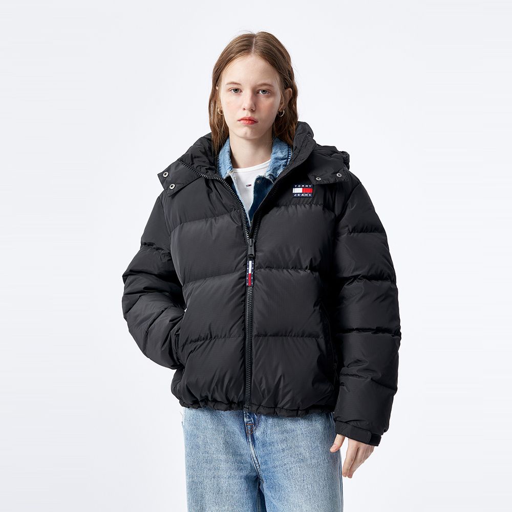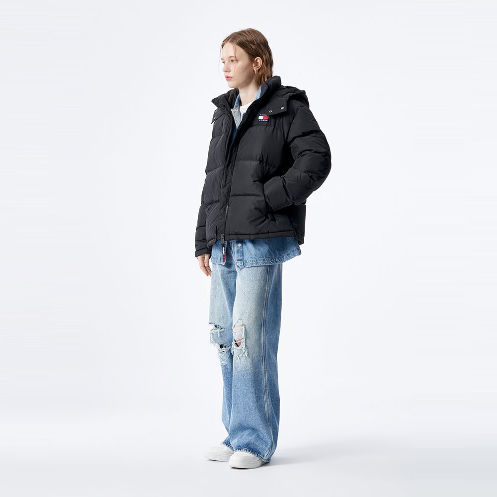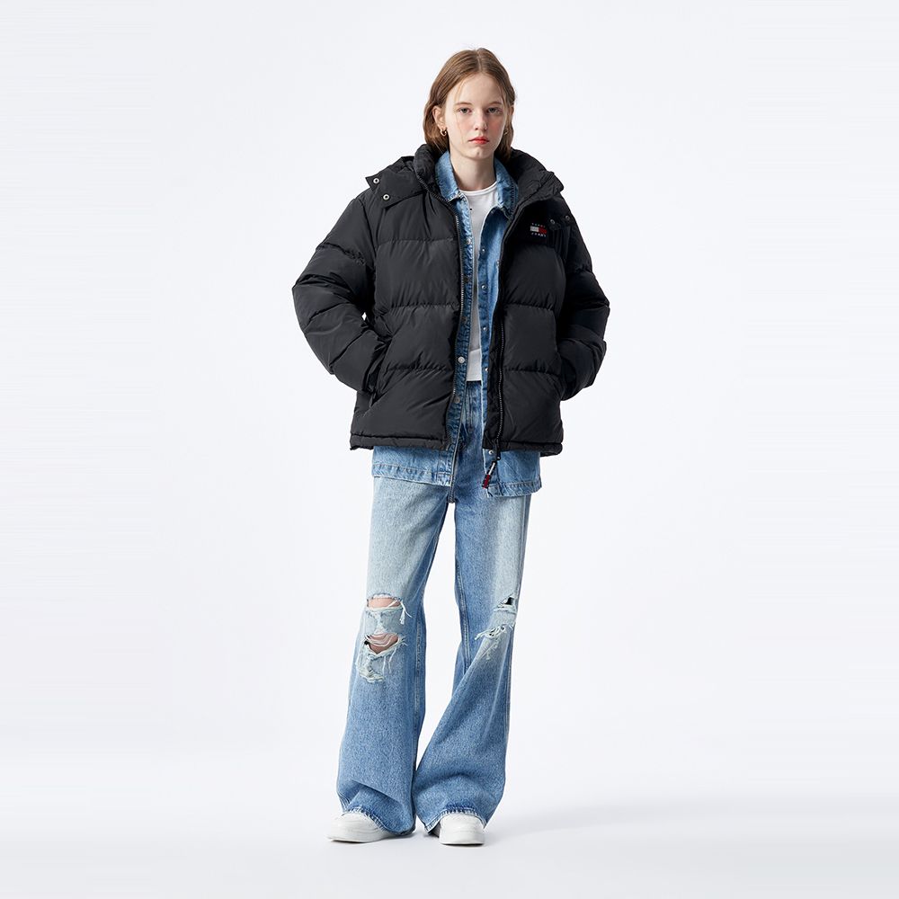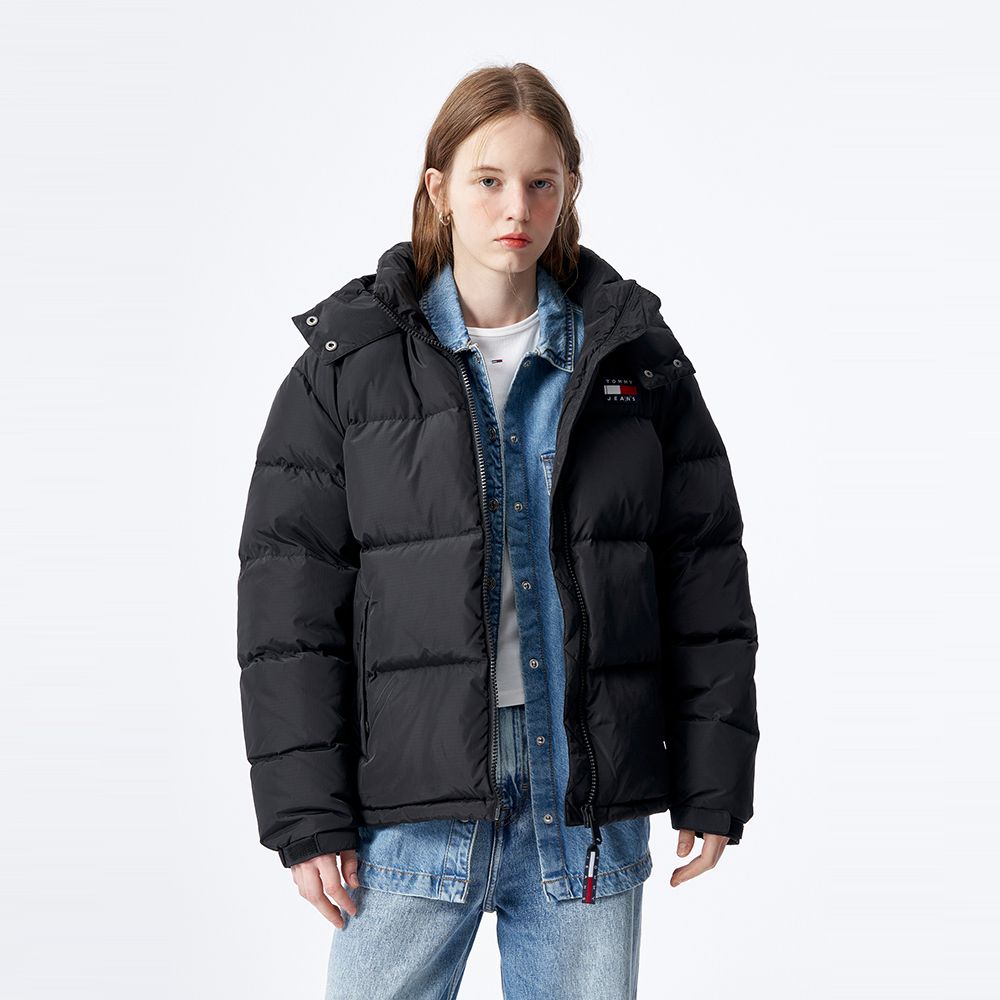 可拆卸帽的设计让这款羽绒服更加的保暖,胸口竖拉链设计更加突出与众不同的理念,立领和直裁下摆塑造别致造型