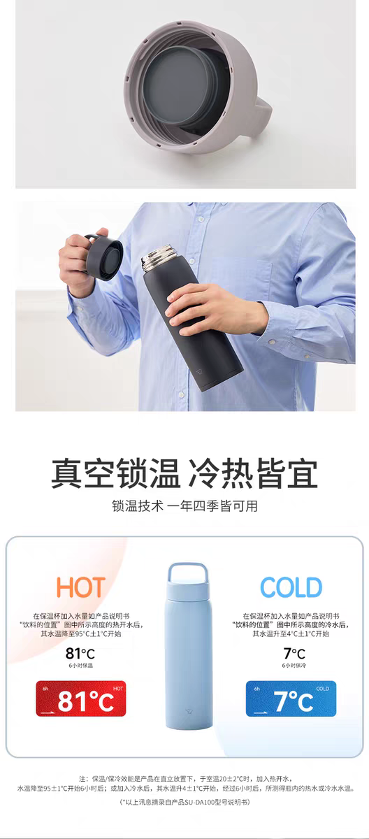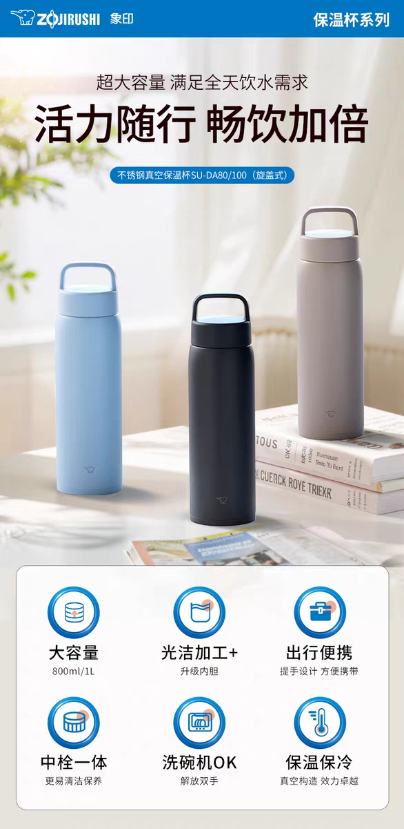 【春上新】10楼 象印不锈钢真空保温杯 (旋盖式)SU-DA80/DA100 吊牌价559元/569元 活动价279元/289元