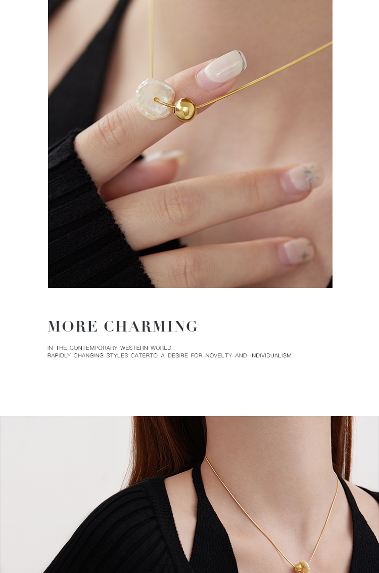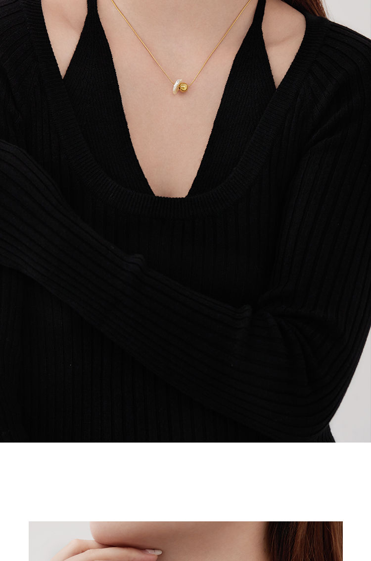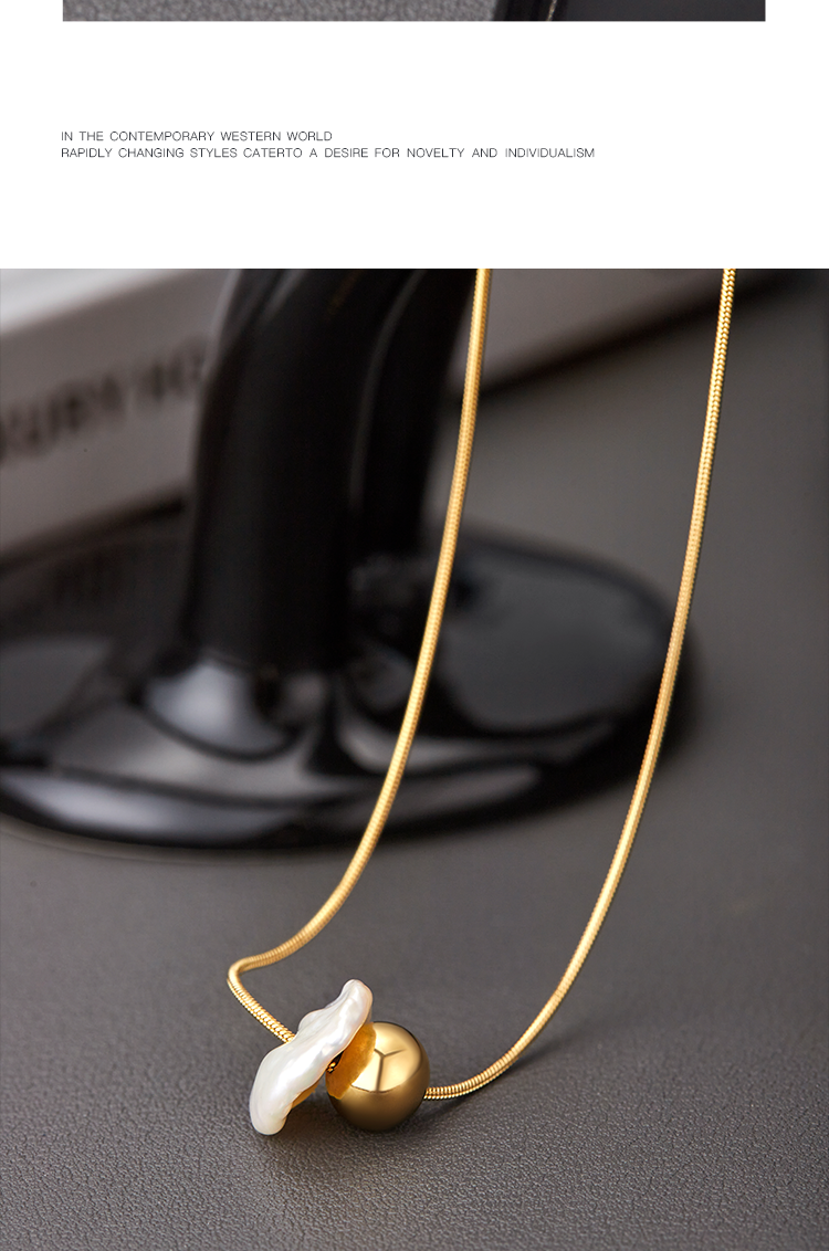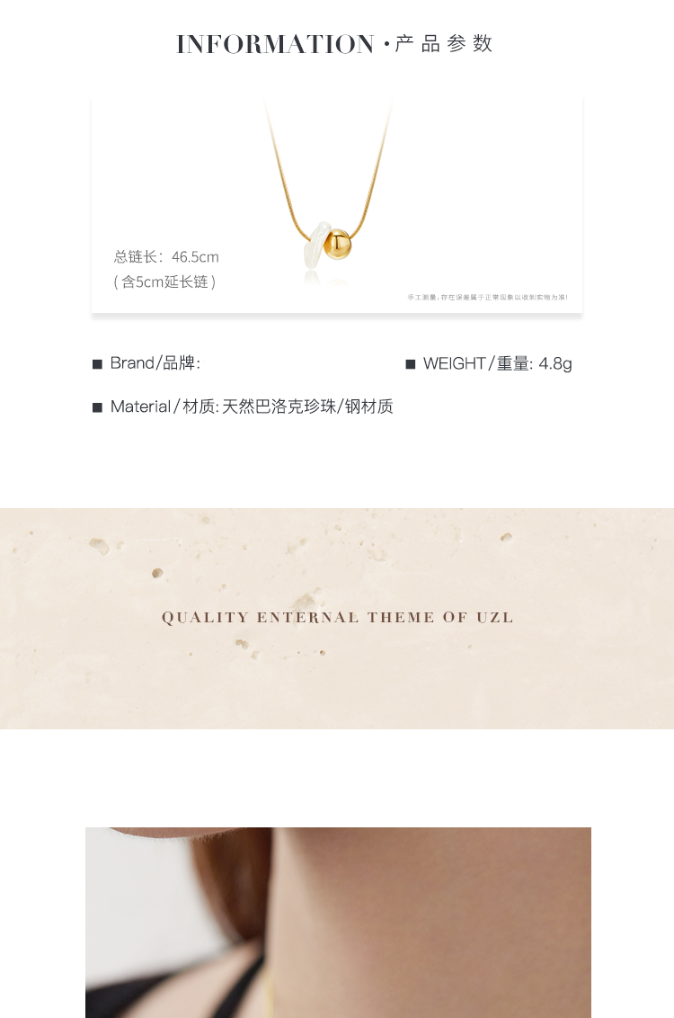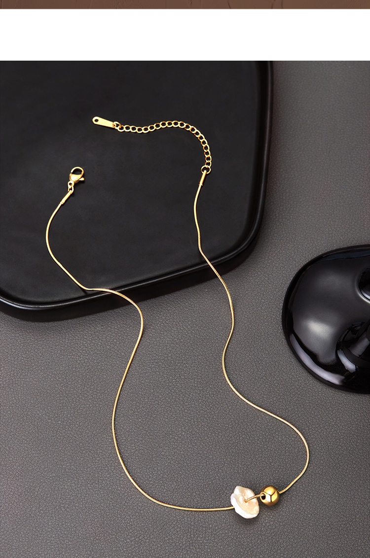 【包邮】Oflye潮流饰品 天然巴洛克珍珠项链女小众轻奢金色颈链气质小圆球锁骨链