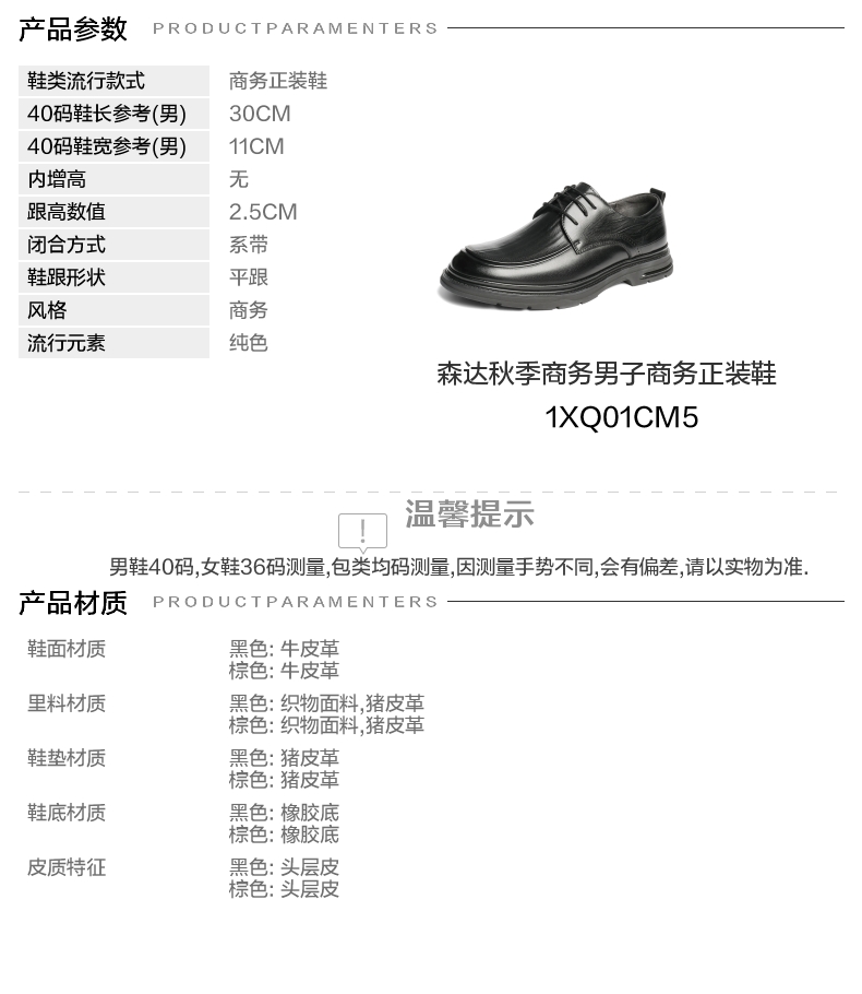 【云粉节】BF楼 森达正装皮鞋2025秋季新款简约通勤舒适商务男鞋1XQ01吊牌价1099活动价499