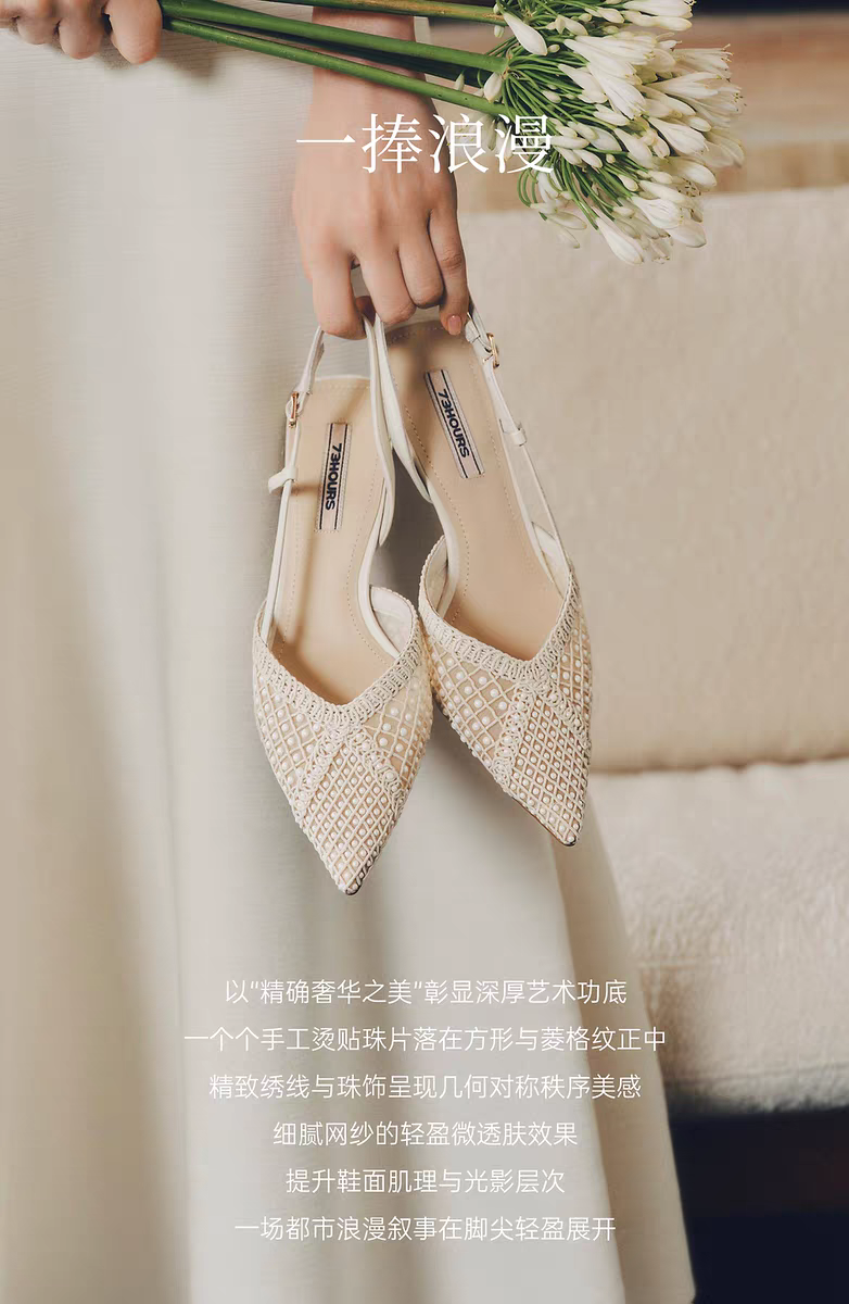 BF楼73Hours73hours女鞋一捧浪漫2026春季新款仙气网纱高跟鞋婚鞋女后空凉鞋吊牌价1360 活动价1120