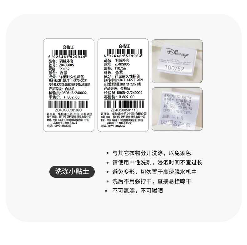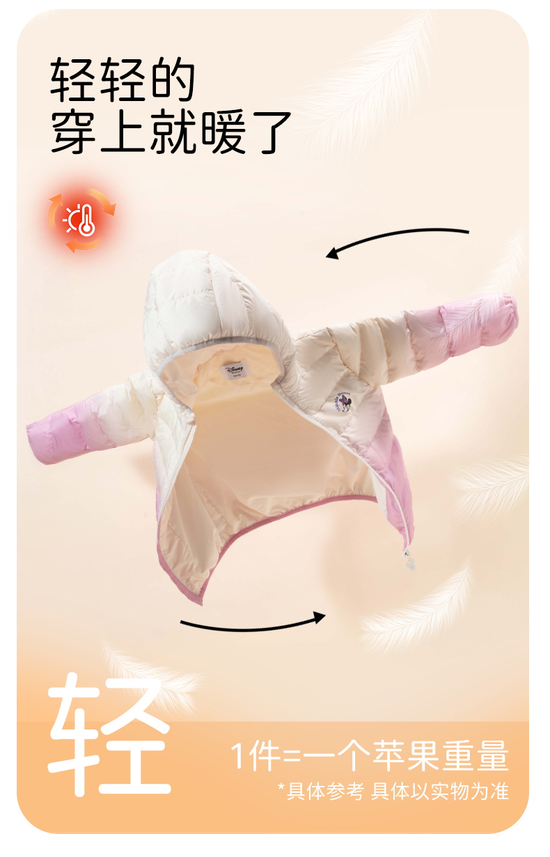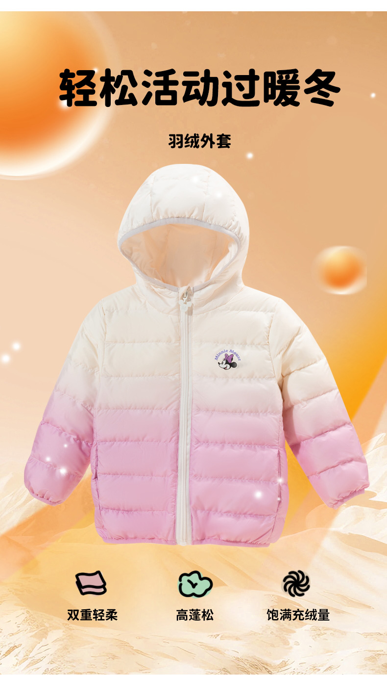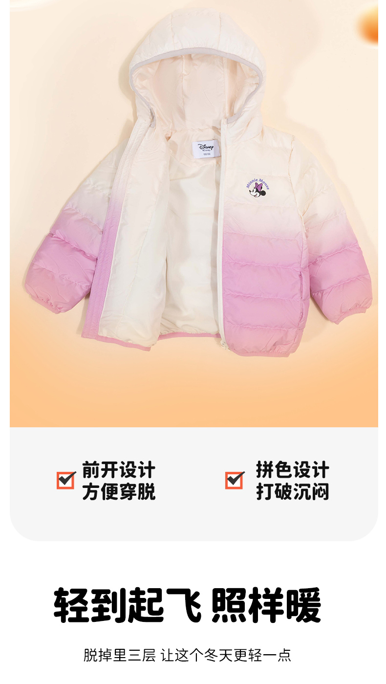 迪士尼童装羽绒服2024冬季新款儿童白鸭绒女中大童外套ZD4DS005