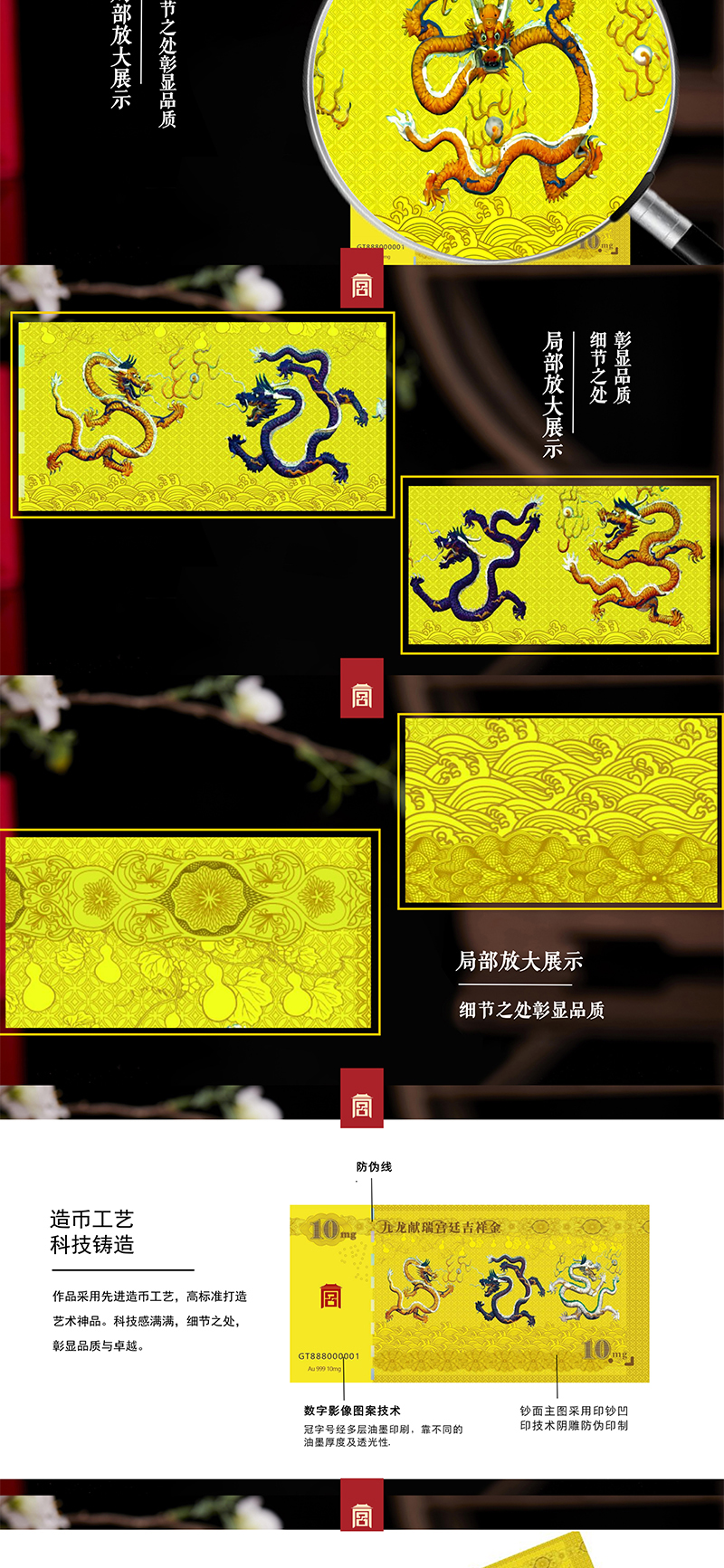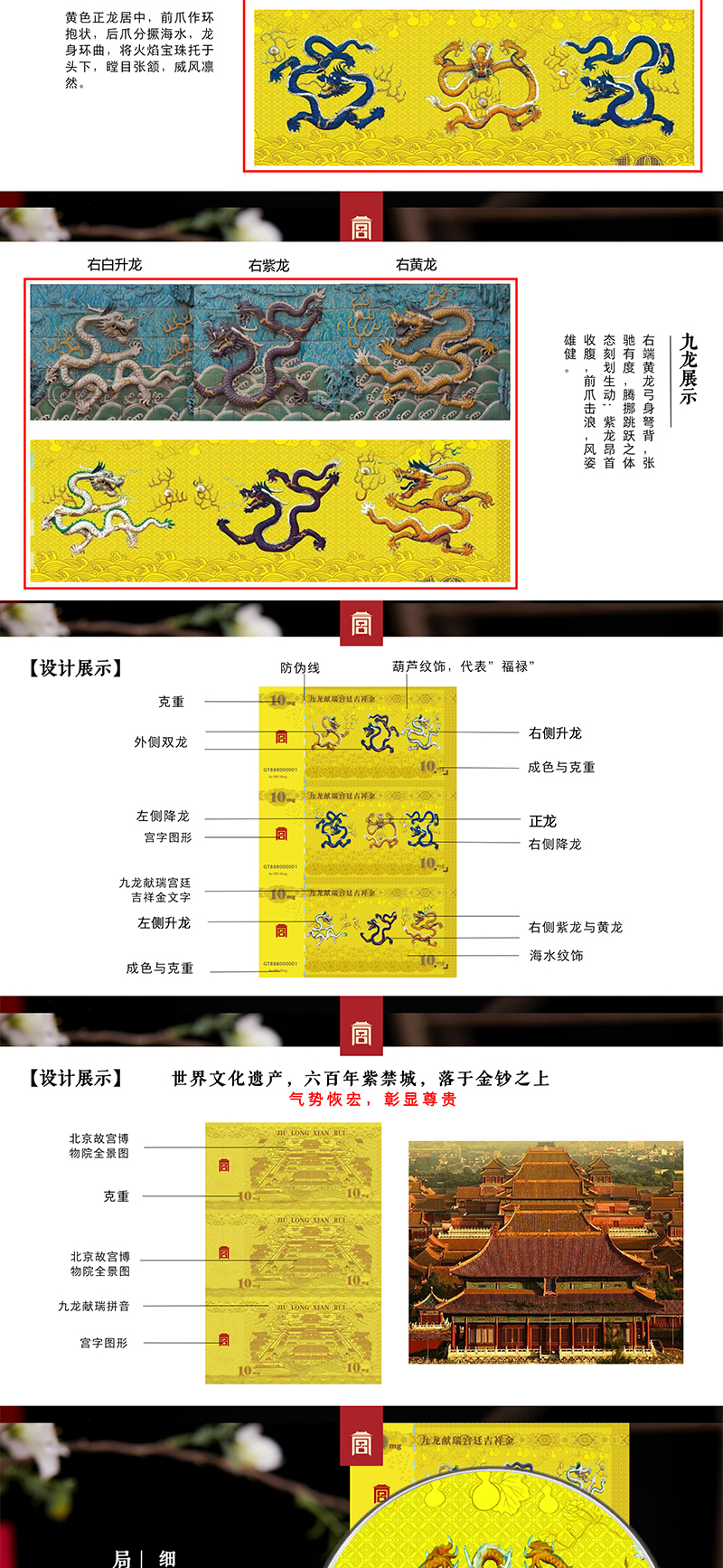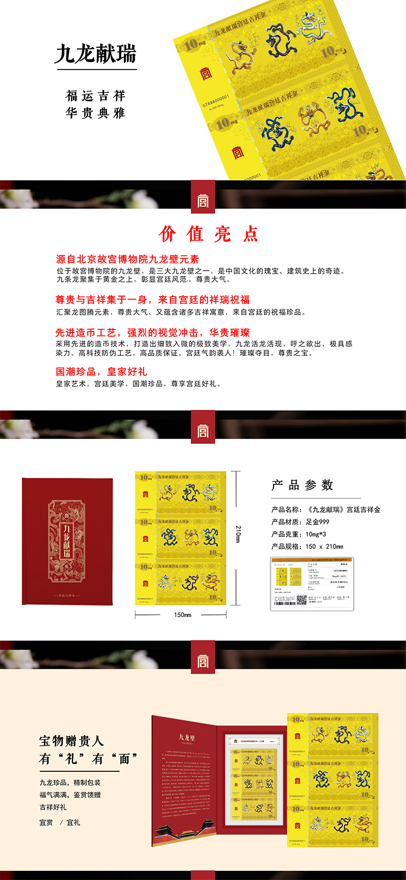 《九龙献瑞》宫廷吉祥金 取自故宫九龙壁 999足金 高科技防伪