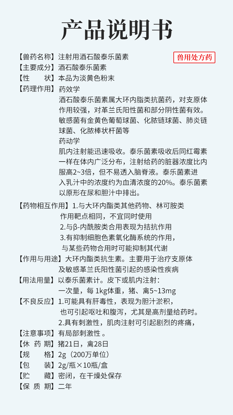 华畜注射用酒石酸泰乐菌素猪支原体呼吸道正品牛羊用肺炎咳嗽喘气