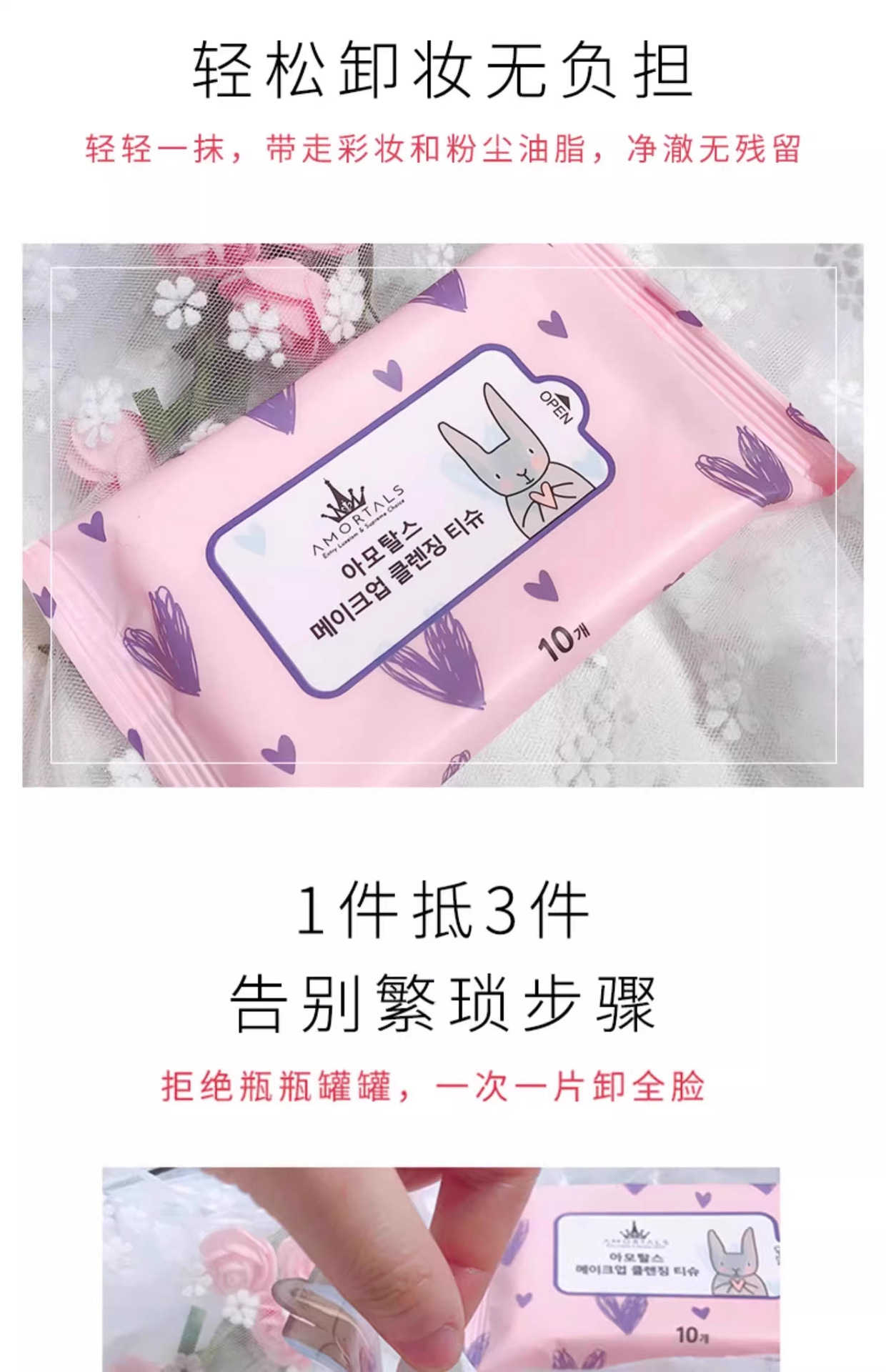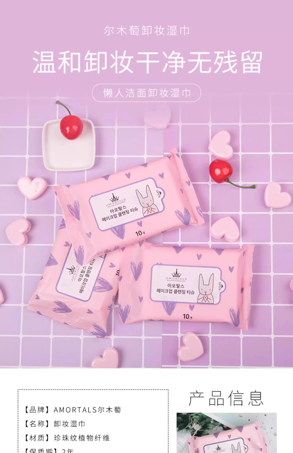 尔木萄卸妆湿巾10抽一次性便携抽取式湿纸巾深层清洁脸部用温和无刺激