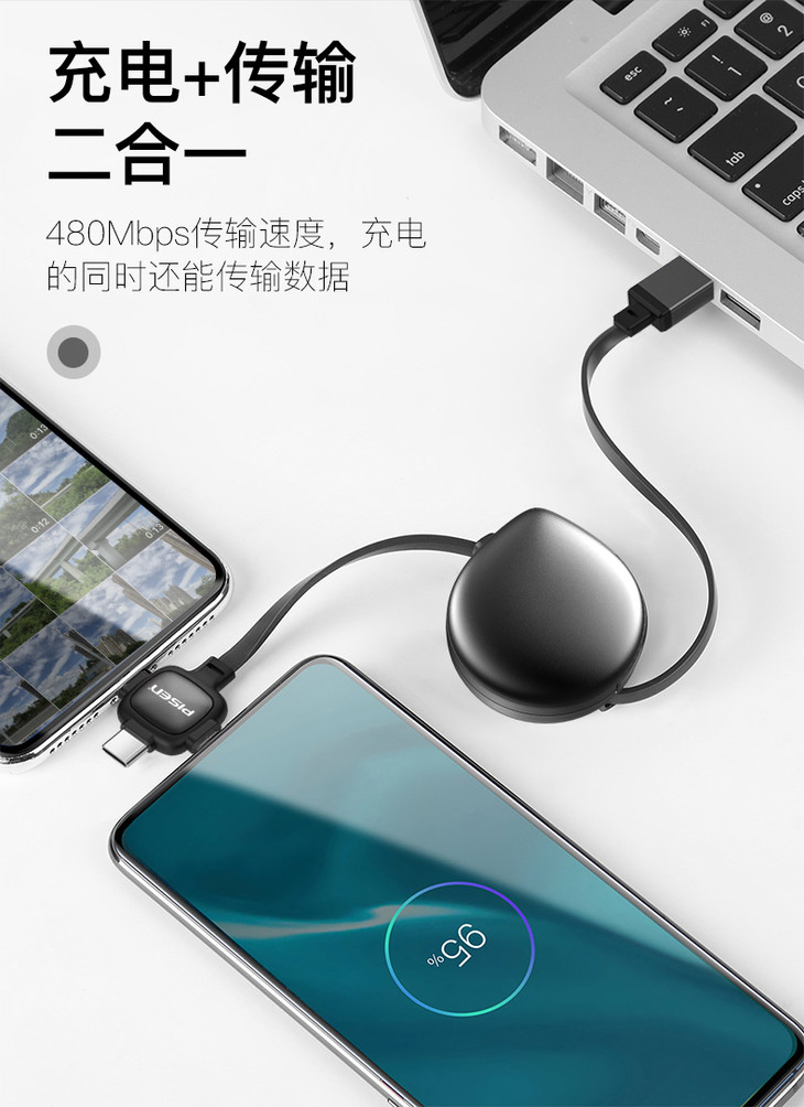 品胜 水滴三合一伸缩数据线充电线 高颜值 随身携带一体收纳