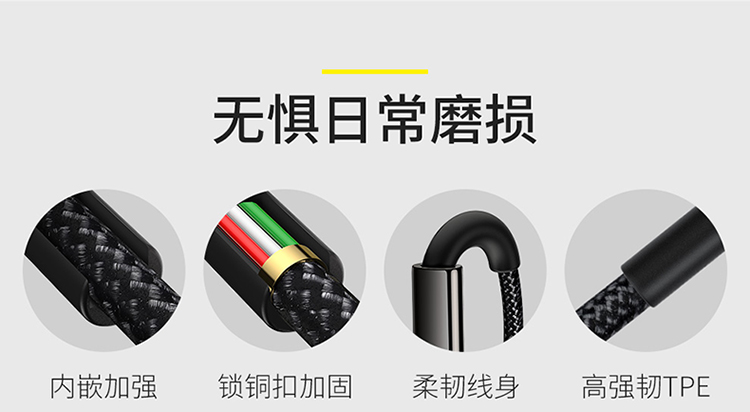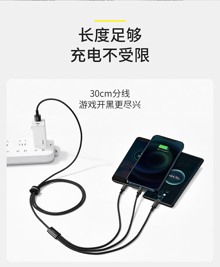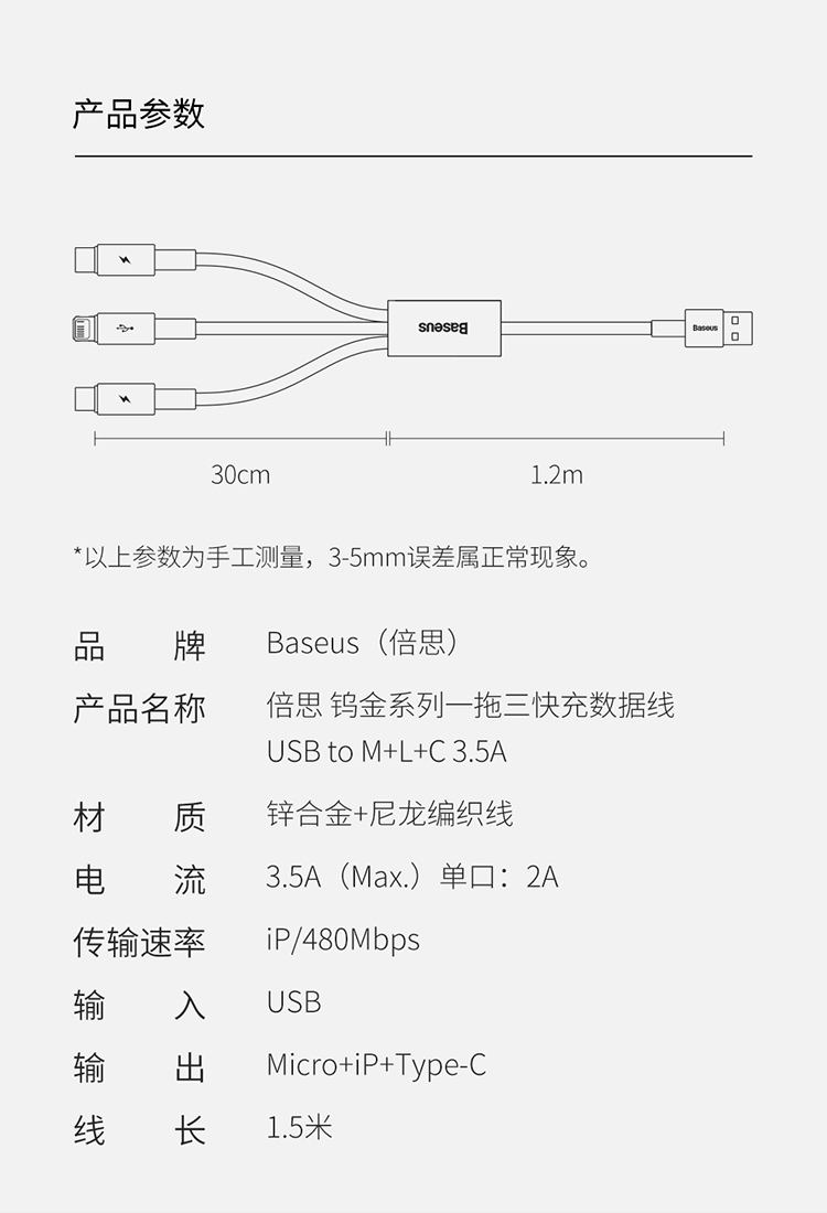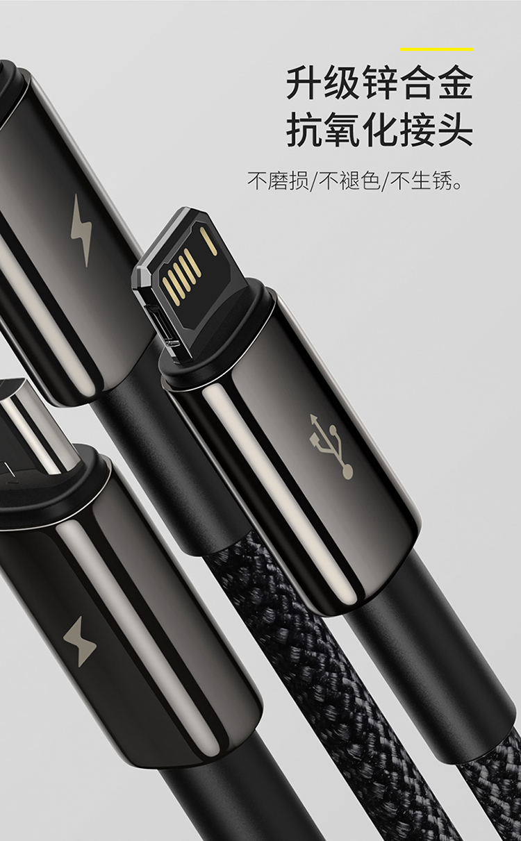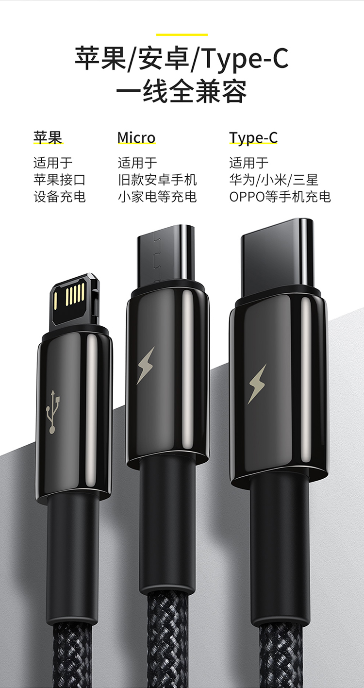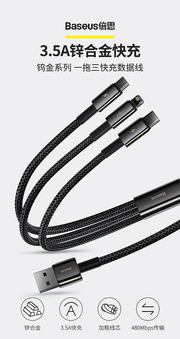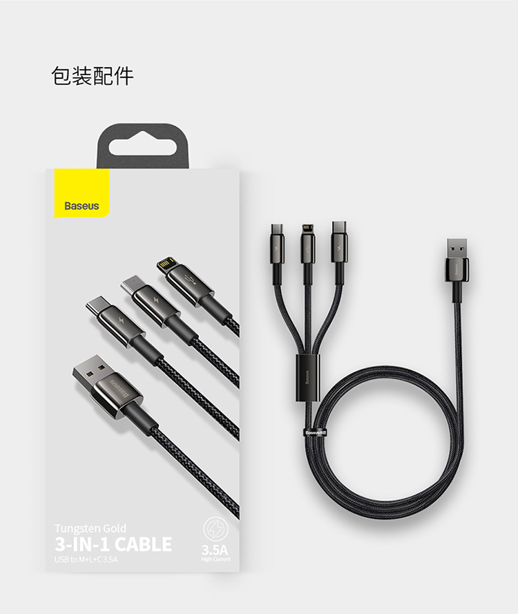 倍思 钨金系列一拖三快充数据线USB to M+L+C 3.5A 1.5m
