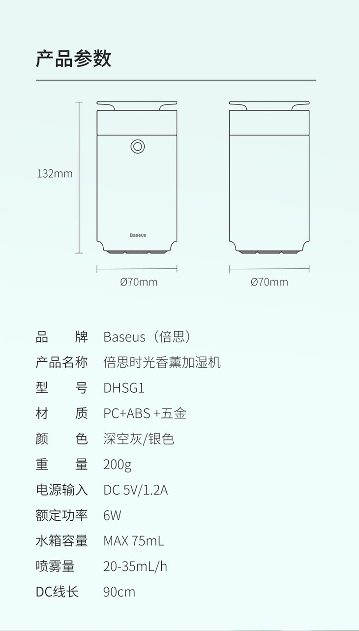 【十一专享】倍思 时光香薰加湿器75ml(含:DC充电线)