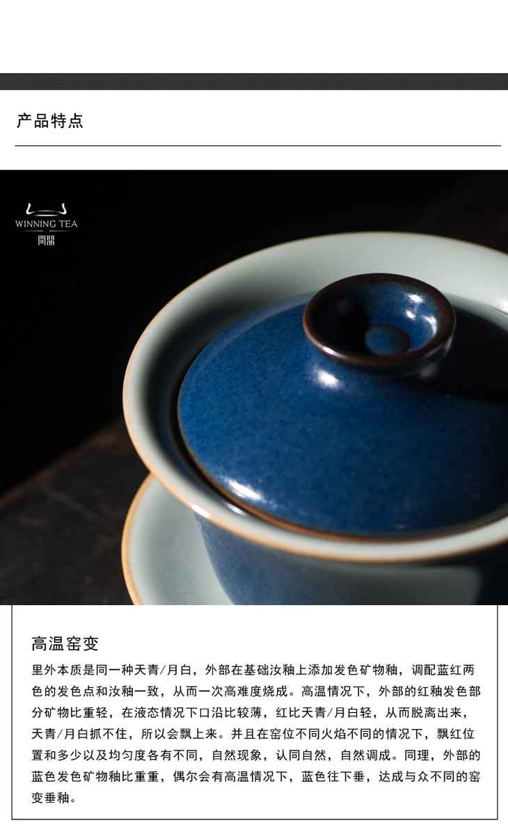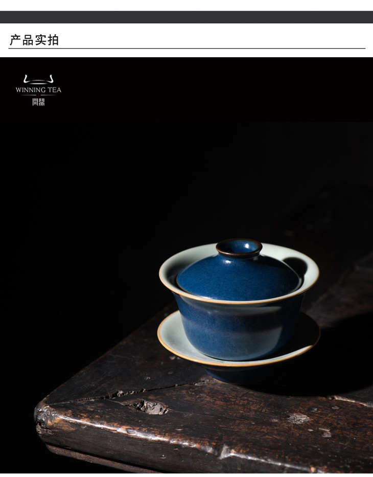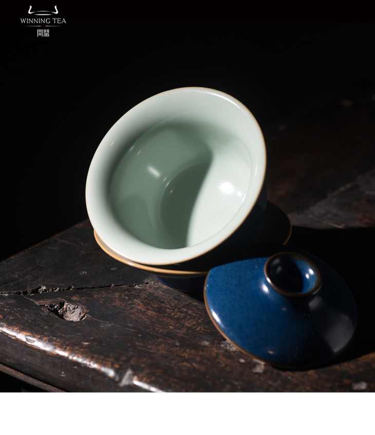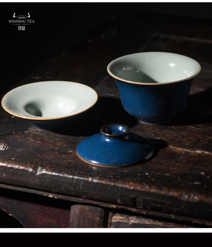 问鼎汝瓷鼎峰系列黛蓝三才盖碗(缺货)