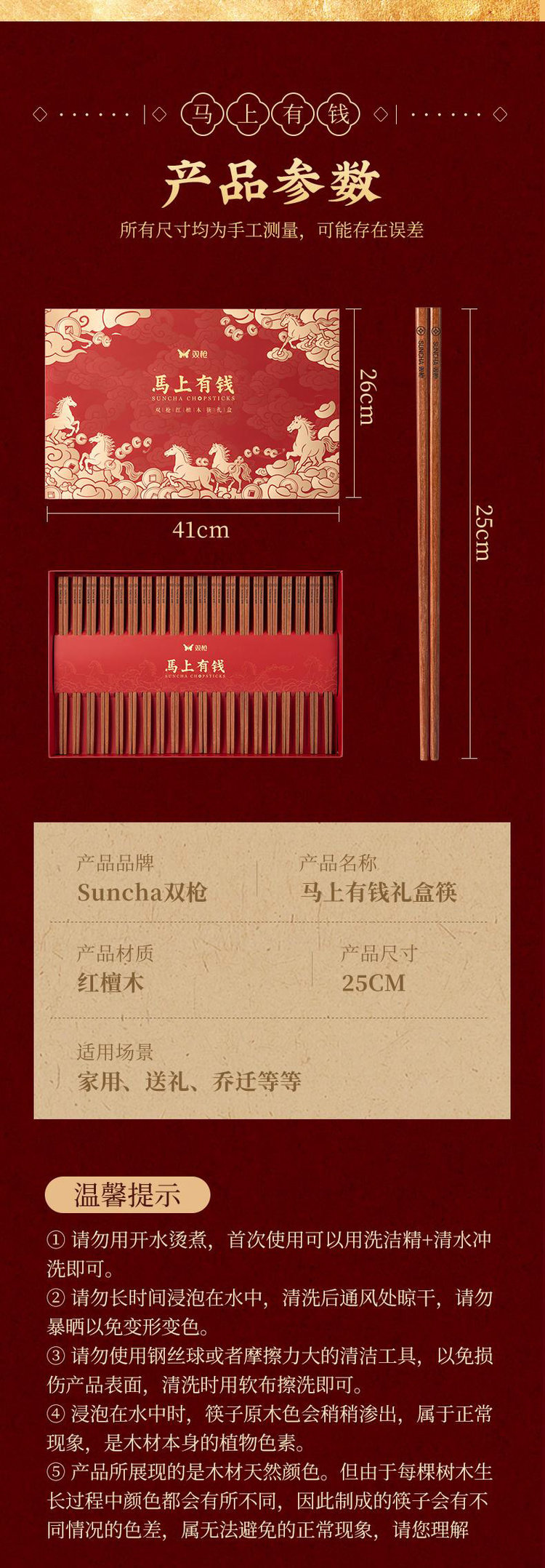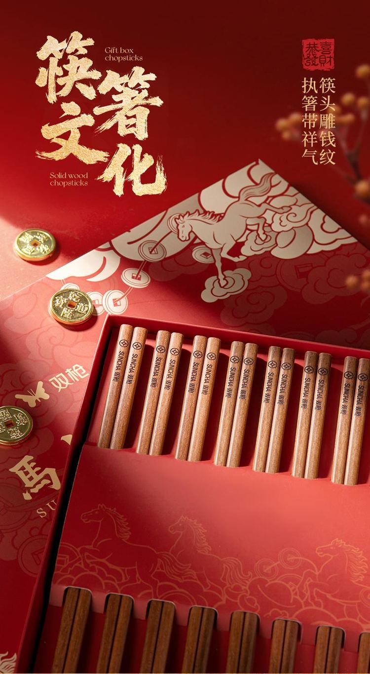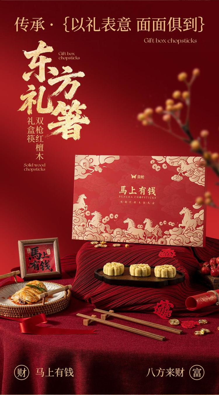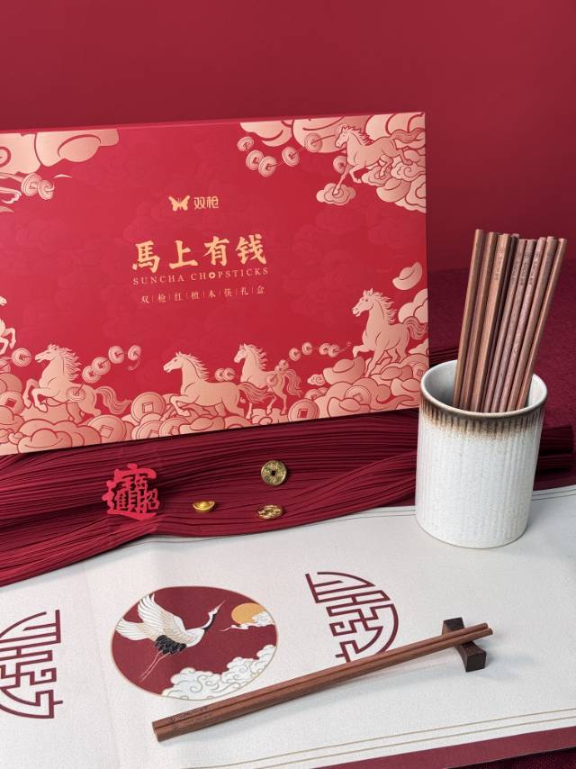 双枪红檀木招彩筷礼盒