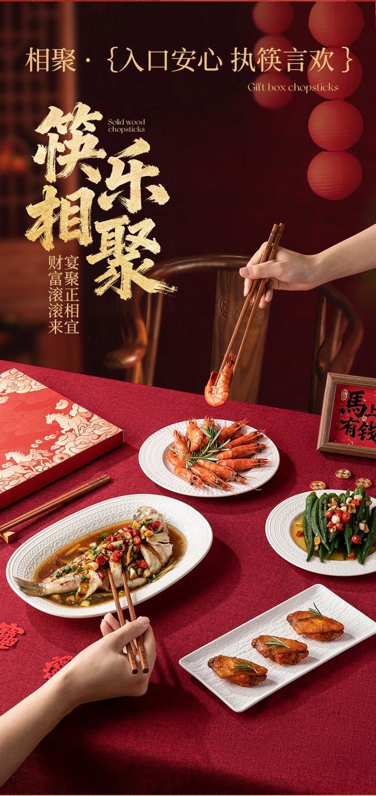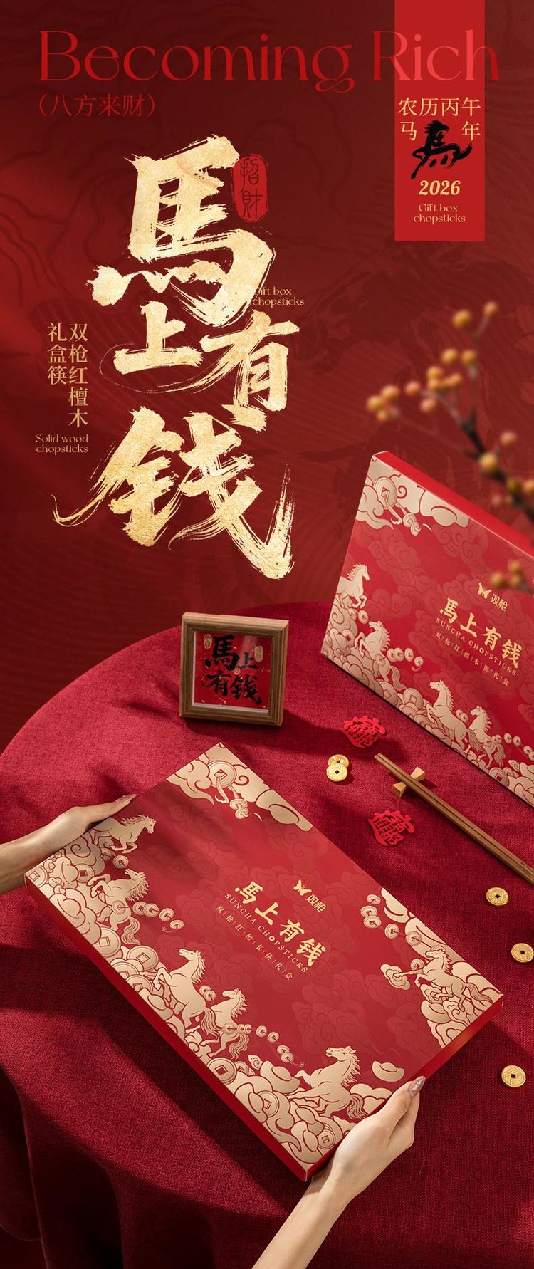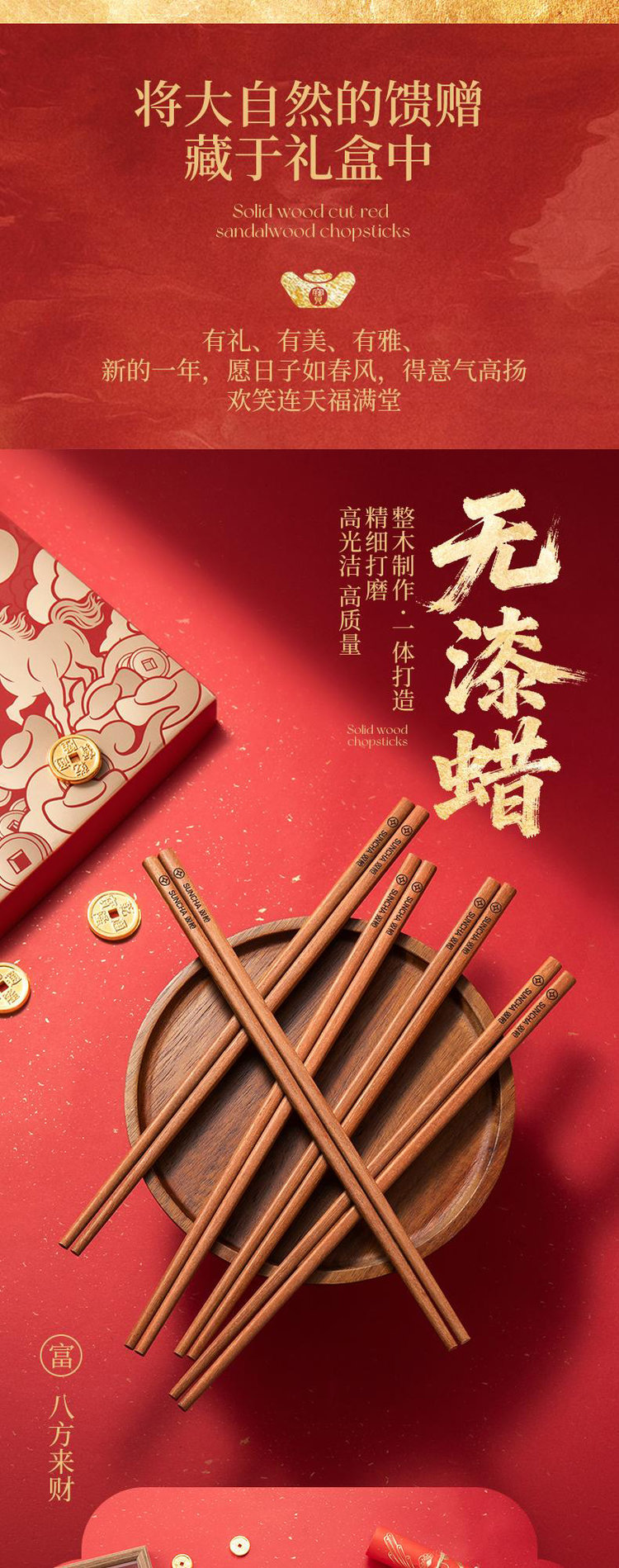 双枪红檀木招彩筷礼盒