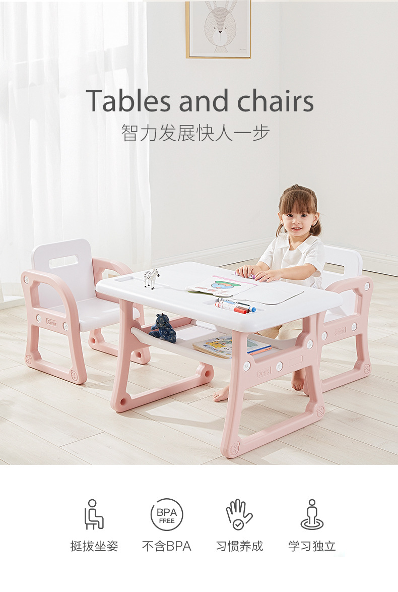 儿童学习玩耍桌椅 现代简约桌椅套装 易擦洗儿童学习桌椅