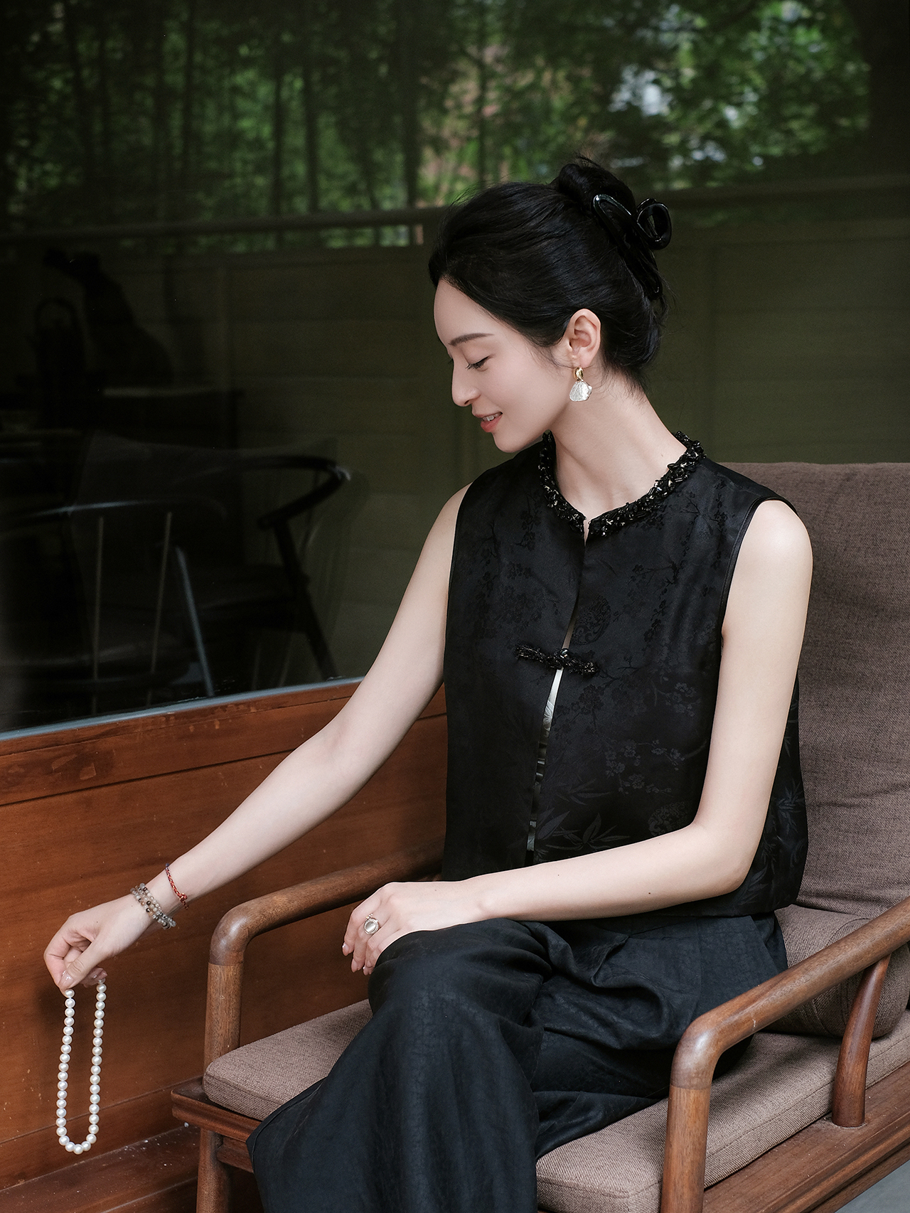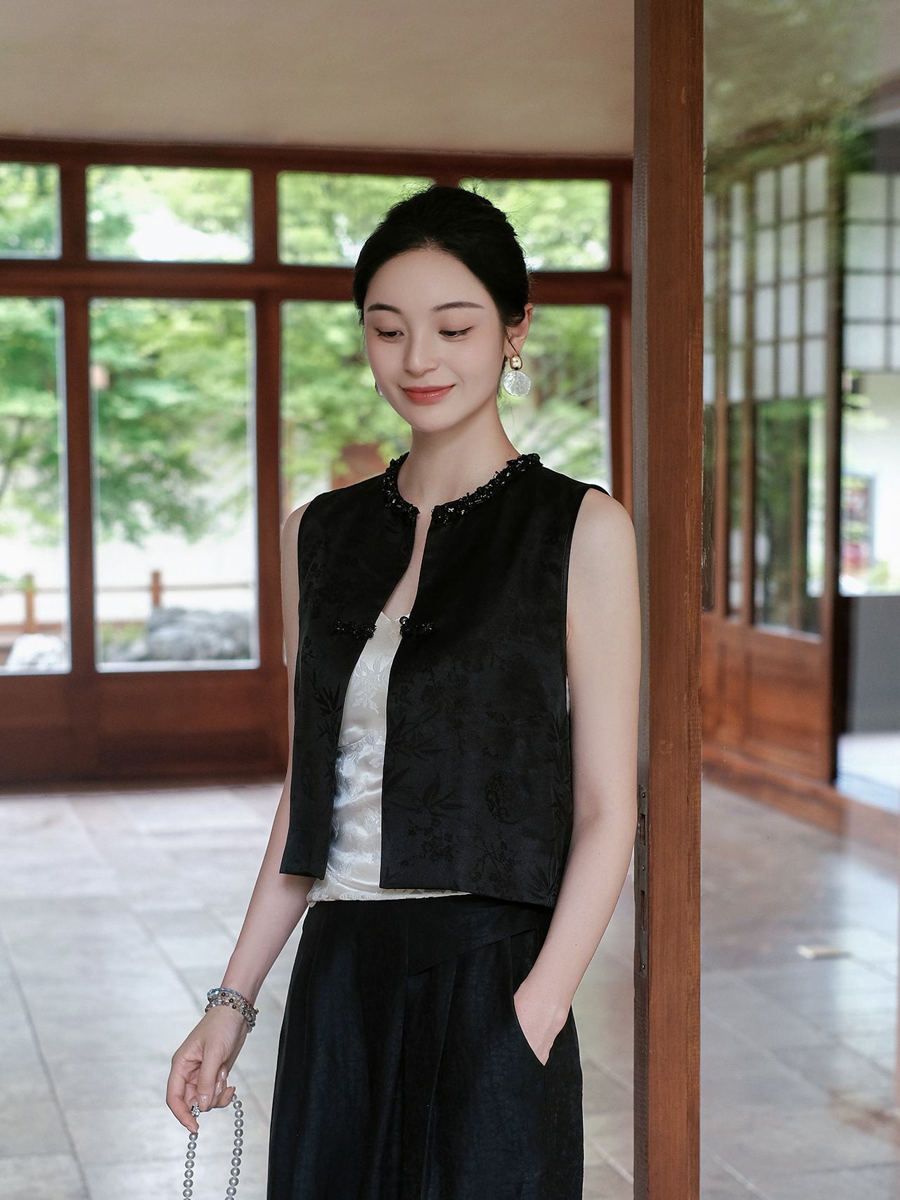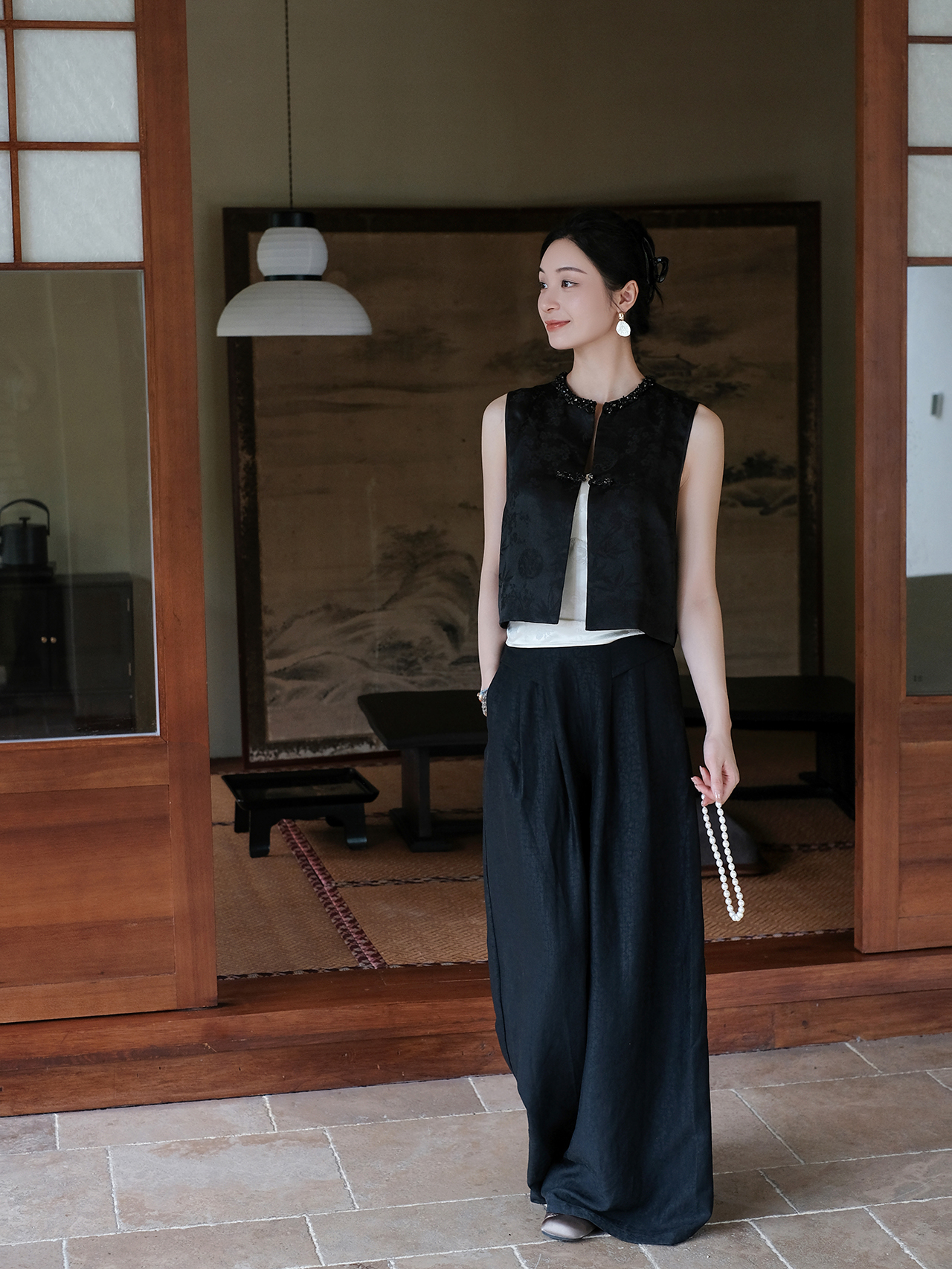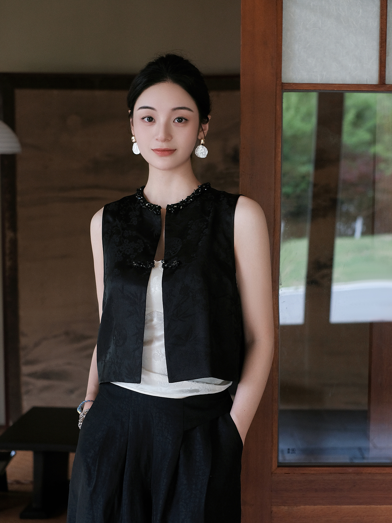 盛唐牡丹|真丝香云纱一粒扣马甲