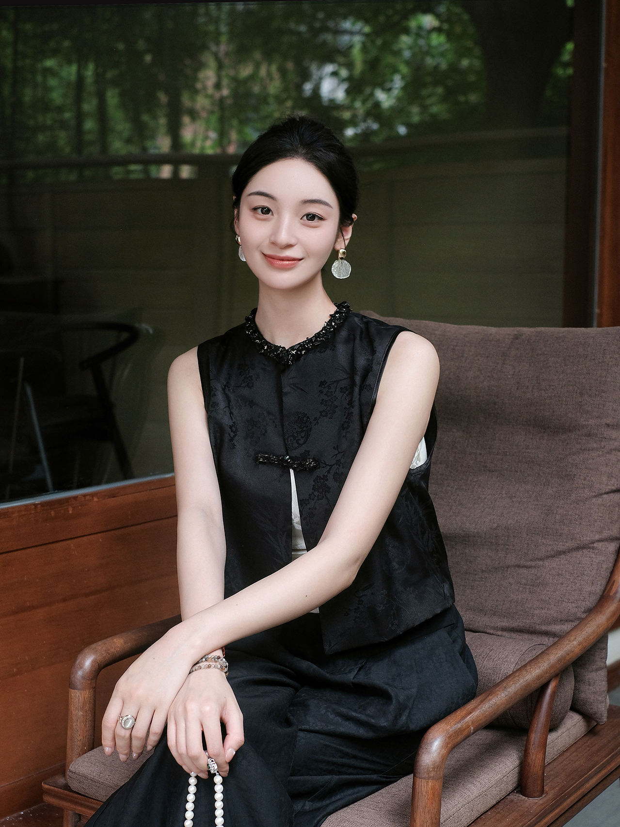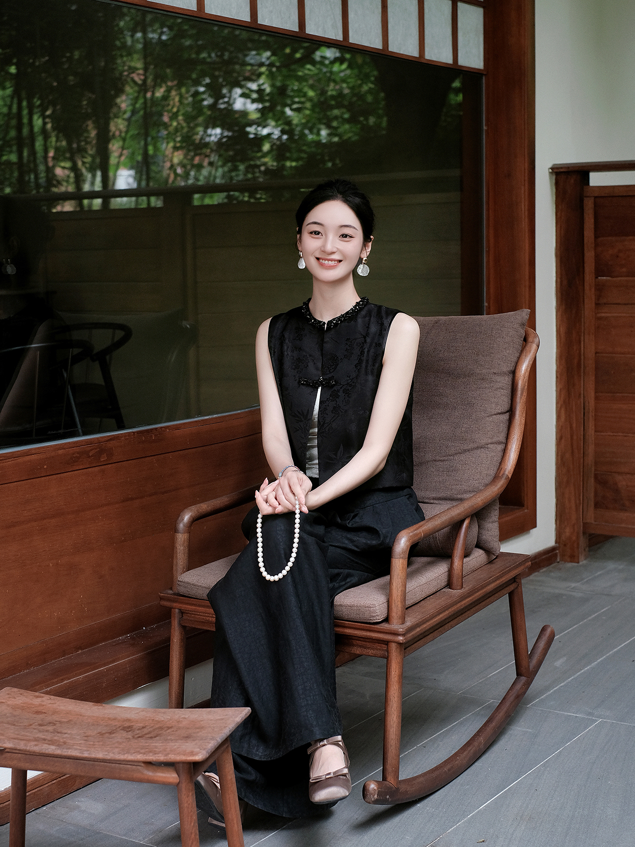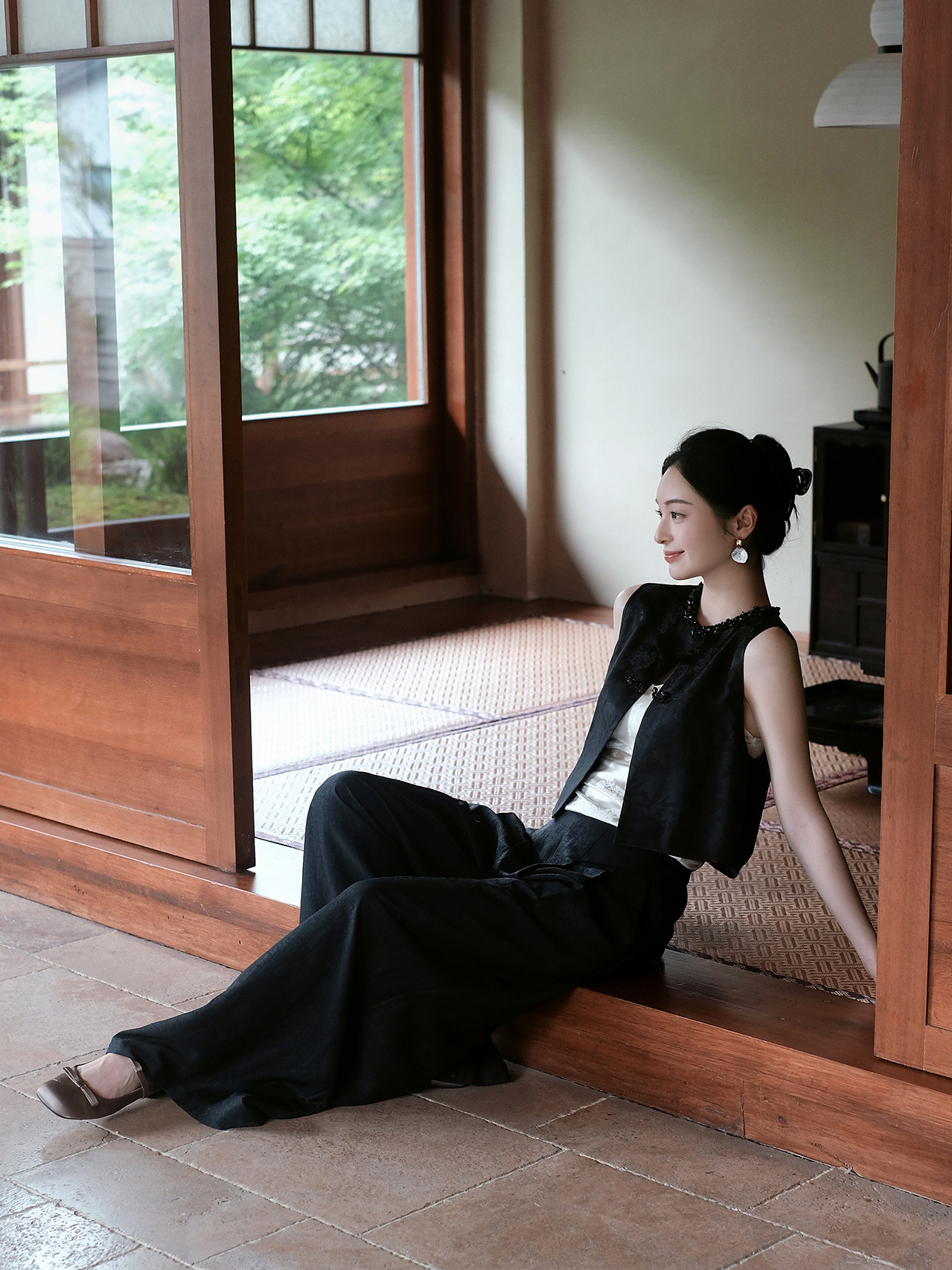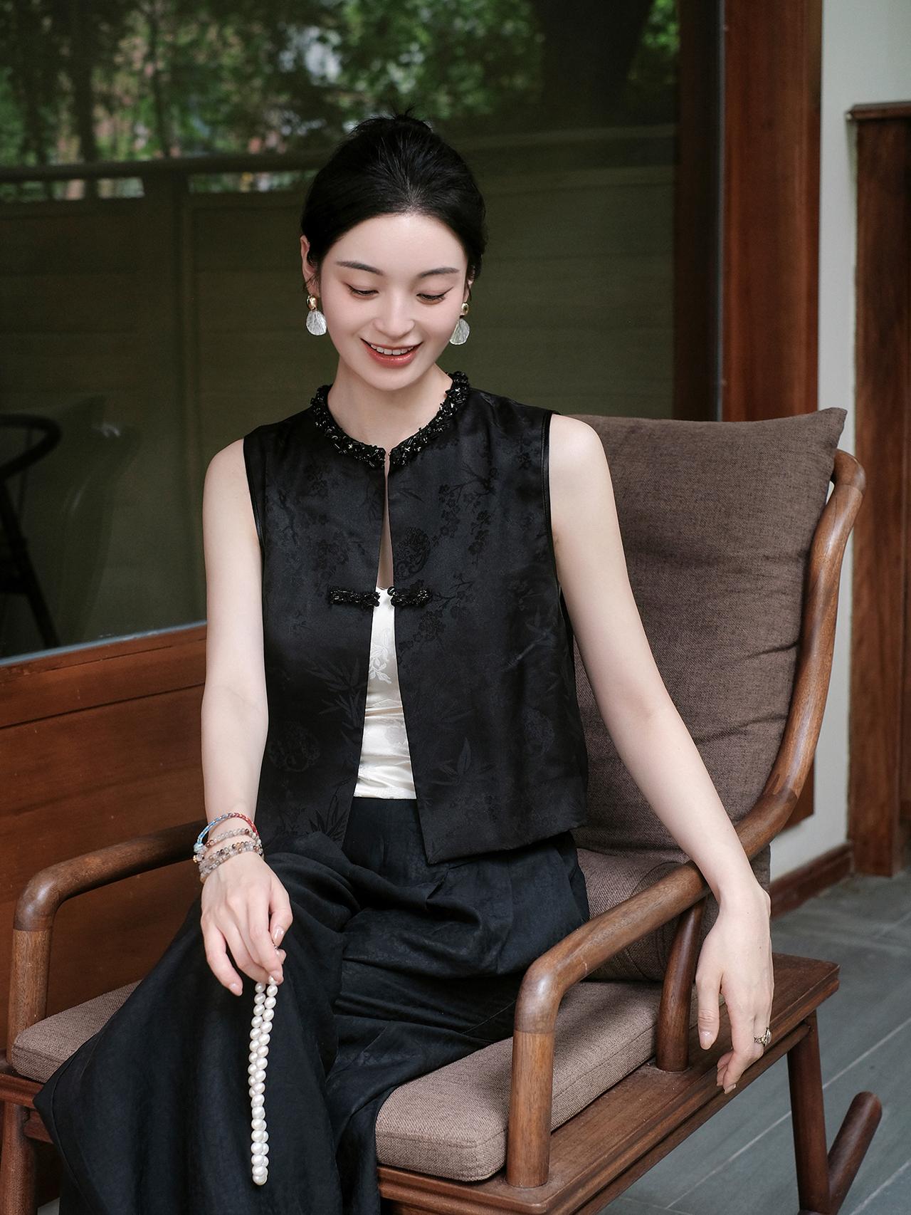 盛唐牡丹|真丝香云纱一粒扣马甲