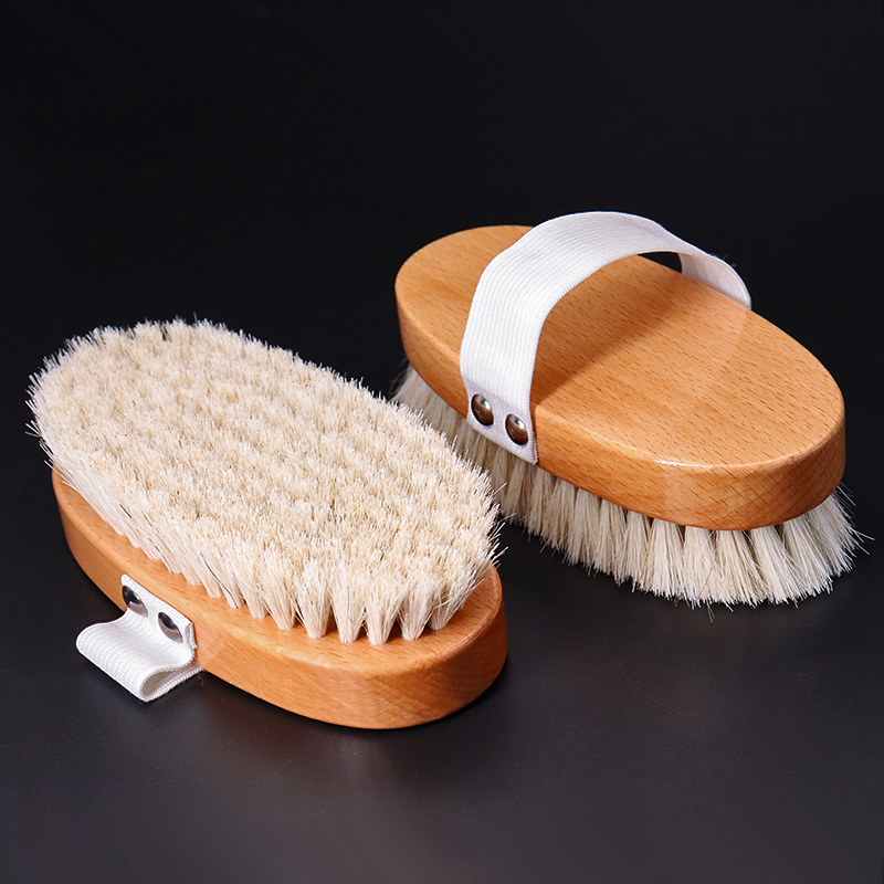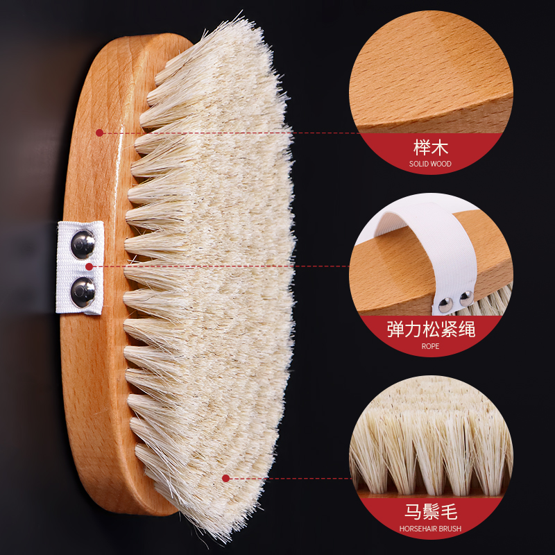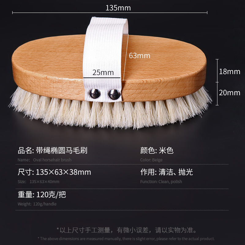 带绳椭圆马毛刷原木鞋刷子清洁软毛刷