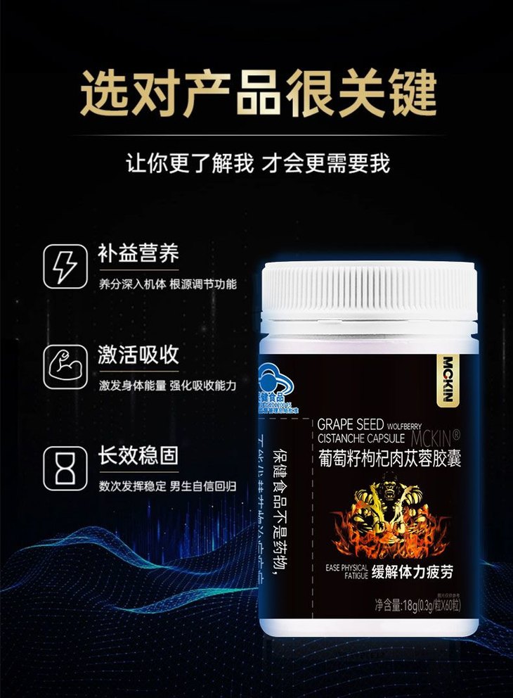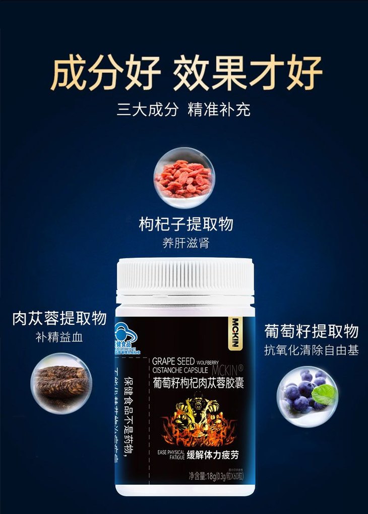 产品名称:葡萄籽枸杞肉苁蓉胶囊60粒/盒
