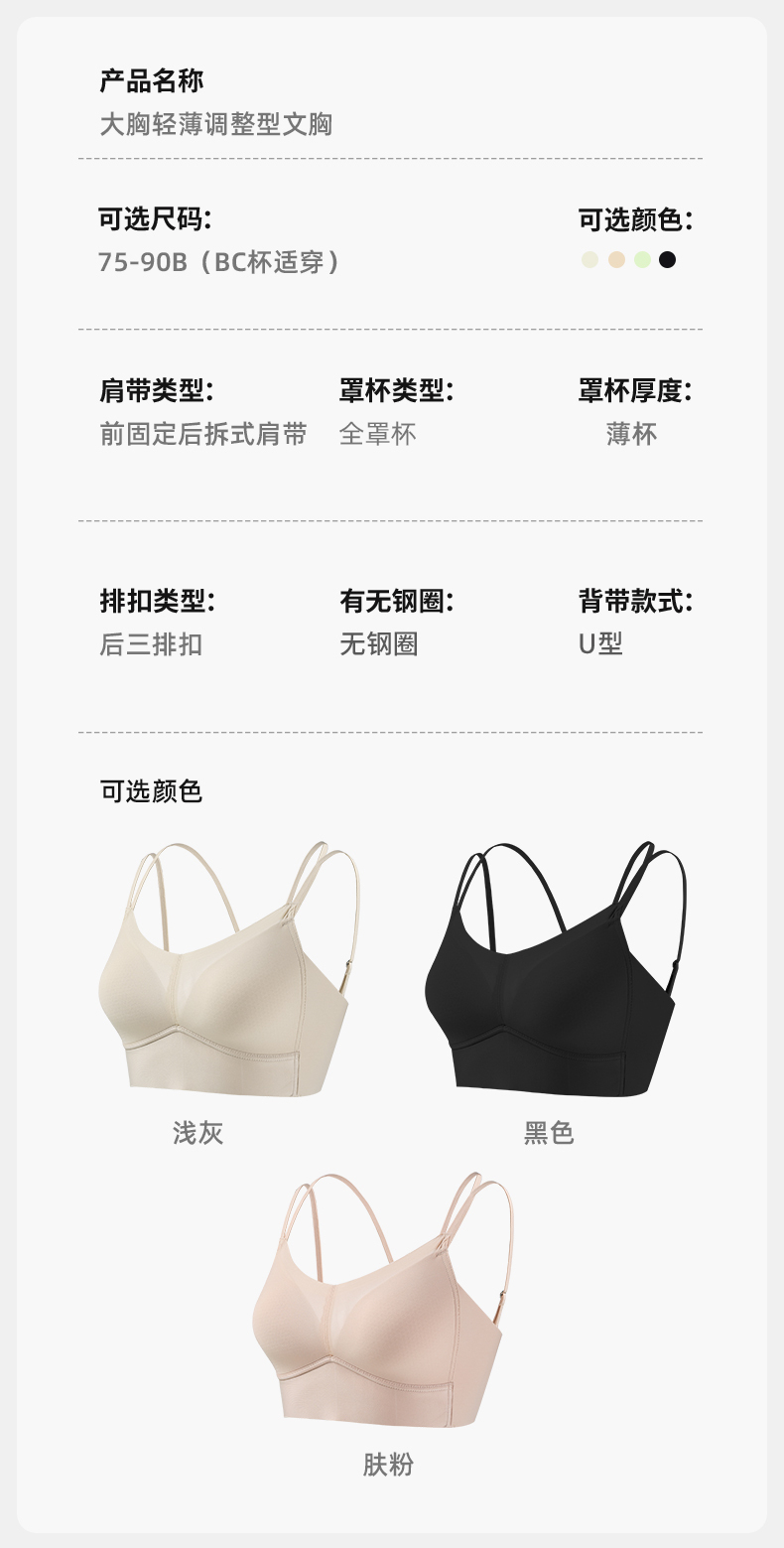 雅黛俪大胸显小内衣女轻薄透气夏季薄款无痕美背文胸全罩杯调整型胸罩
