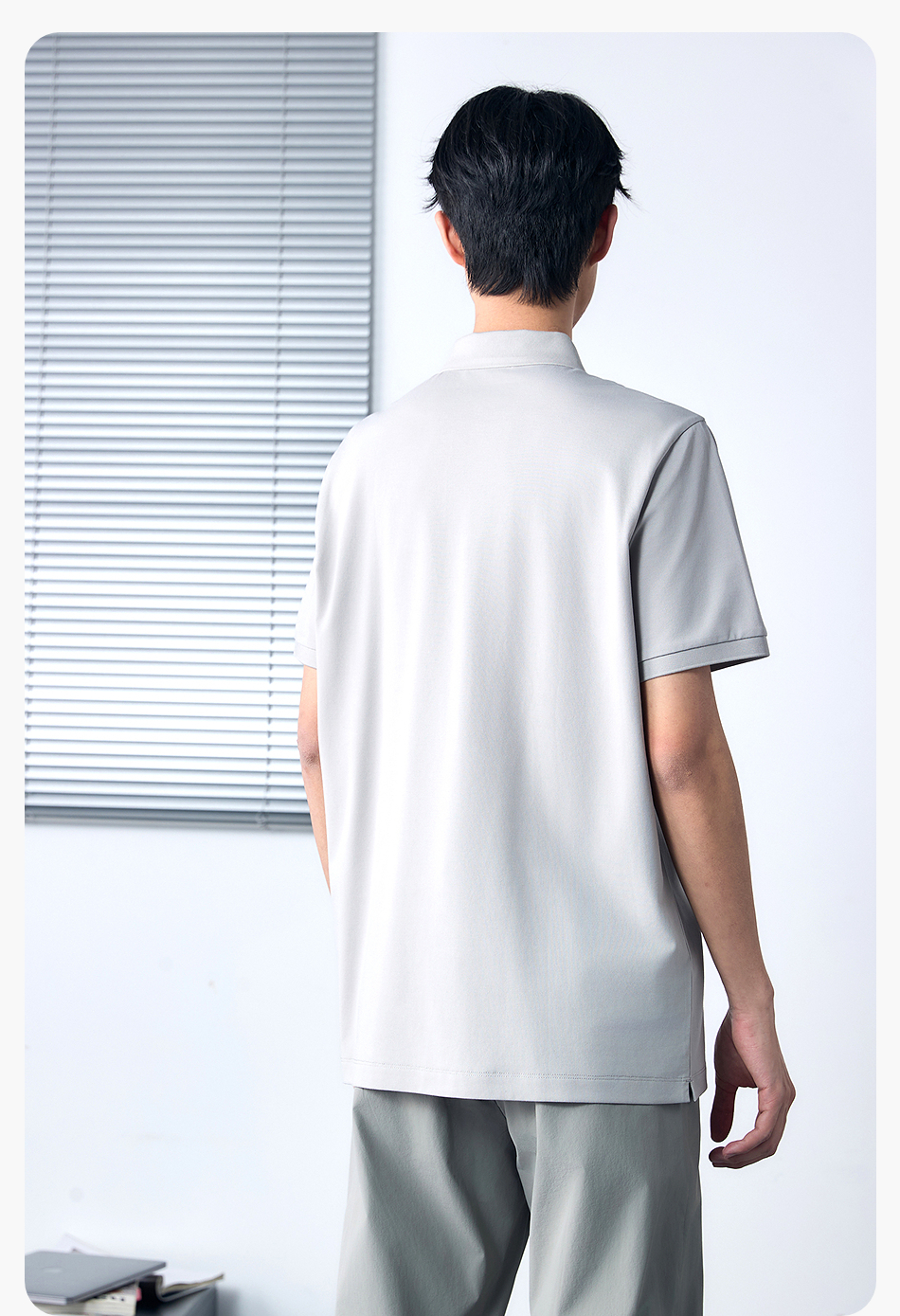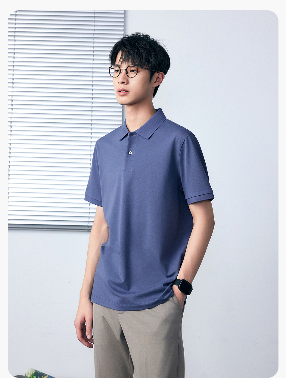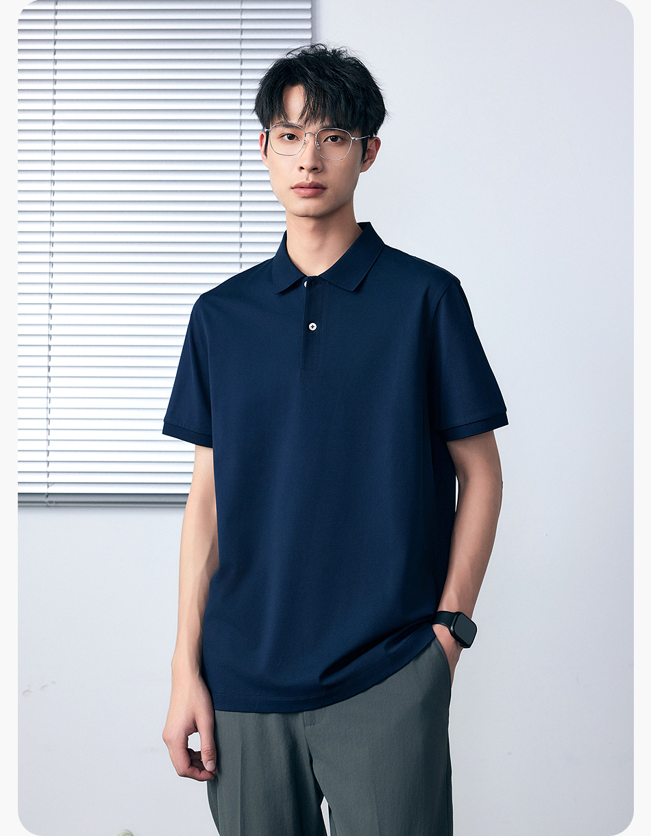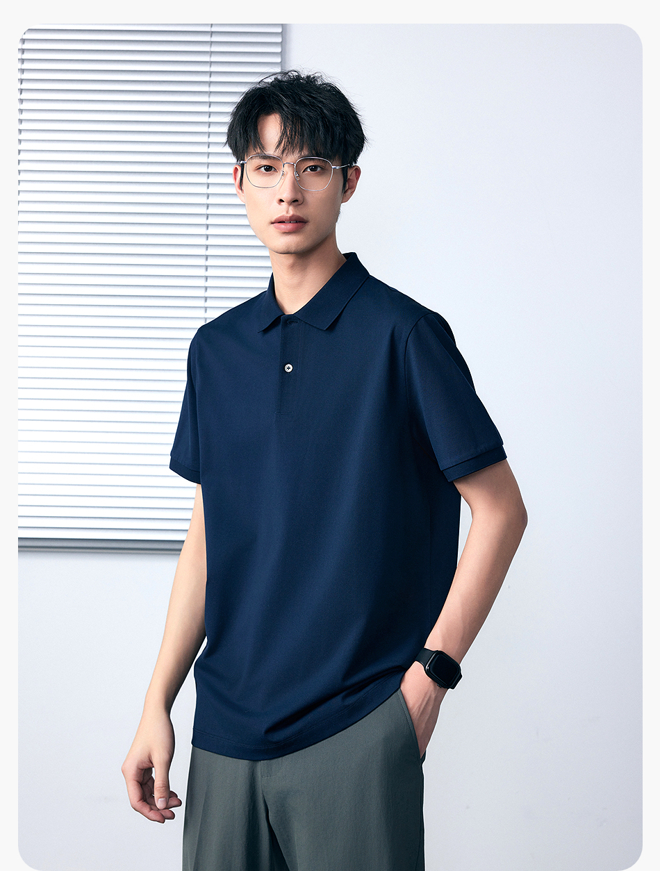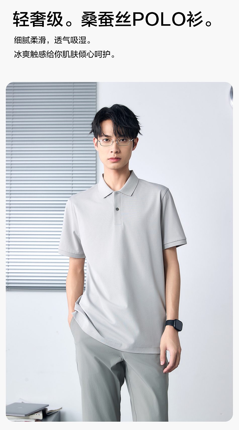 棉仓353802004-桑蚕丝珠地扁机领短袖POLO