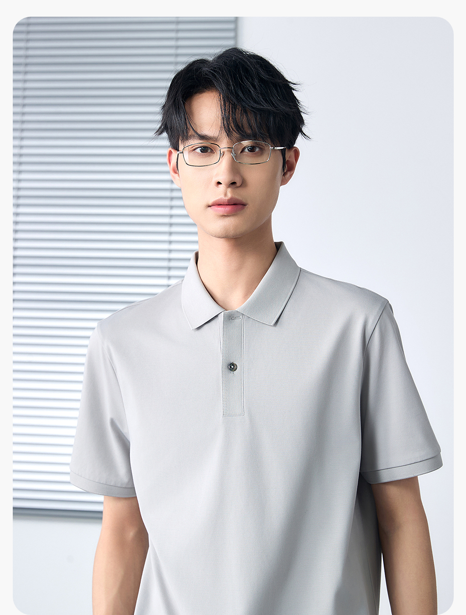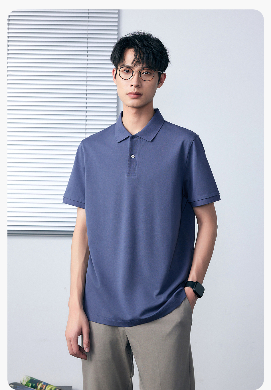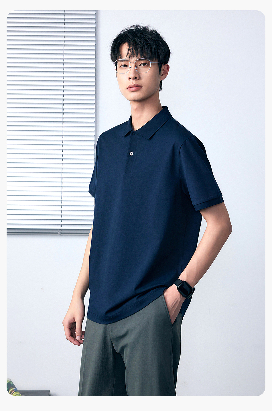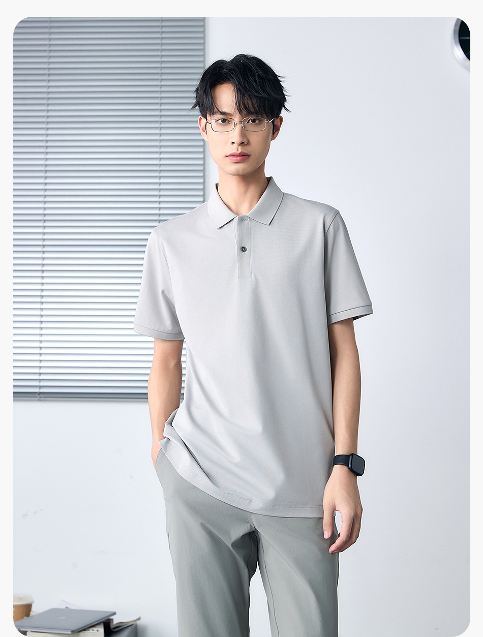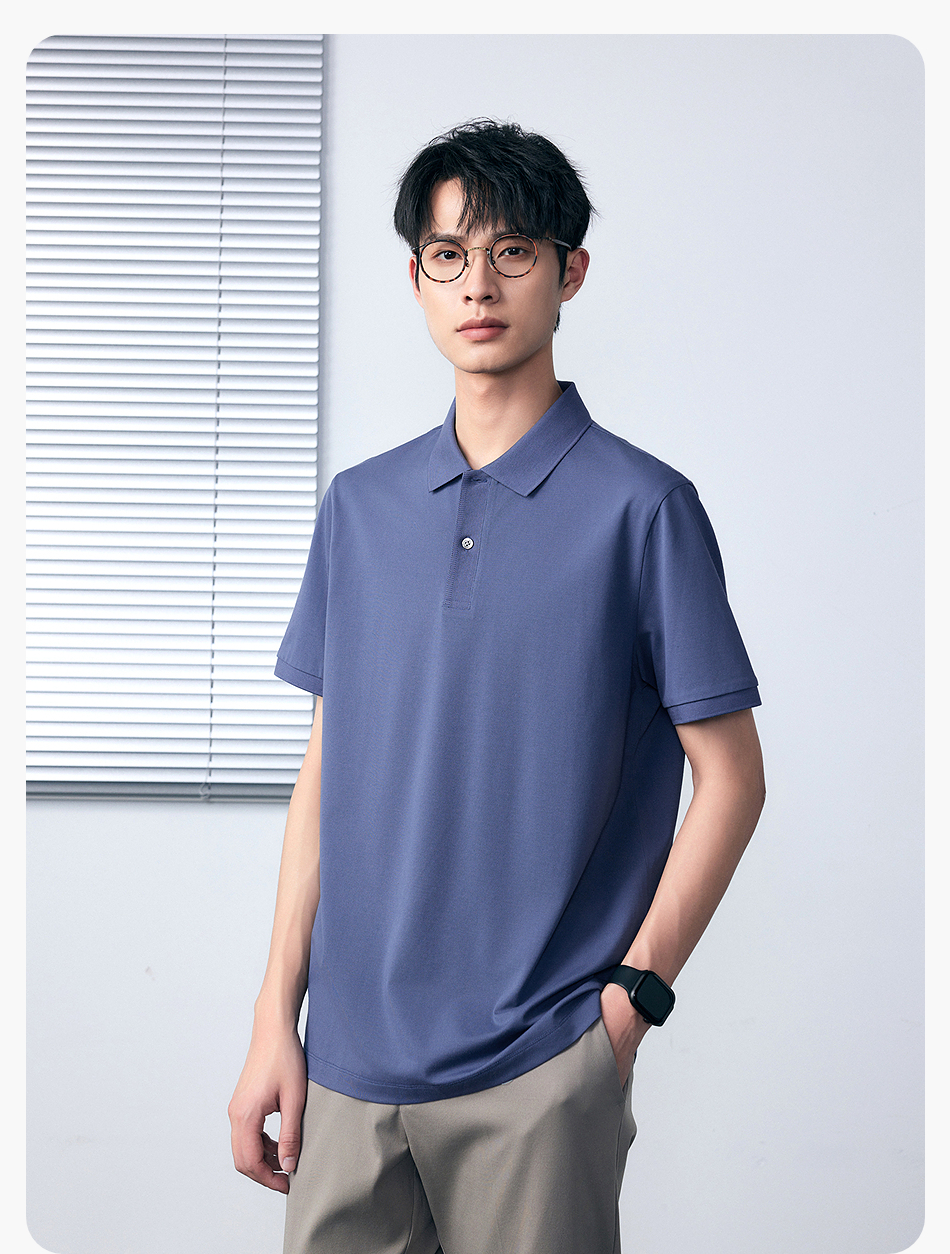 棉仓353802004-桑蚕丝珠地扁机领短袖POLO