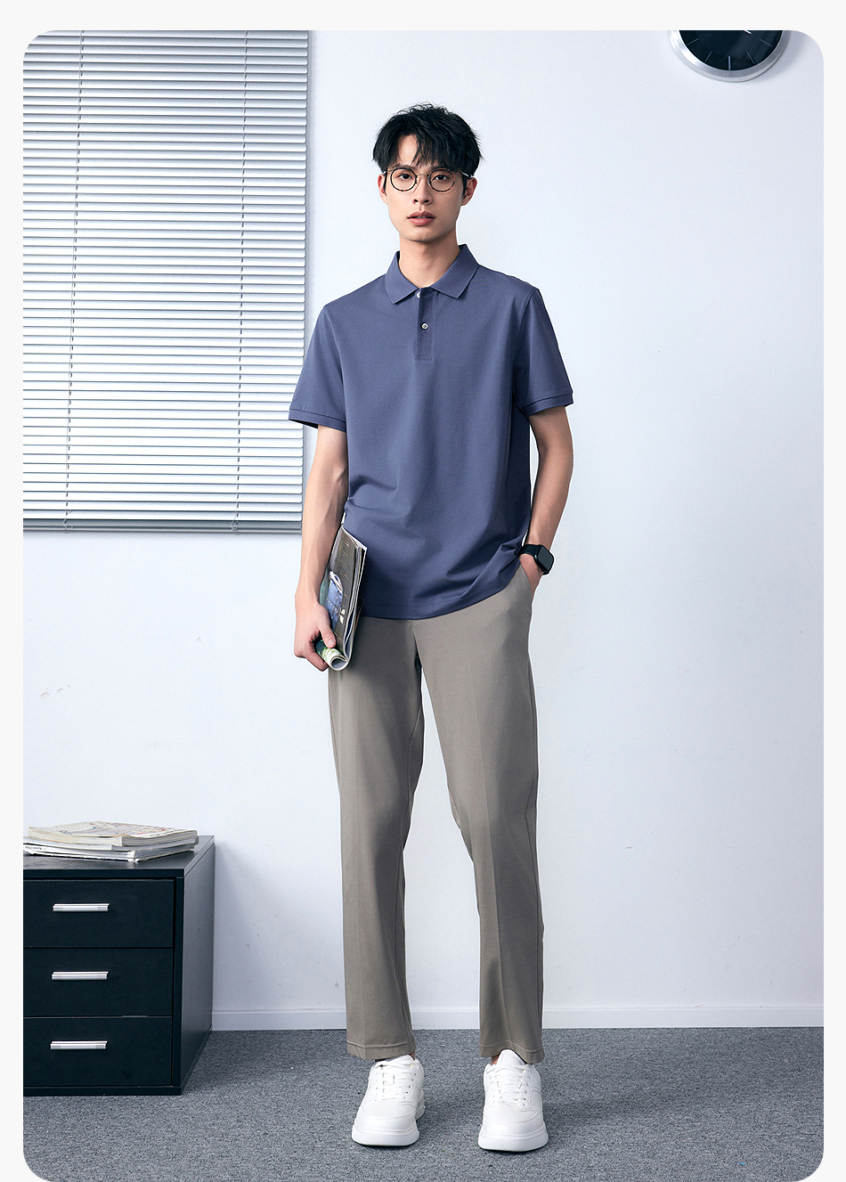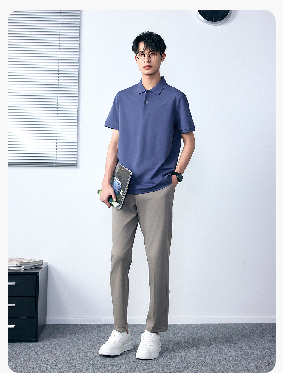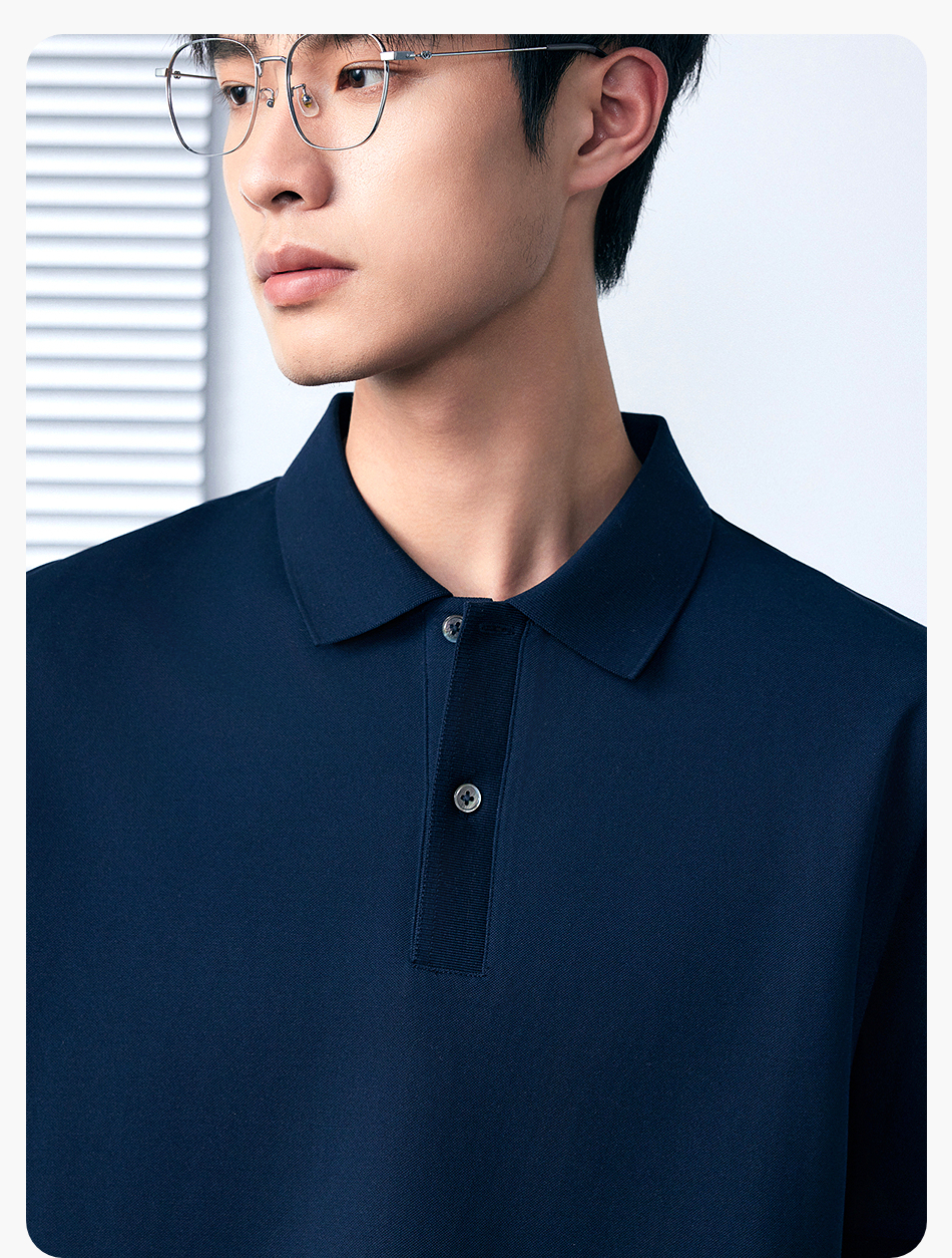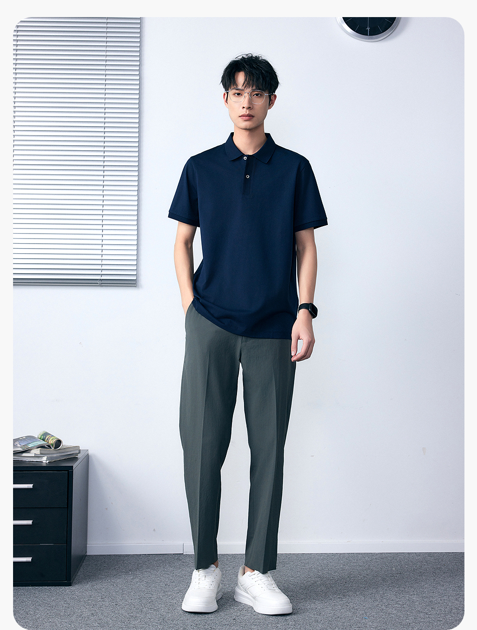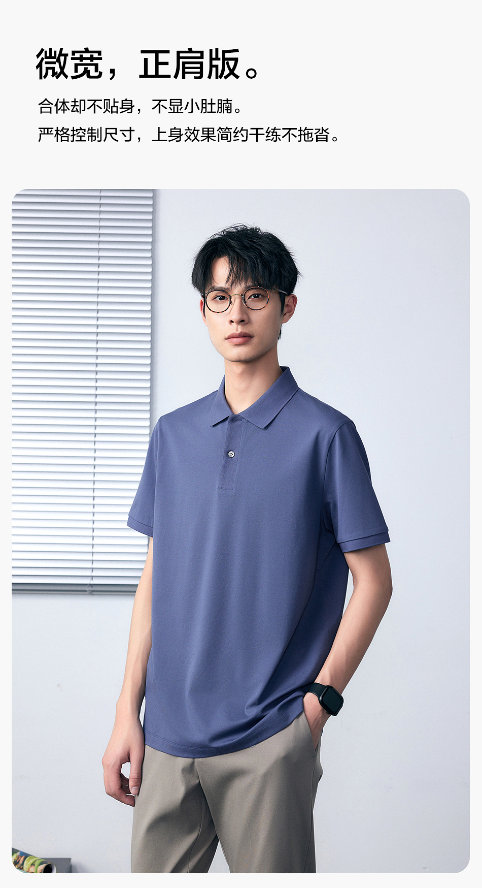 棉仓353802004-桑蚕丝珠地扁机领短袖POLO