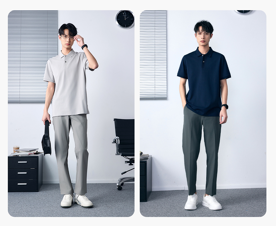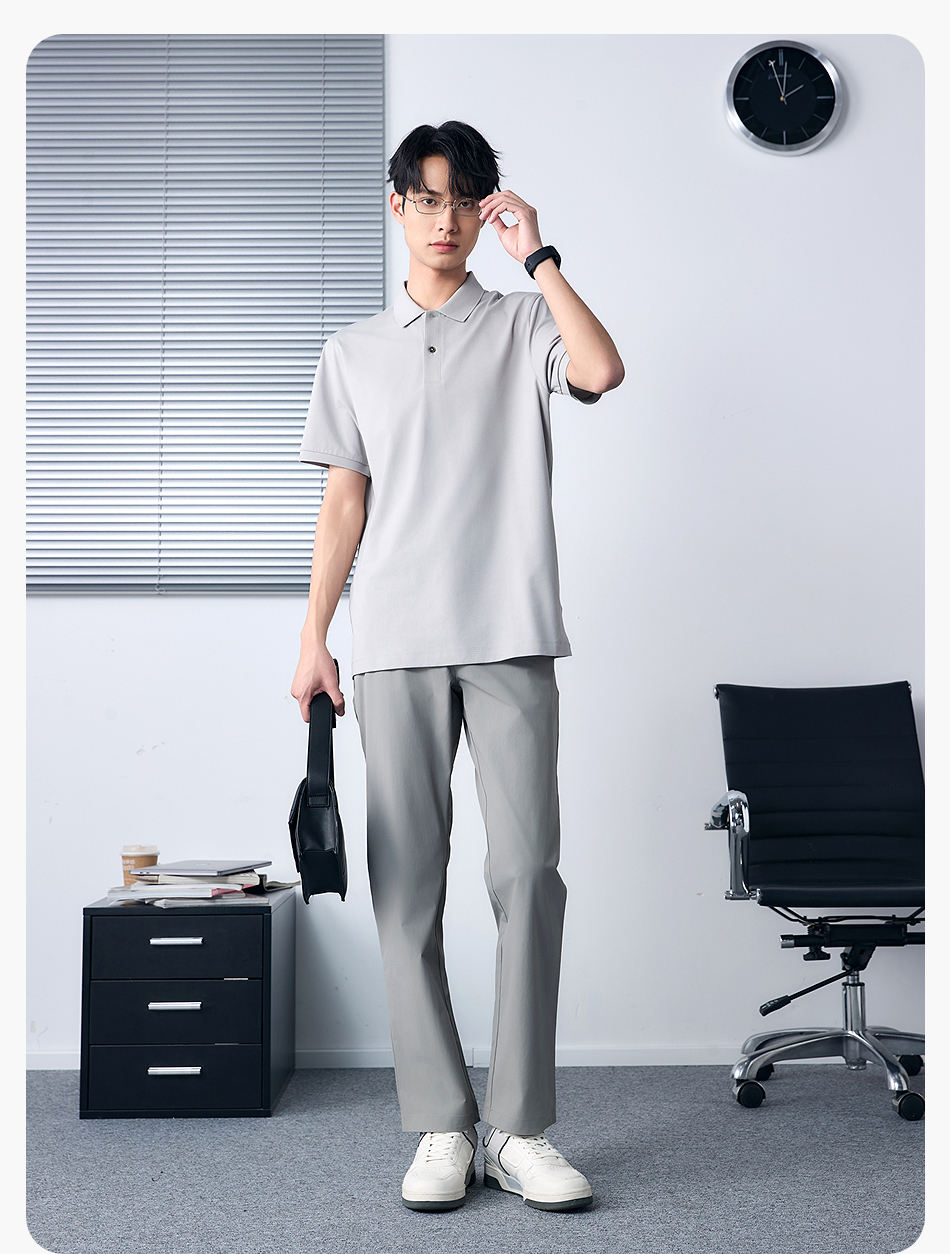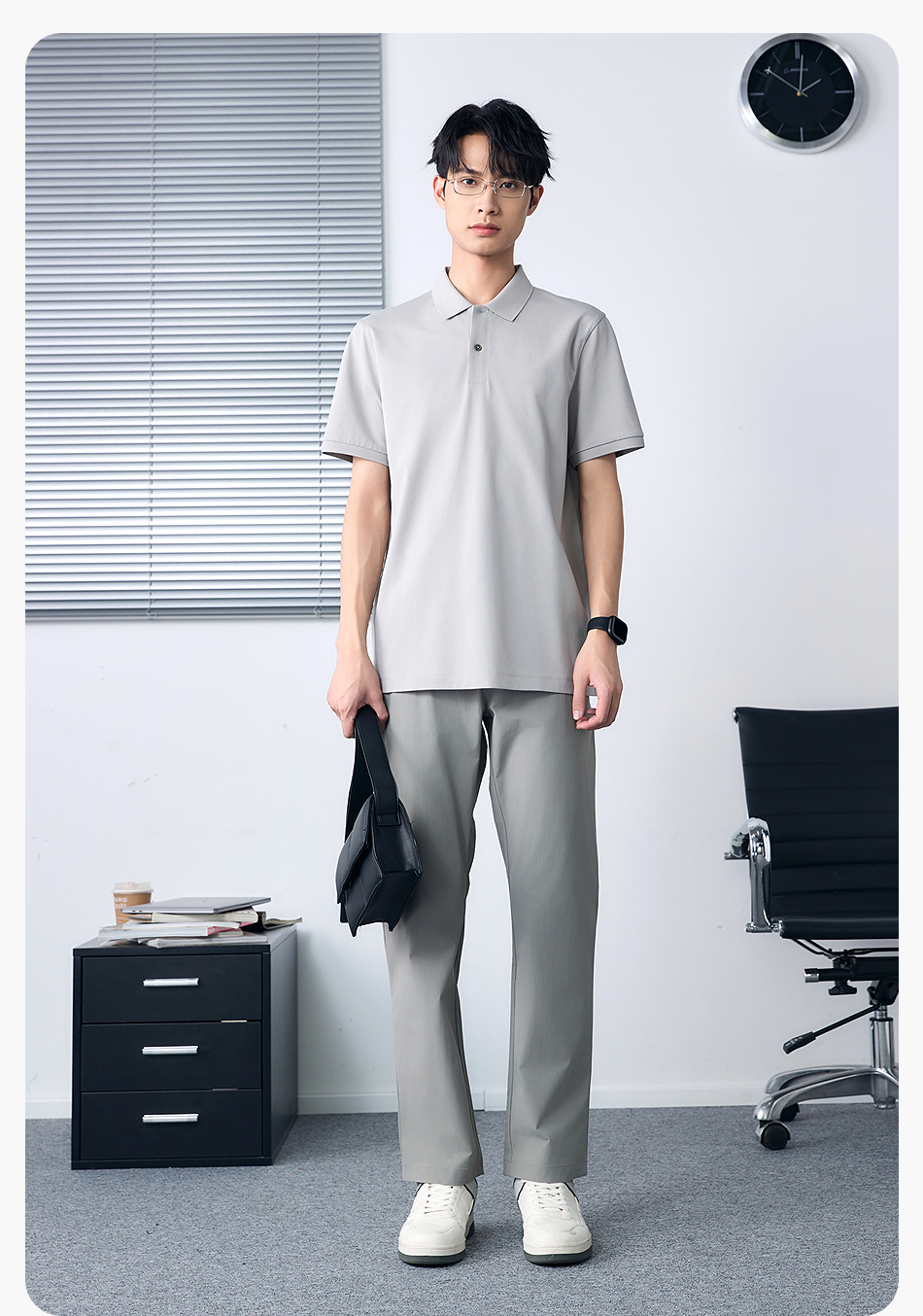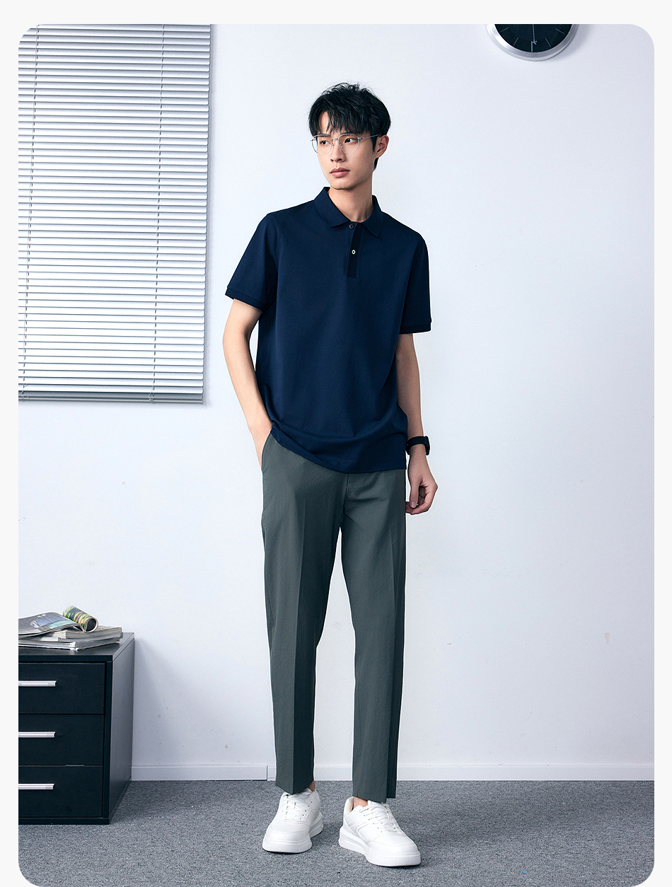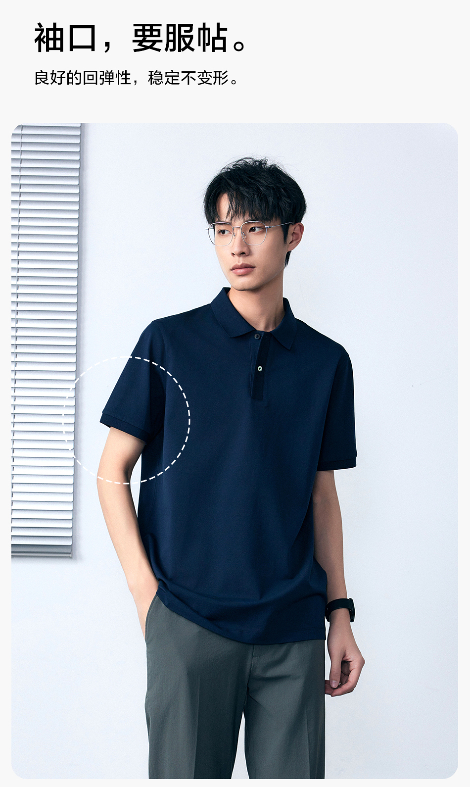 棉仓353802004-桑蚕丝珠地扁机领短袖POLO
