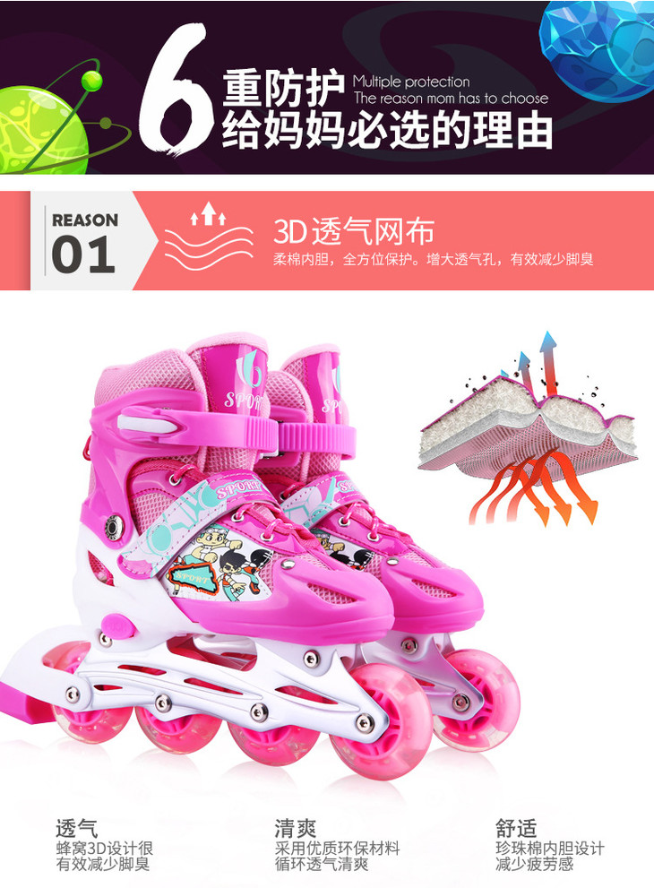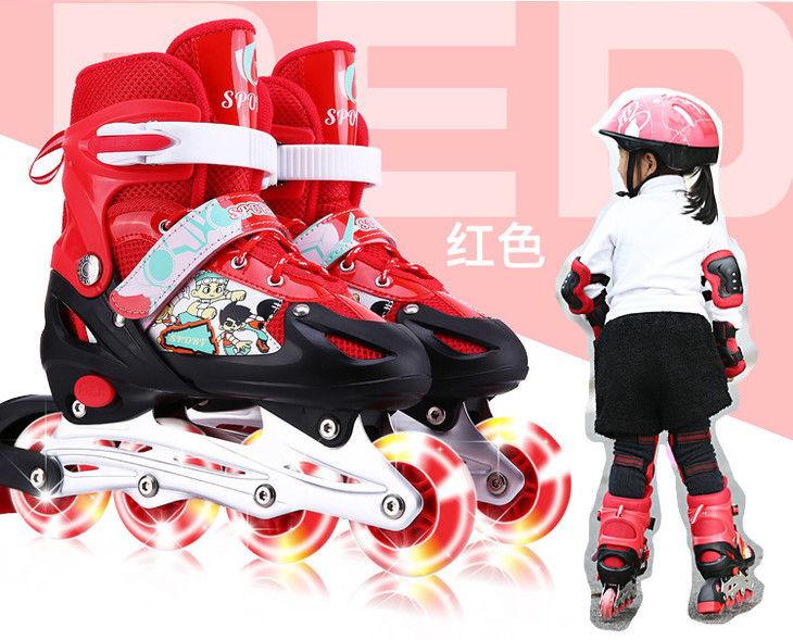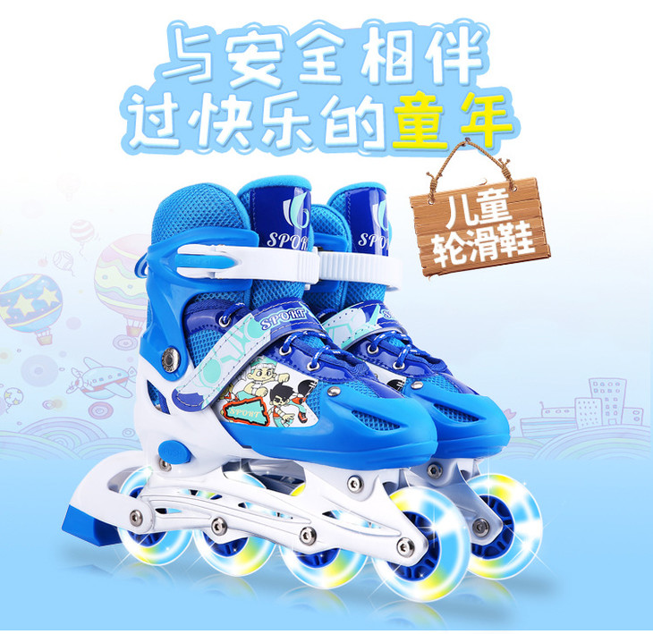 【溜冰鞋】单闪全套轮滑鞋全套旱冰鞋小孩滑冰鞋直排可调