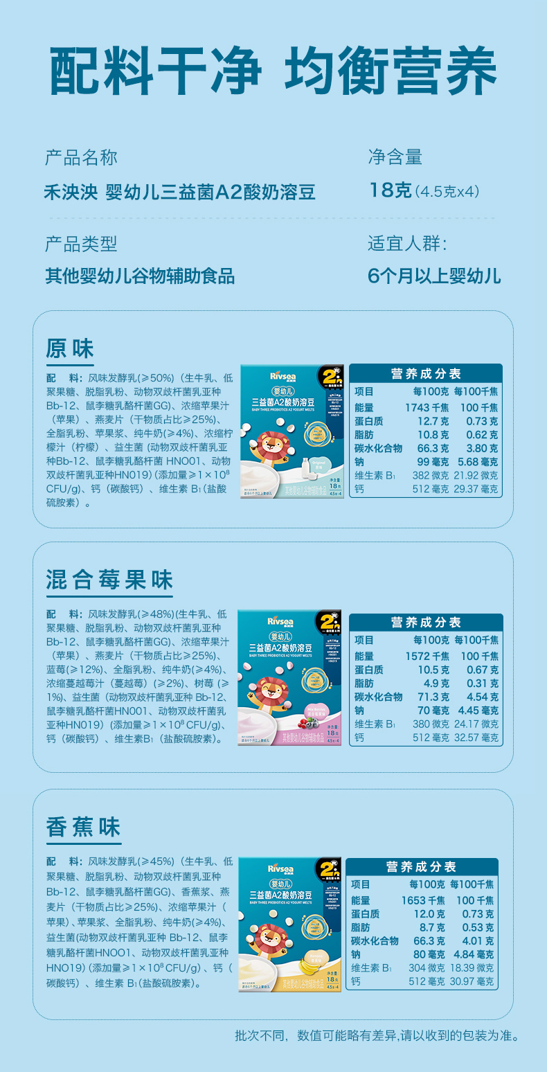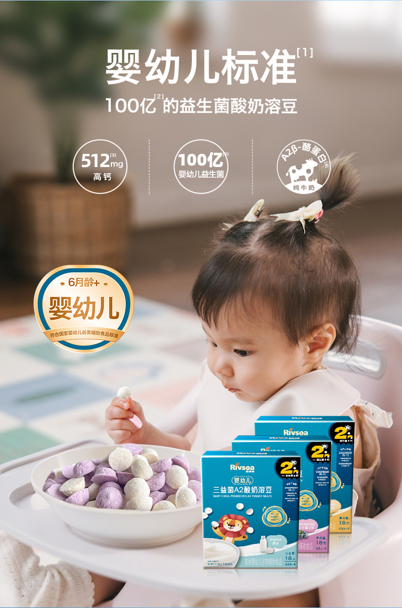 禾泱泱婴幼儿三益菌A2酸奶溶豆-(多种口味)18g(4.5g*4)