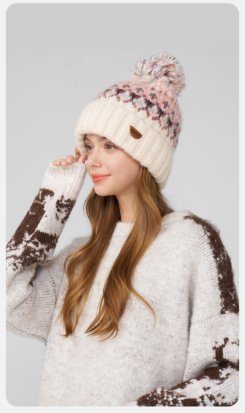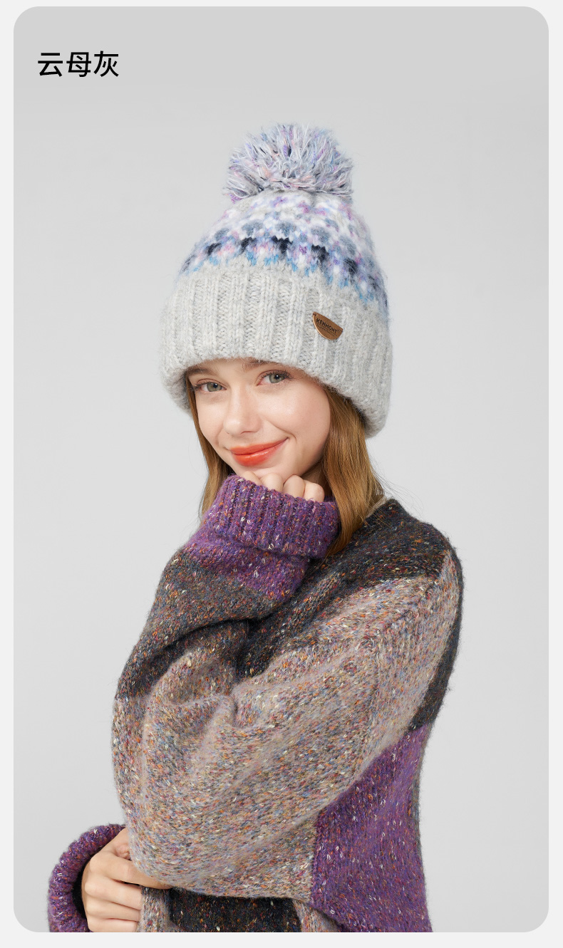 Kenmont卡蒙多巴胺帽子针织帽冬加厚保暖可爱毛球护耳帽防寒保暖毛线帽女