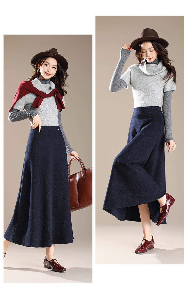 QYM  M269-Y羊毛呢A字裙高腰厚款半身裙遮肚裙 商品图2