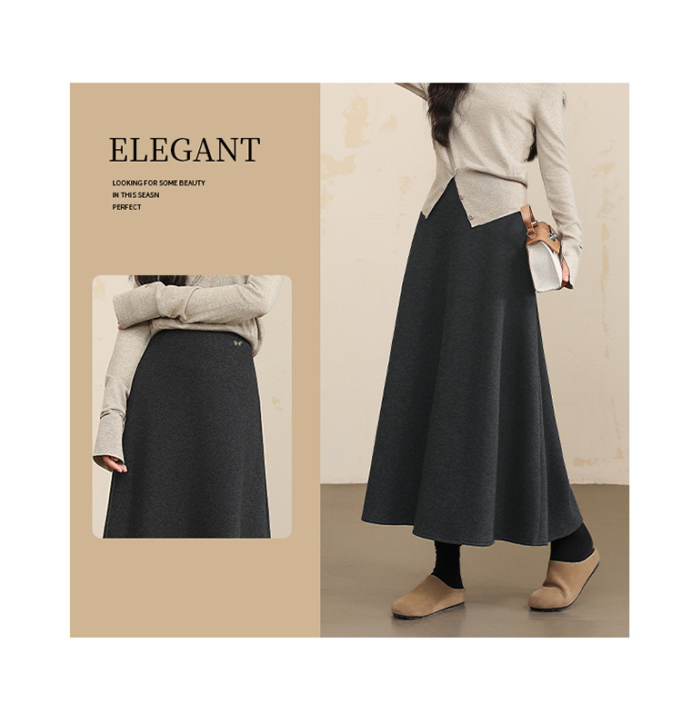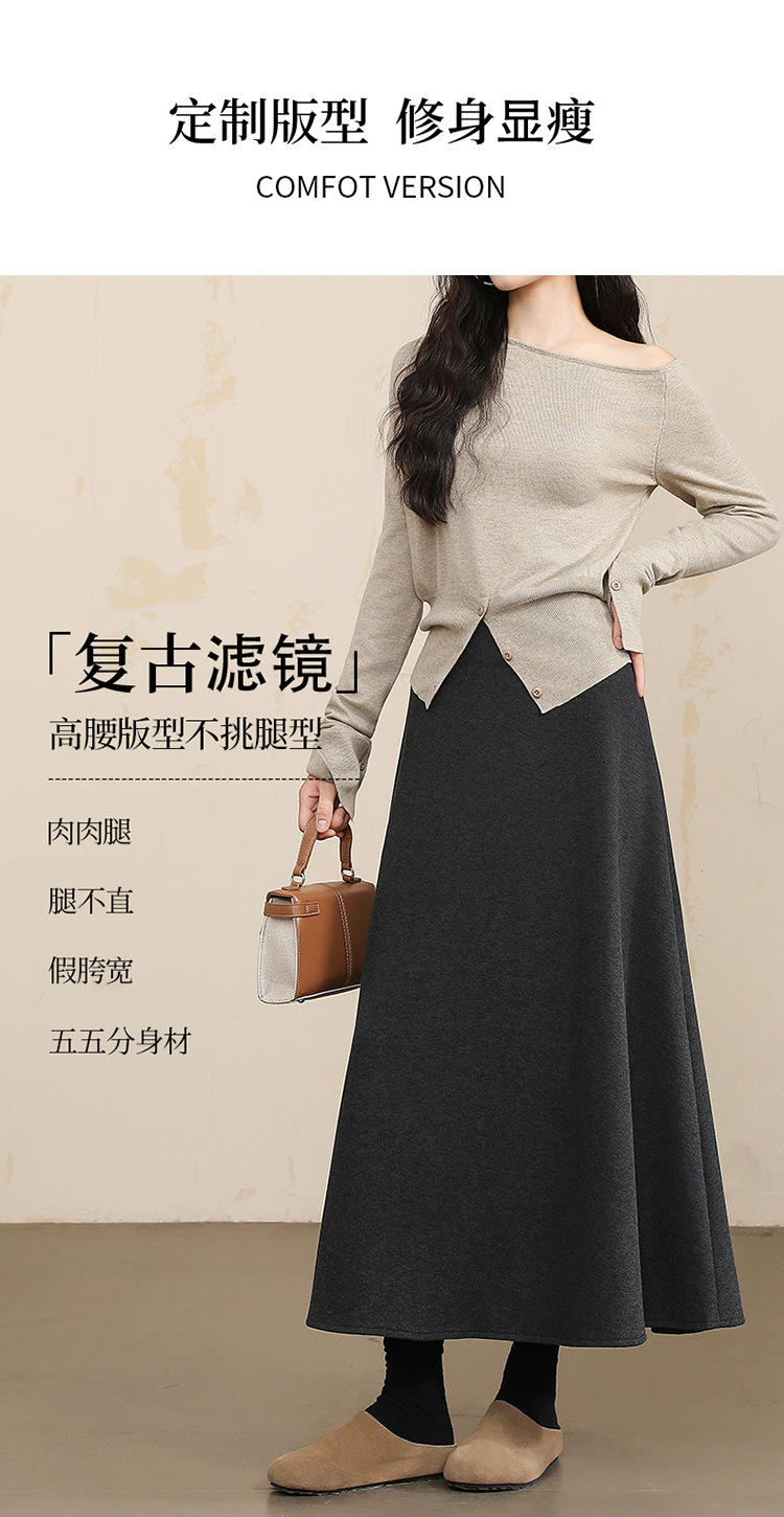 QYM  M269-Y羊毛呢A字裙高腰厚款半身裙遮肚裙 商品图1