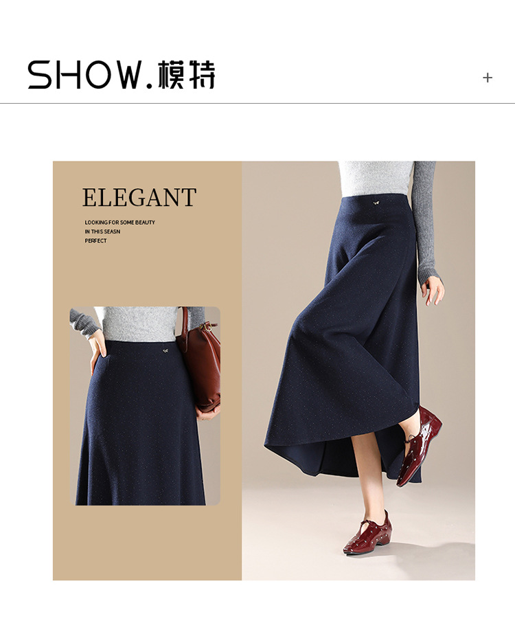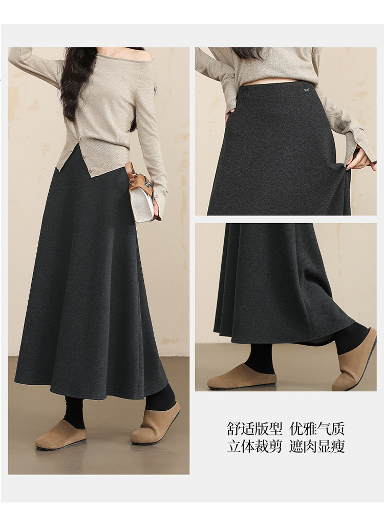 QYM  M269-Y羊毛呢A字裙高腰厚款半身裙遮肚裙 商品图4