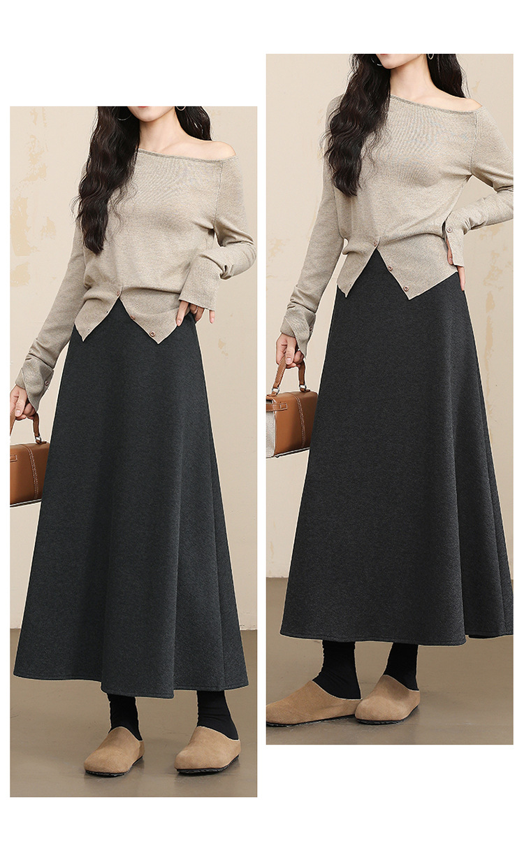 QYM  M269-Y羊毛呢A字裙高腰厚款半身裙遮肚裙 商品图0