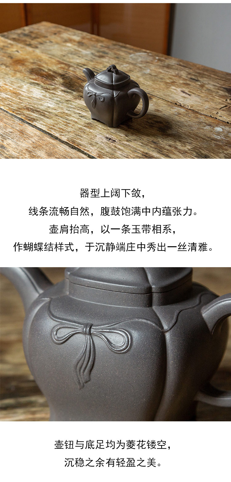 茶香记 许冰 天青泥玉带凤蝶全手紫砂壶 气质拙雅 端庄秀丽 刚柔并济