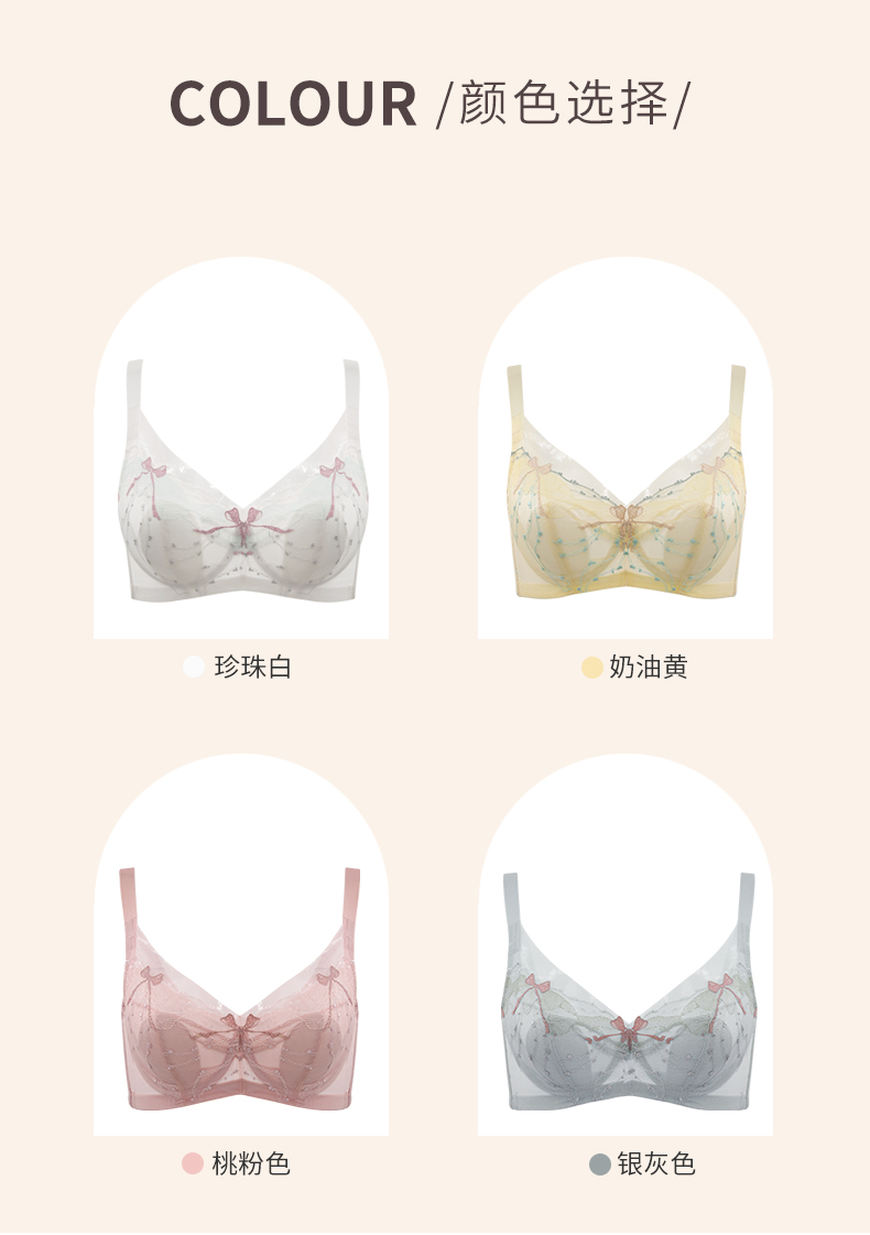 贝佳人夏季新全罩薄棉杯亲肤内衣蕾丝双肩带美背胸罩收副乳外扩BW96804