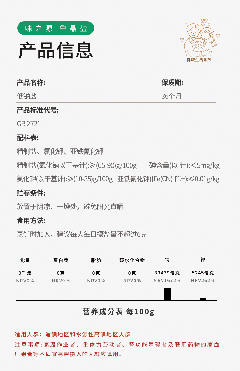 鲁晶低钠盐食用盐未加碘400g*5袋加碘无碘洁净矿盐