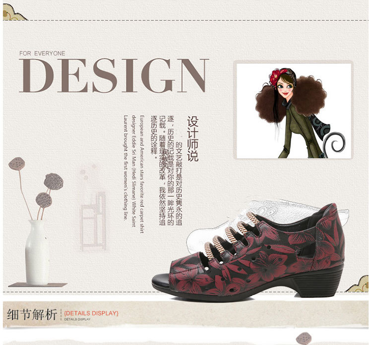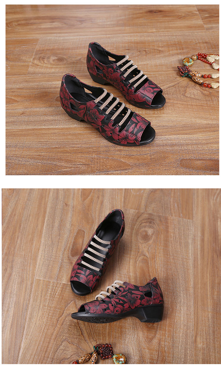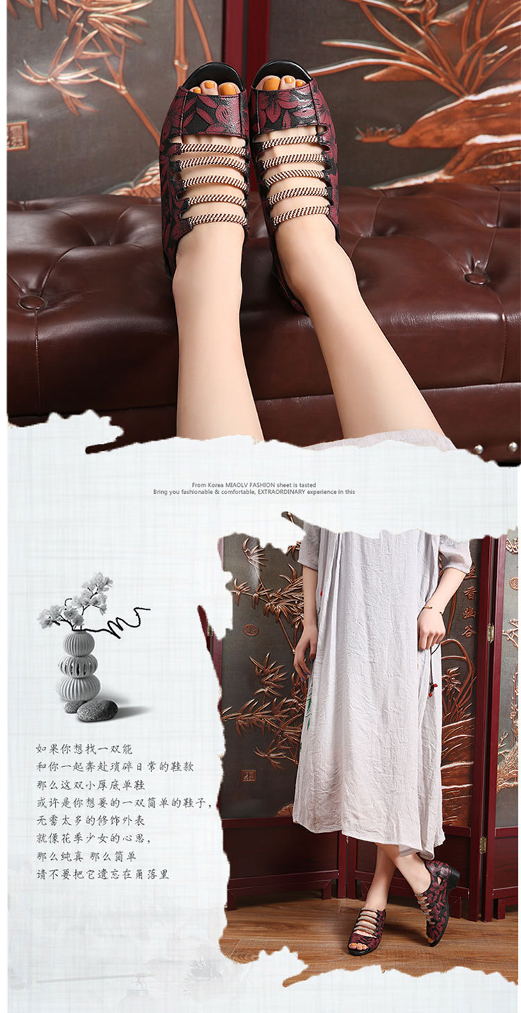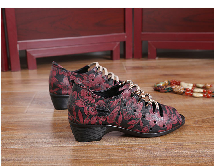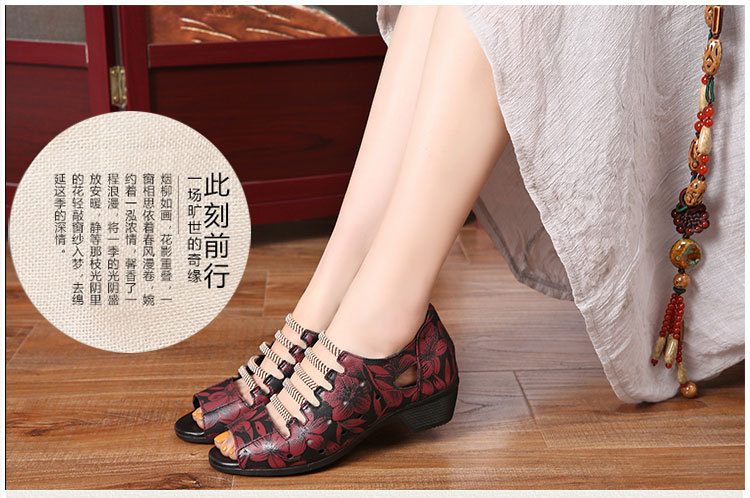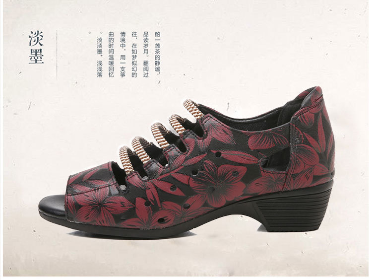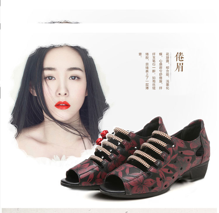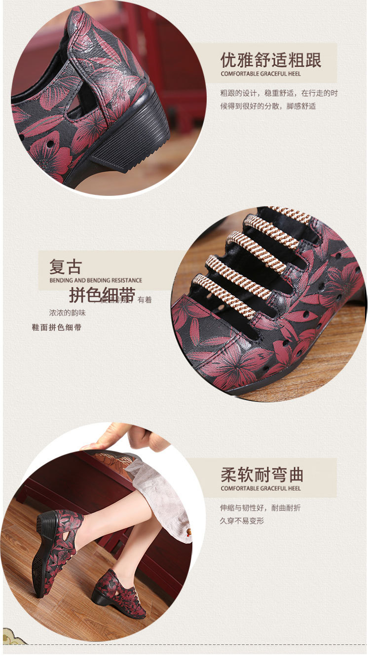 DD-民族风粗中跟冲孔印花鱼嘴套脚凉鞋