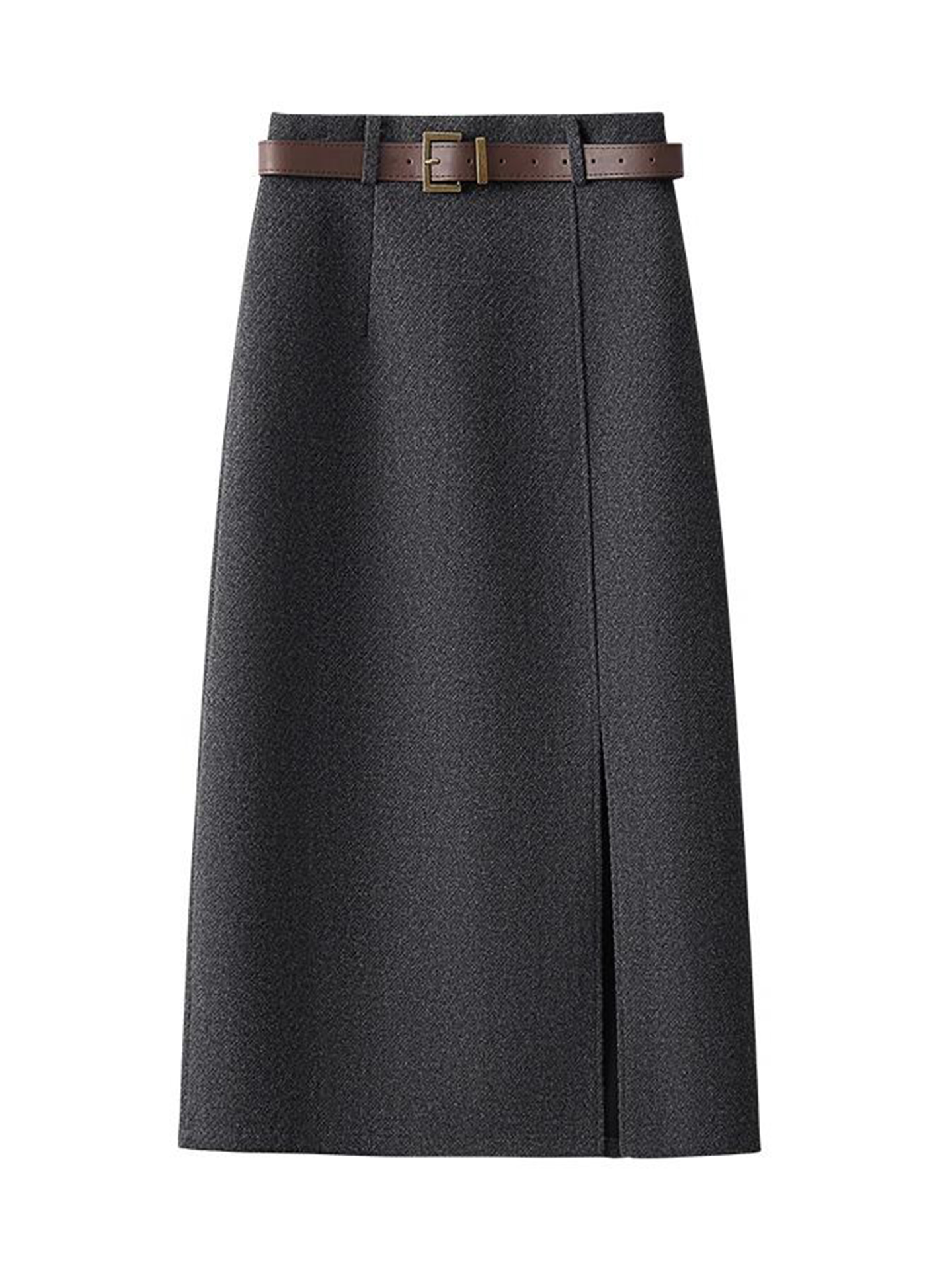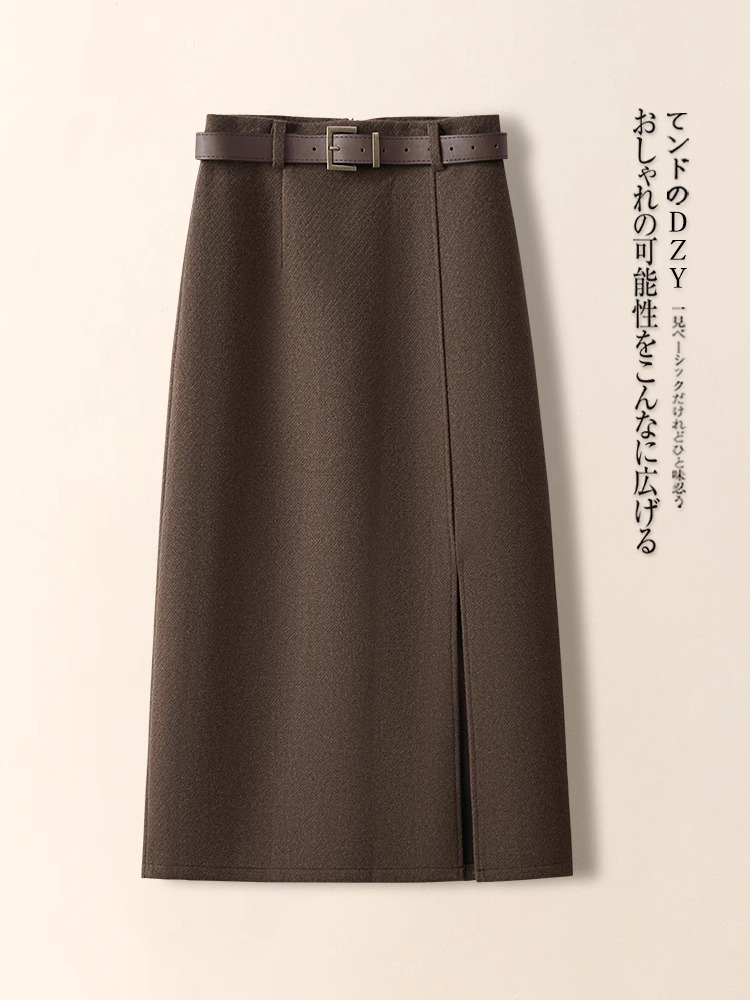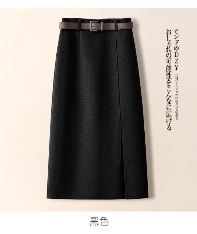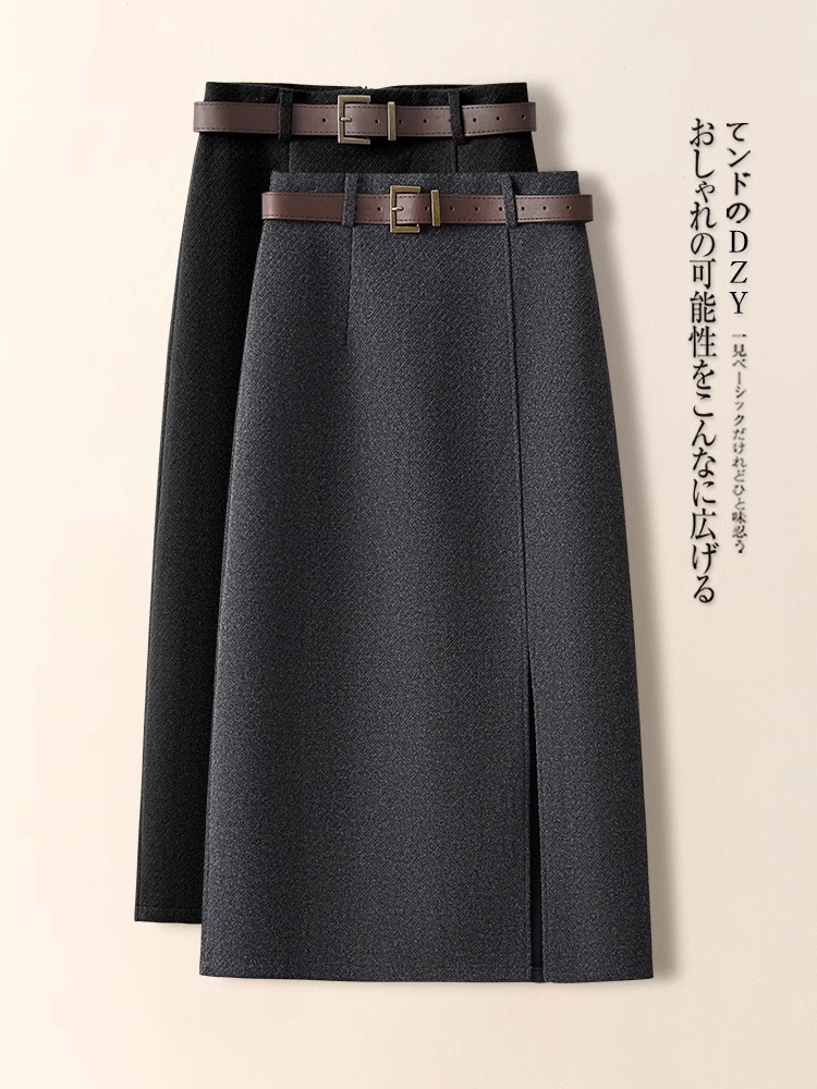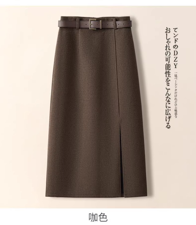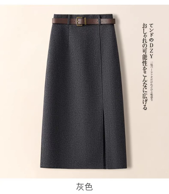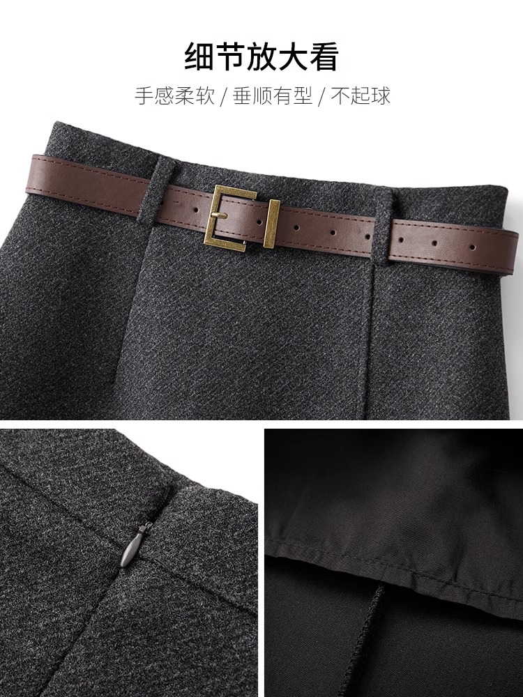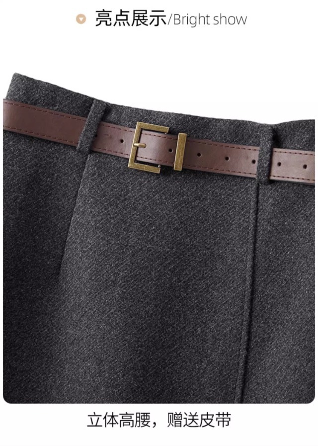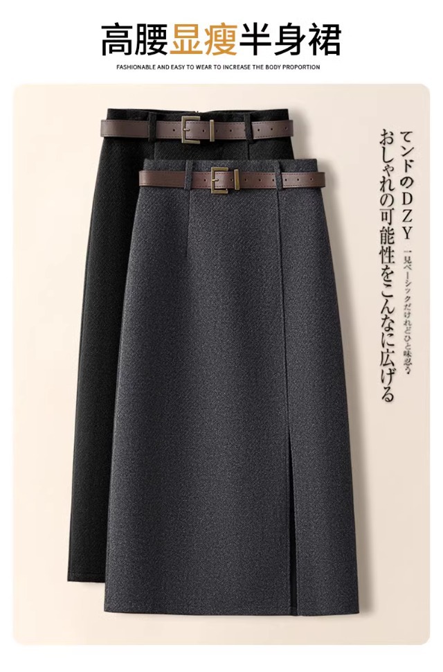赠送皮带【手感柔软垂顺有型❗️开叉设计显瘦显气质】毛呢休闲半身裙女秋冬季2025新款气质a字裙垂感百搭直筒包臀裙子。jb