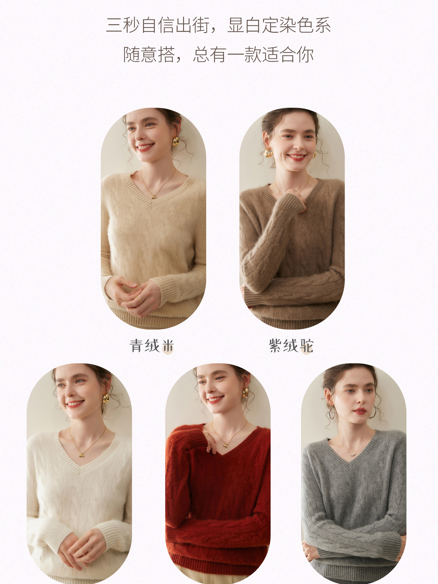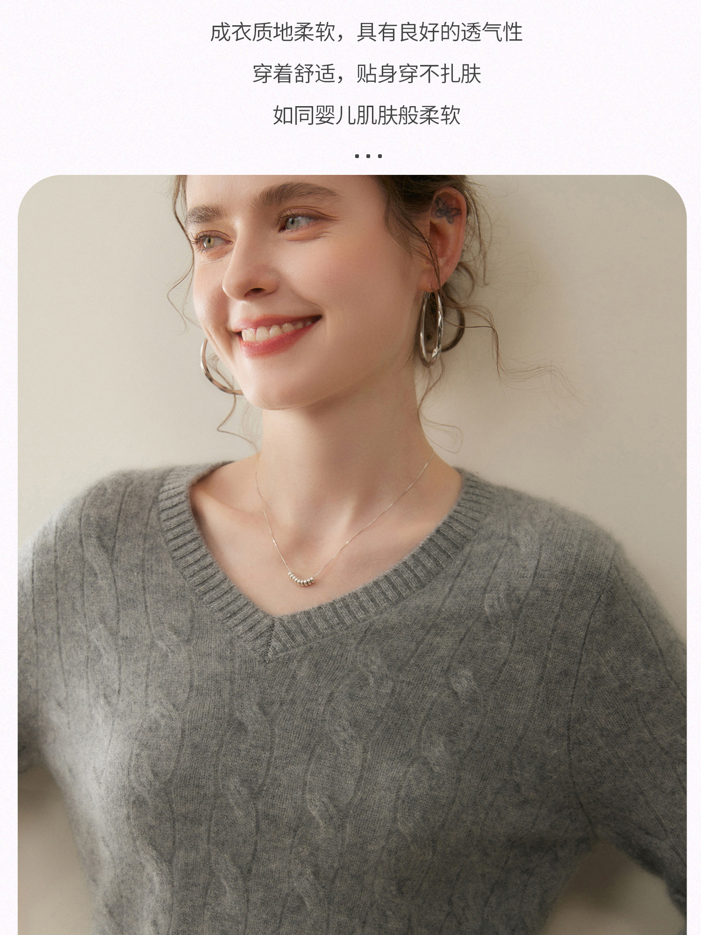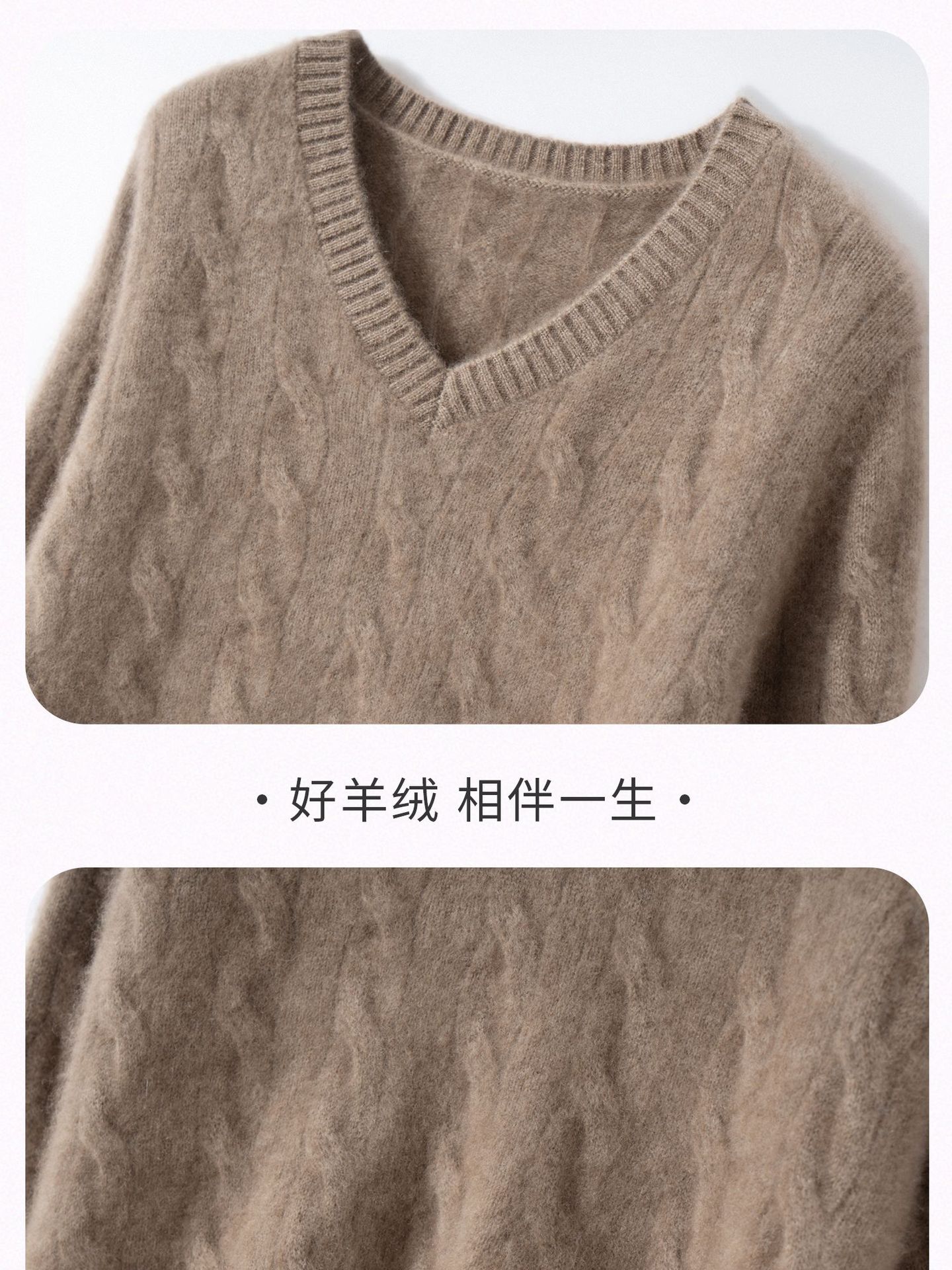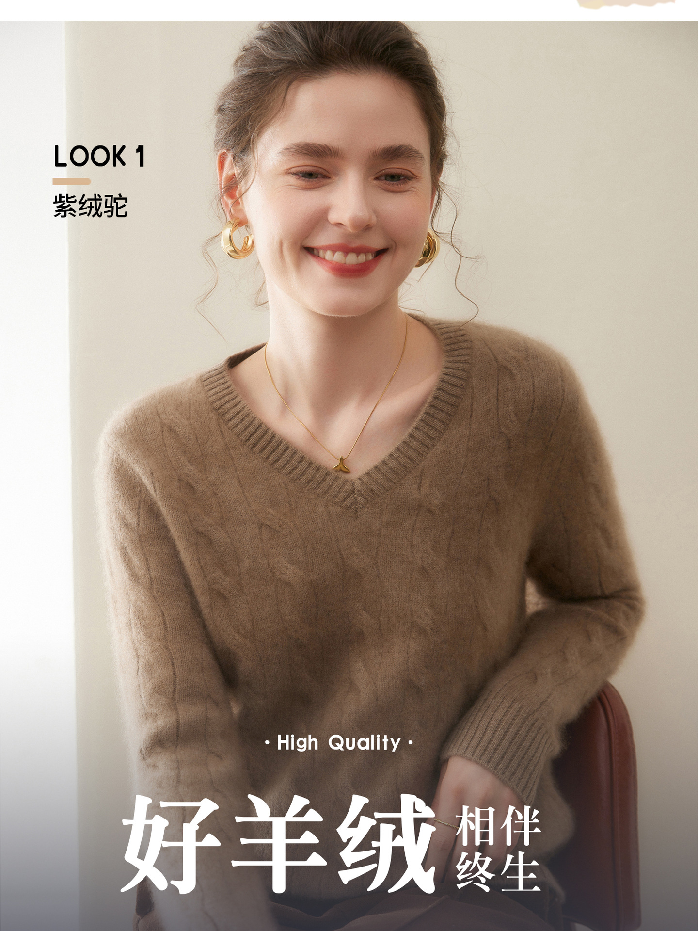 「高货rig」全新升级【铂金会员404/天猫539/差价135】(04640)洛诗琳老钱风双股加厚羊绒衫2025秋冬气质V领显瘦针织毛衣