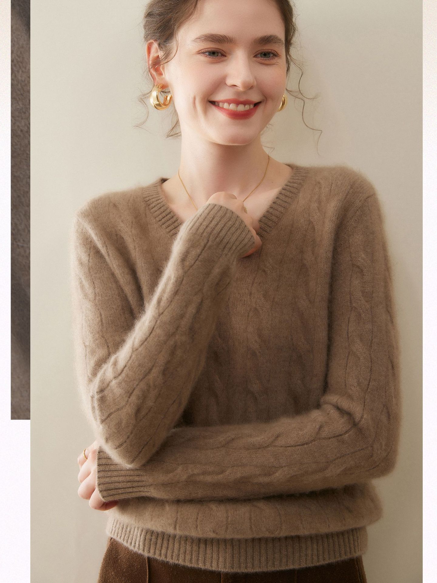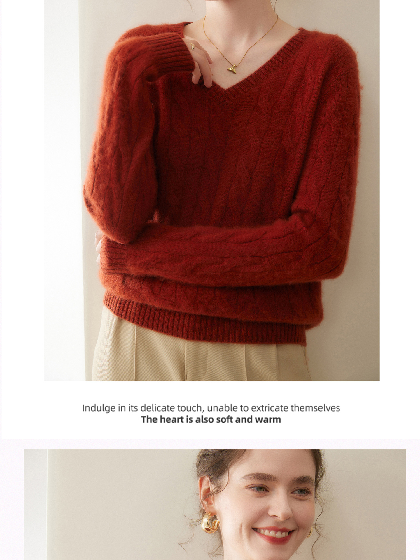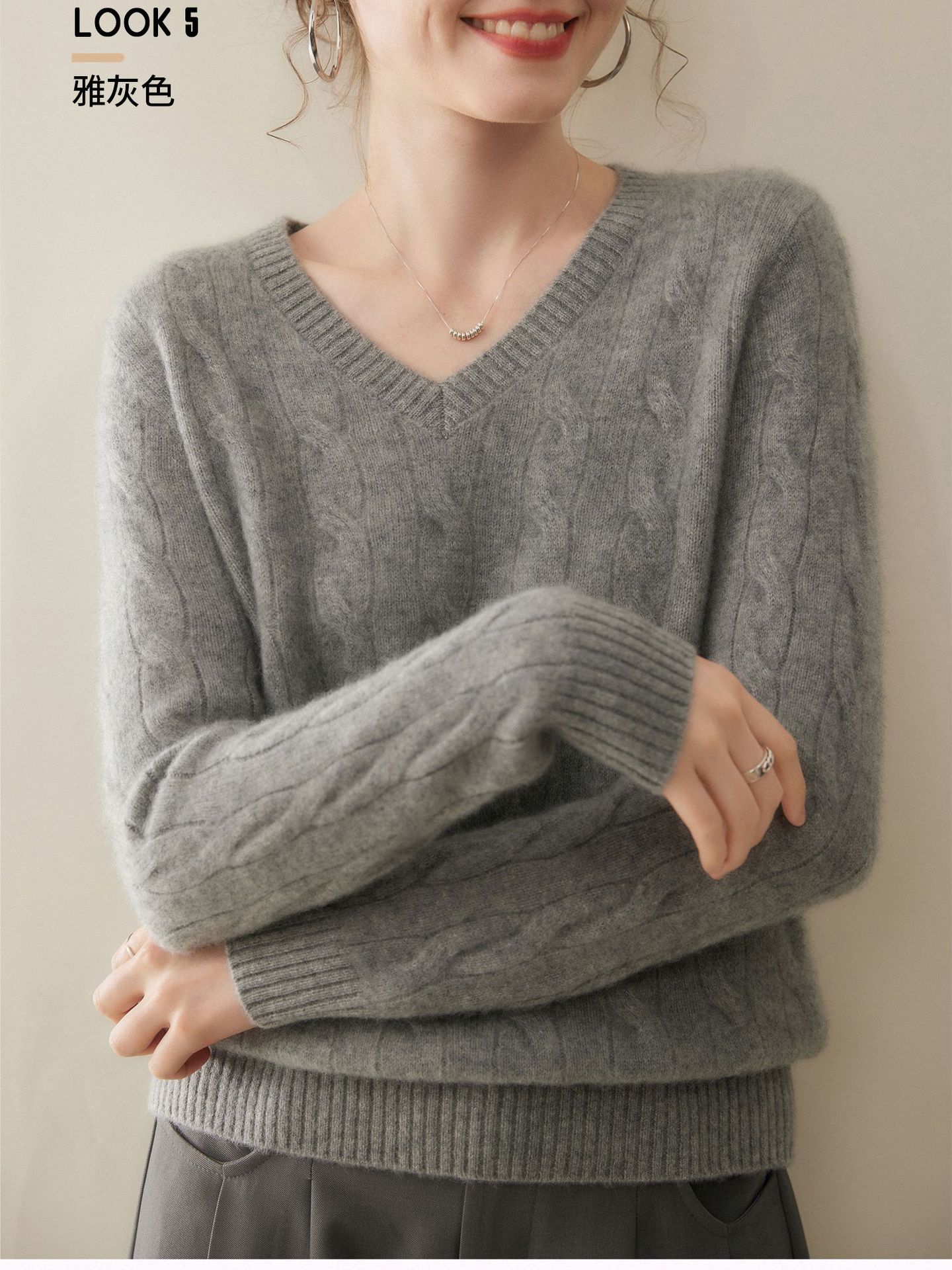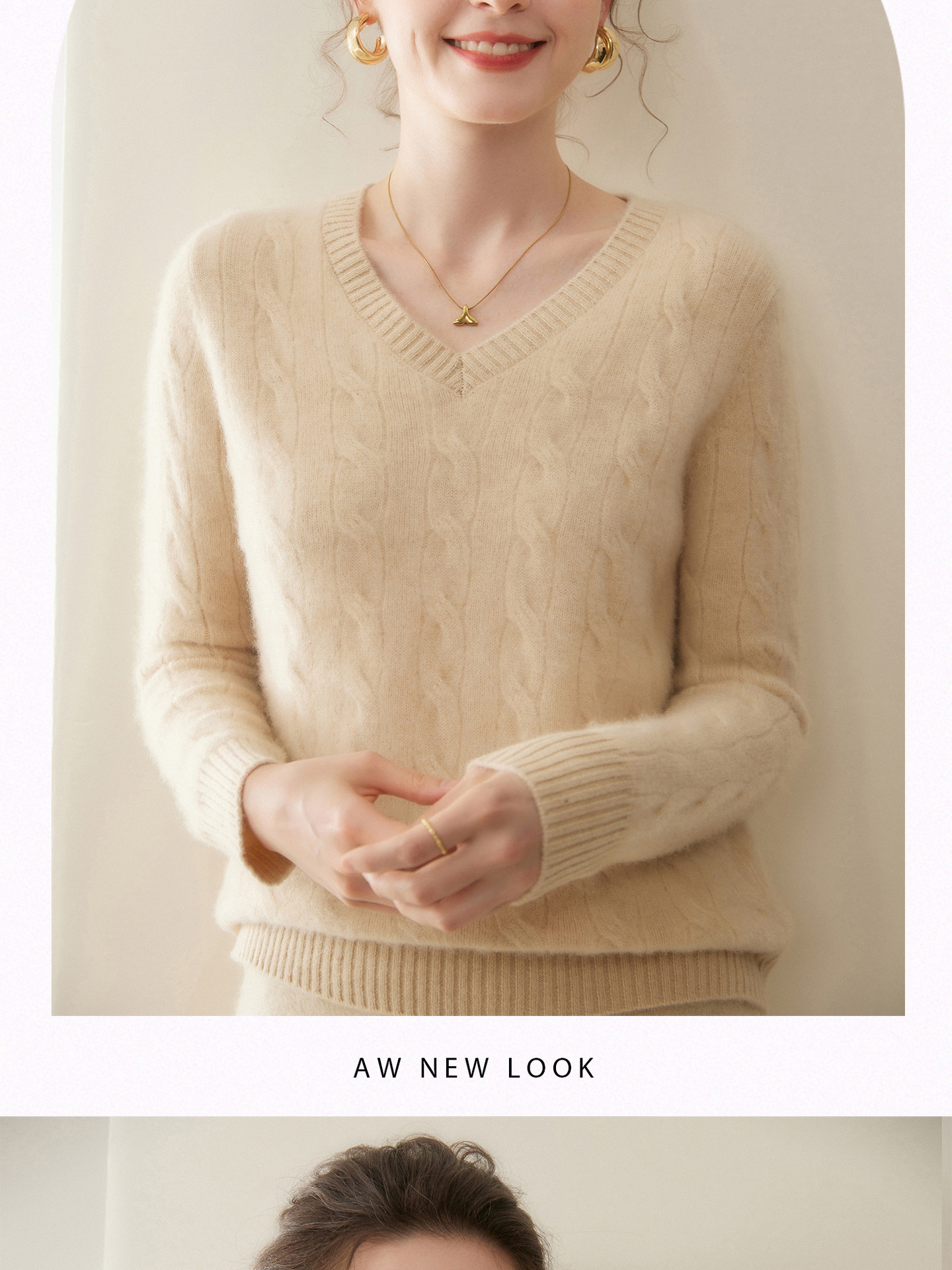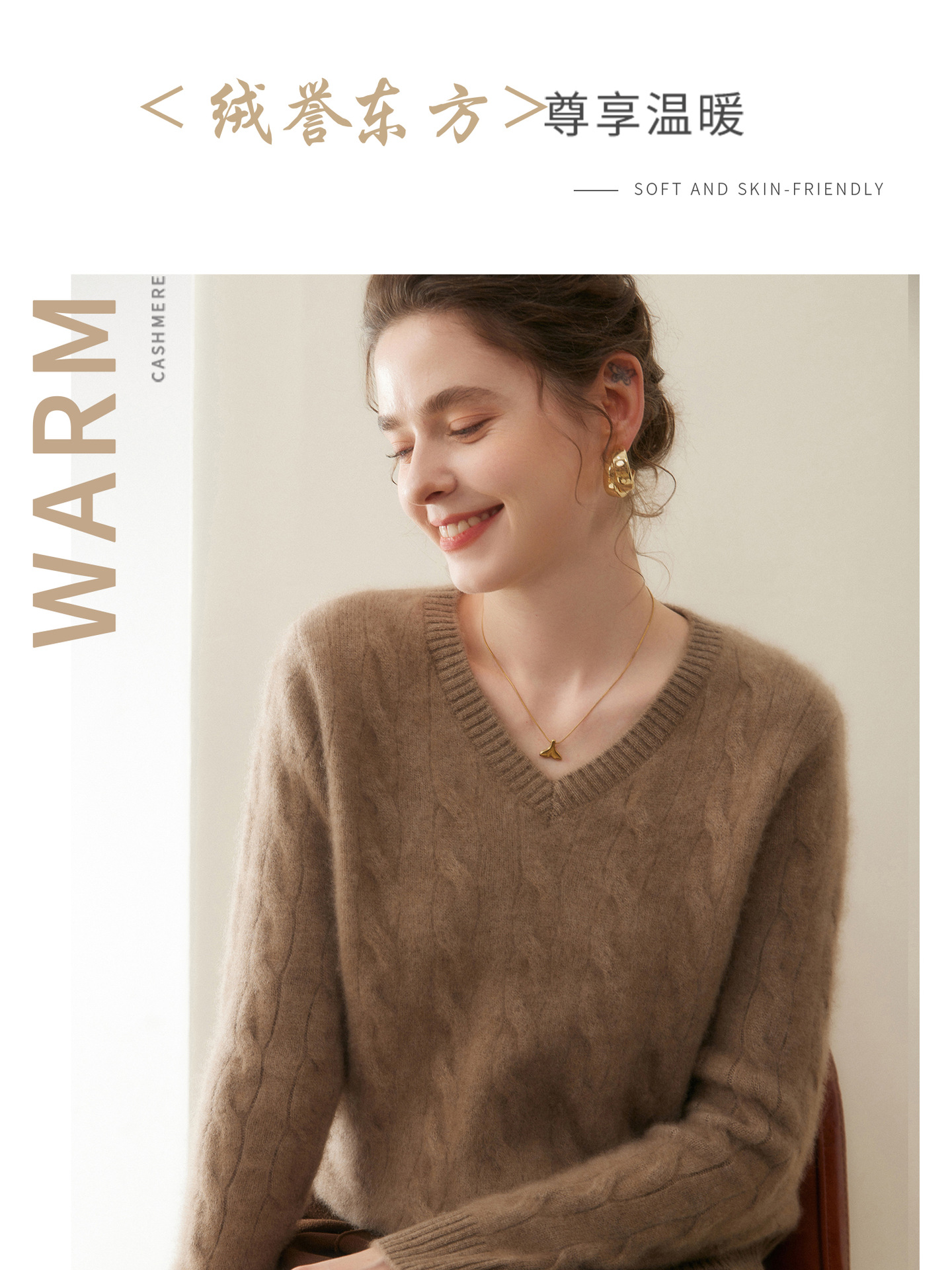 「高货rig」全新升级【铂金会员404/天猫539/差价135】(04640)洛诗琳老钱风双股加厚羊绒衫2025秋冬气质V领显瘦针织毛衣