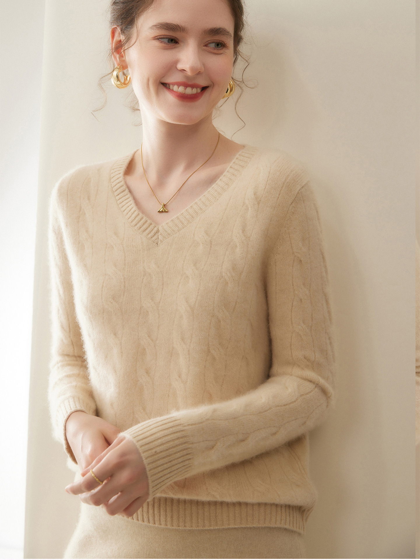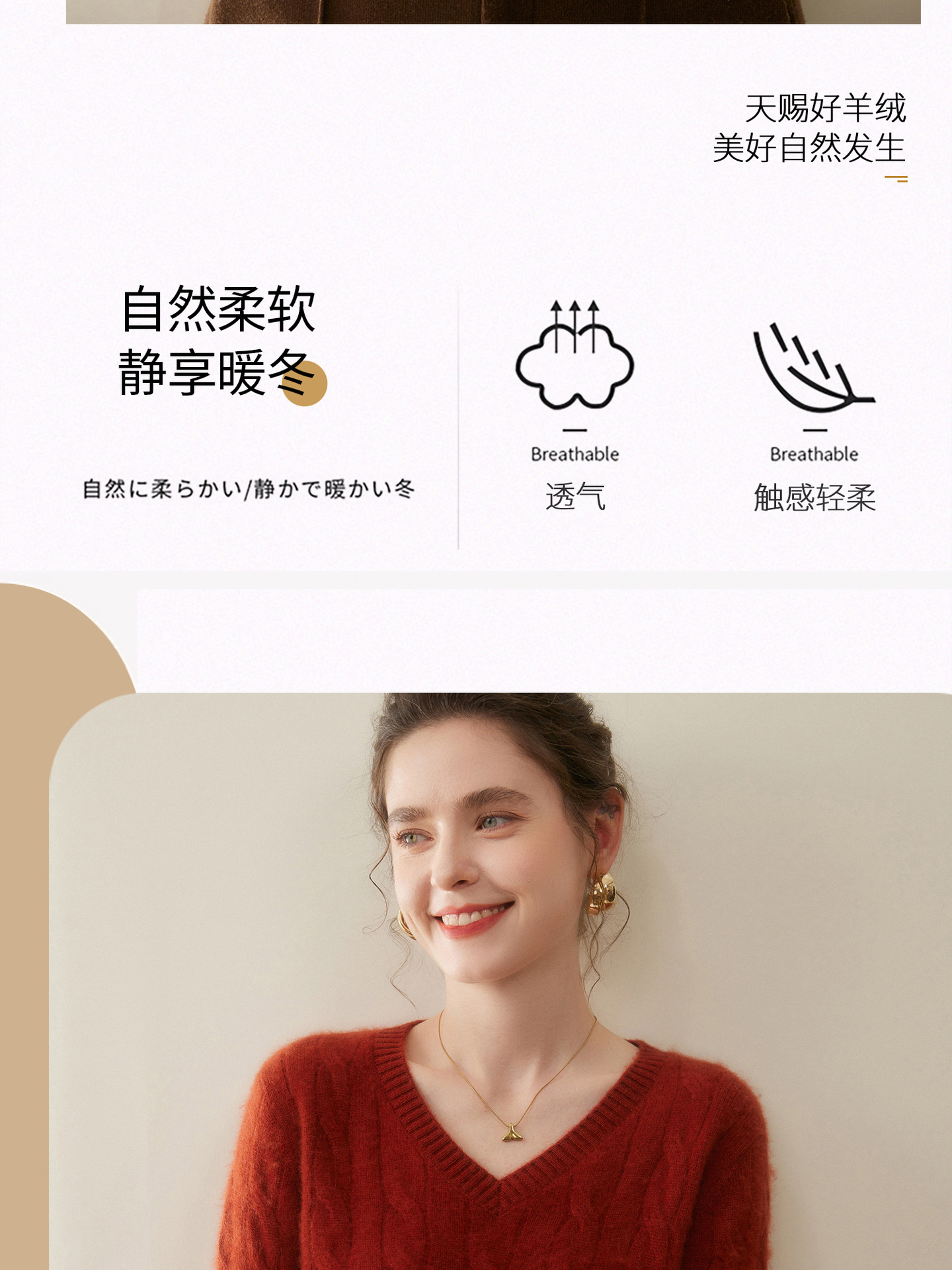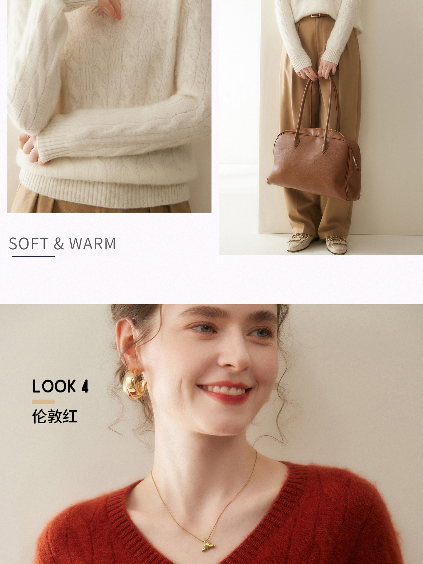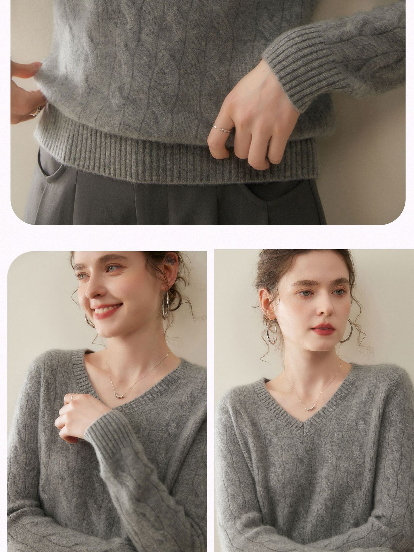 「高货rig」全新升级【铂金会员404/天猫539/差价135】(04640)洛诗琳老钱风双股加厚羊绒衫2025秋冬气质V领显瘦针织毛衣