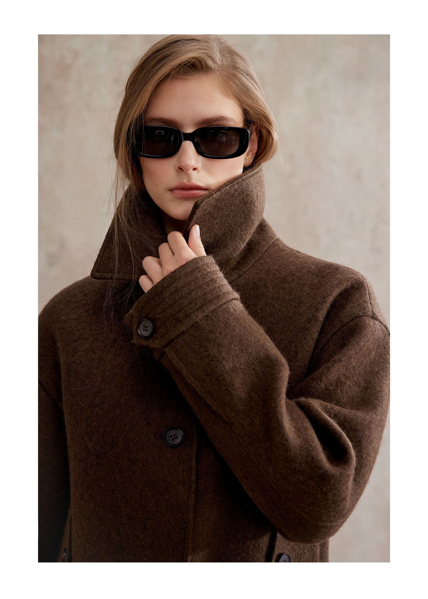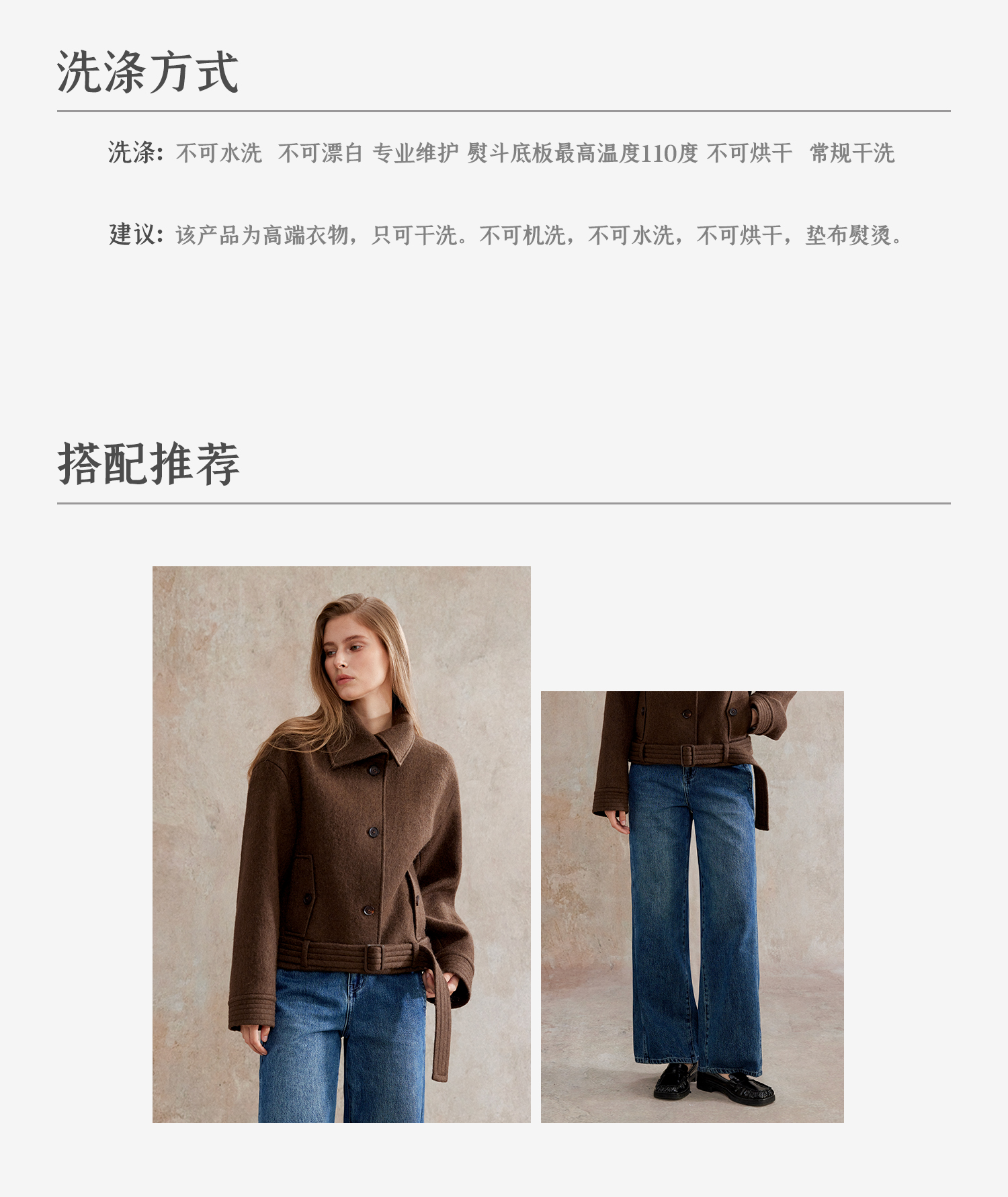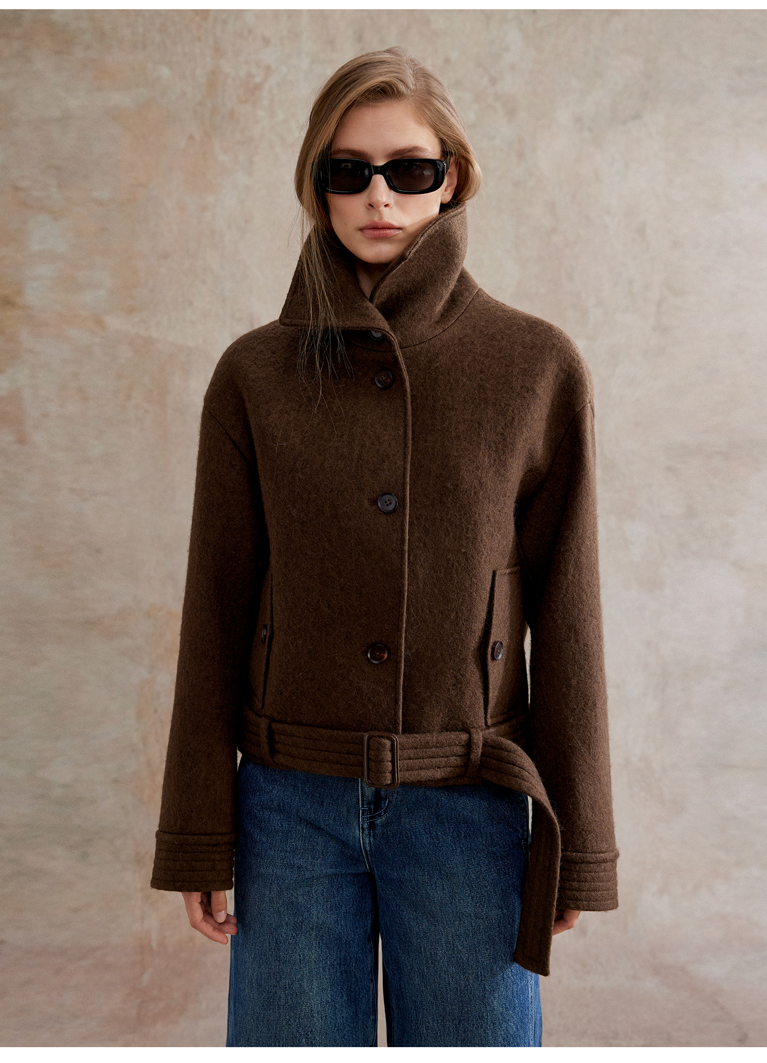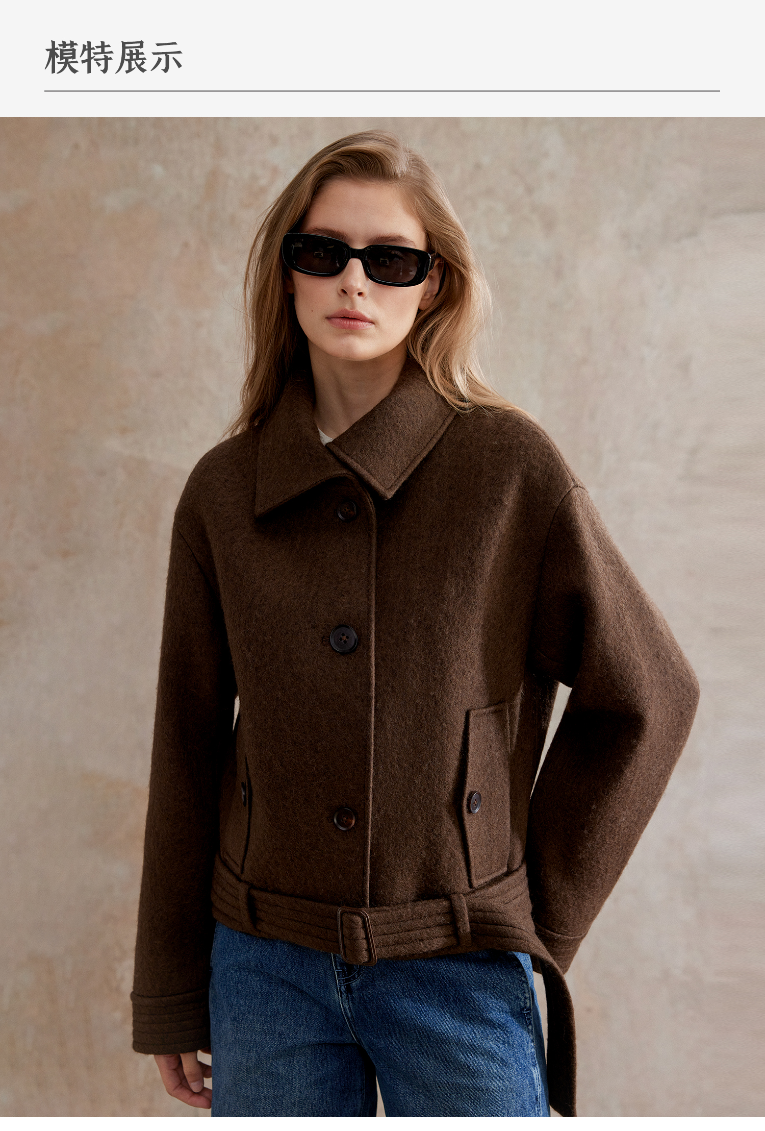 巴恩风翻领两穿羊毛腰带复古短外套WT2504068