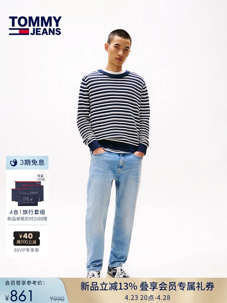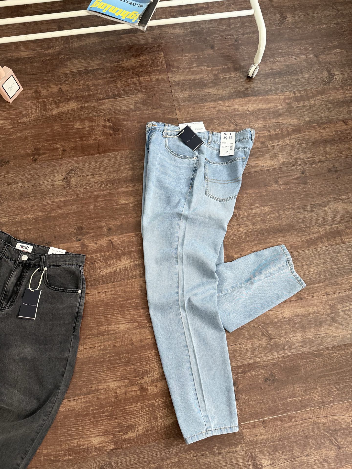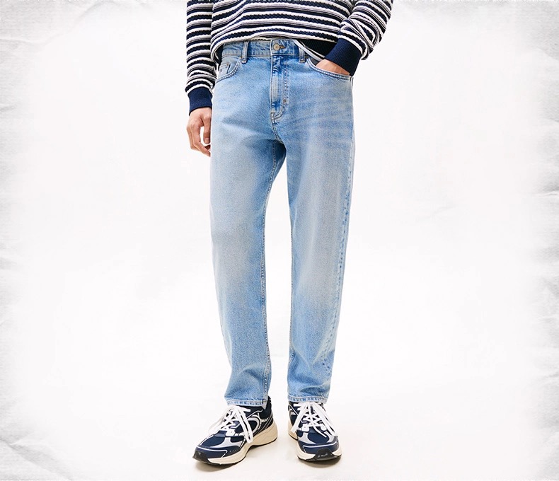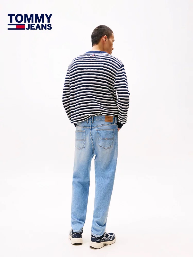 Tommy25新款男装休闲复古磨白浅蓝色水洗宽松锥形薄款牛仔裤20979