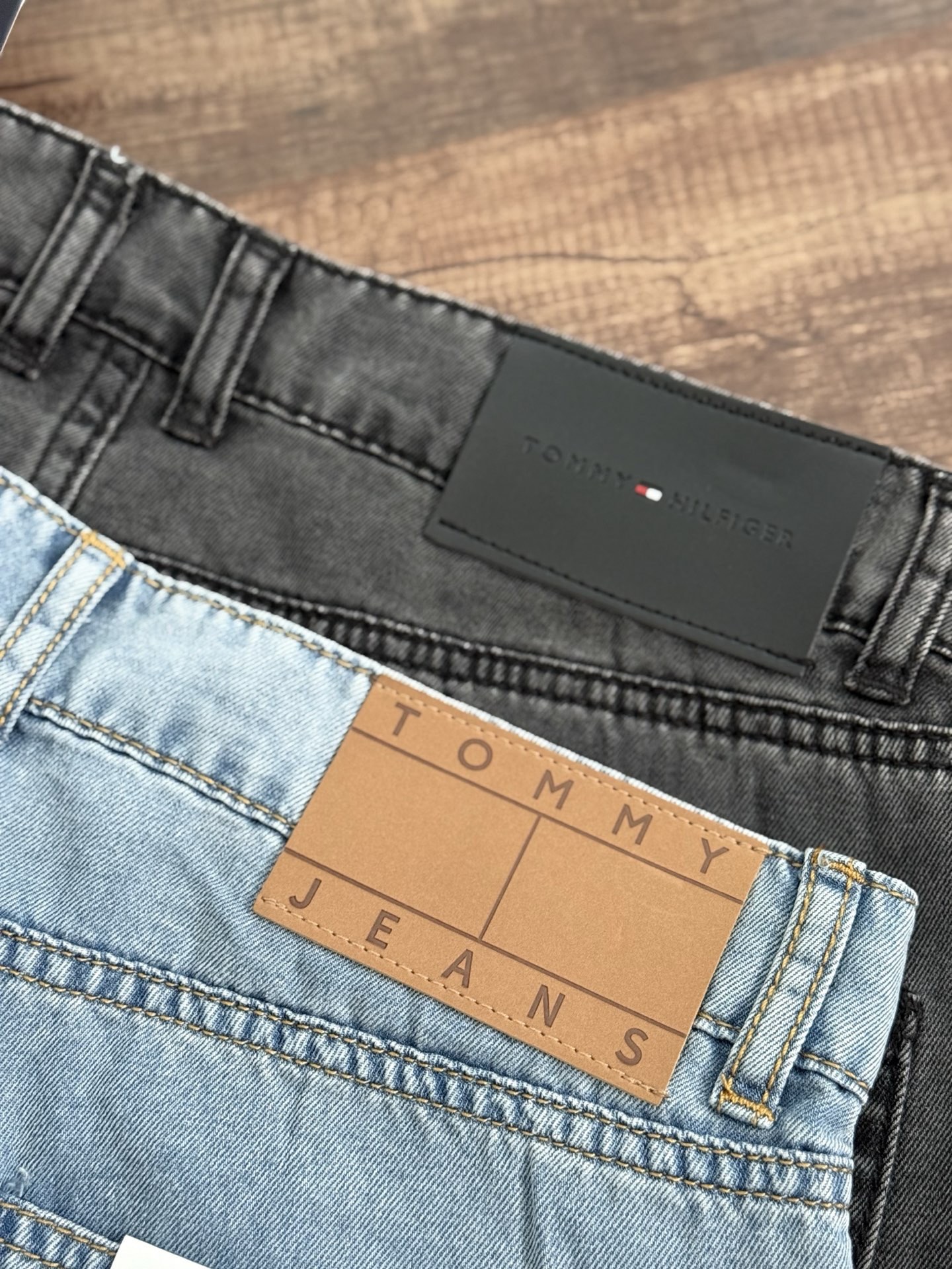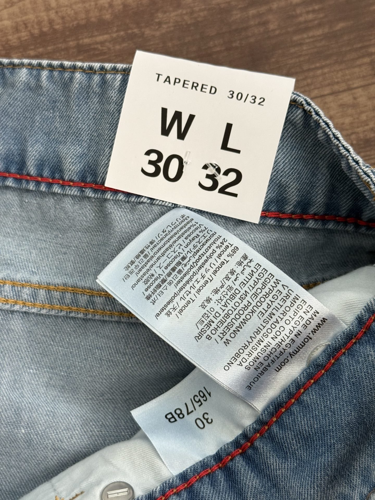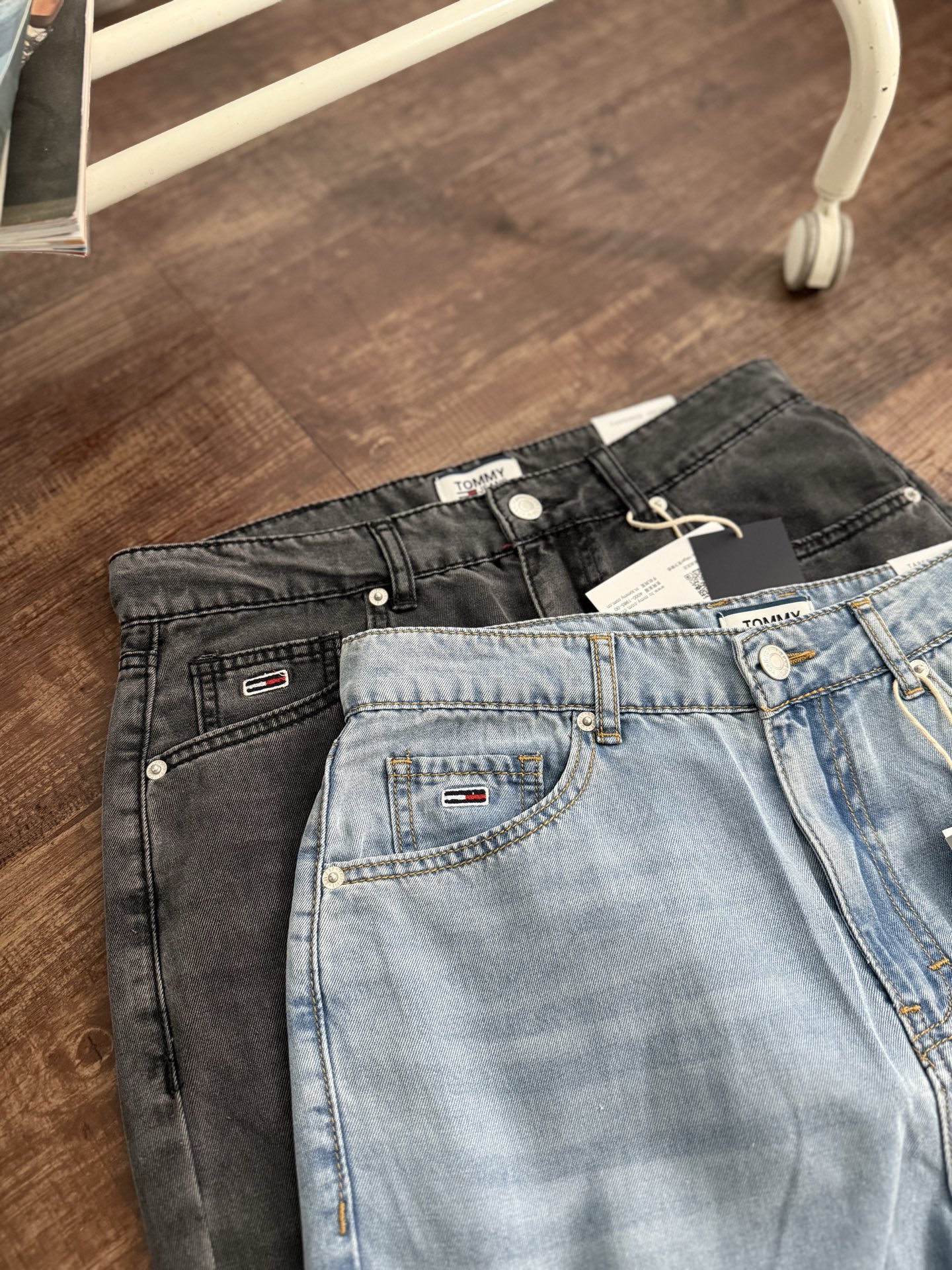 Tommy25新款男装休闲复古磨白浅蓝色水洗宽松锥形薄款牛仔裤20979